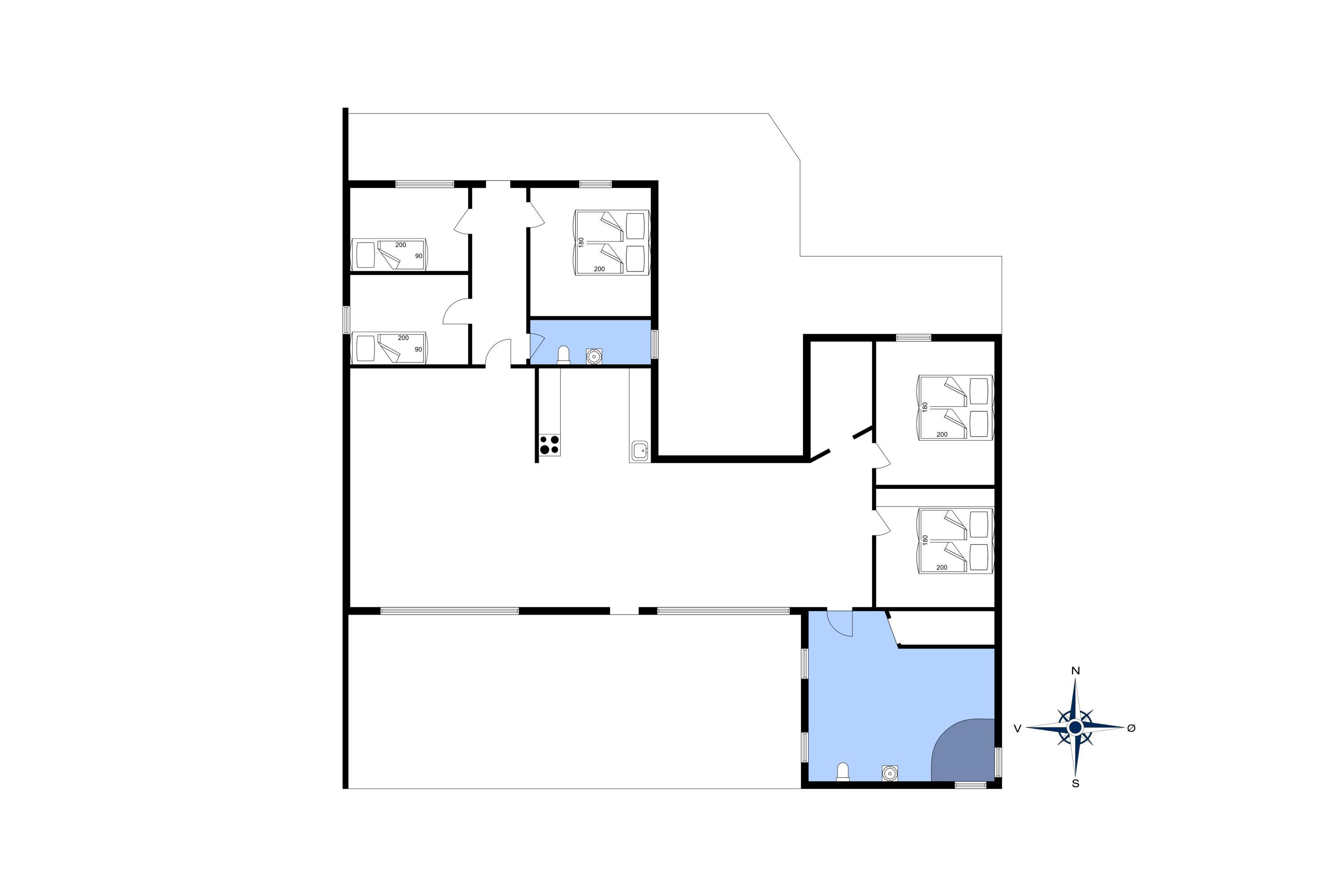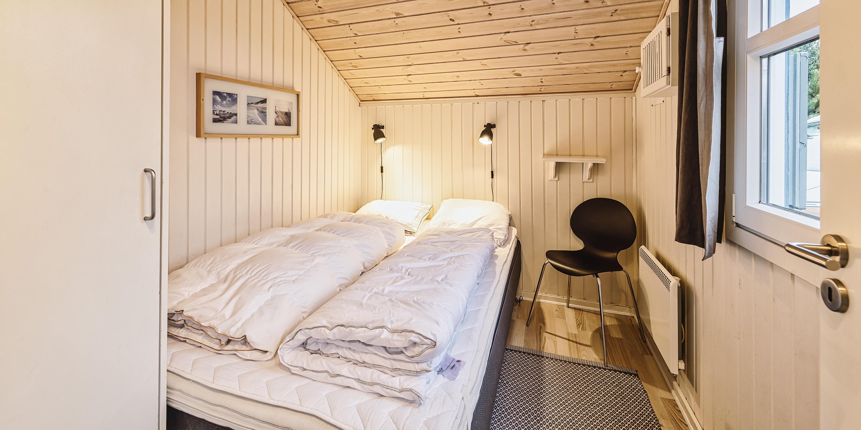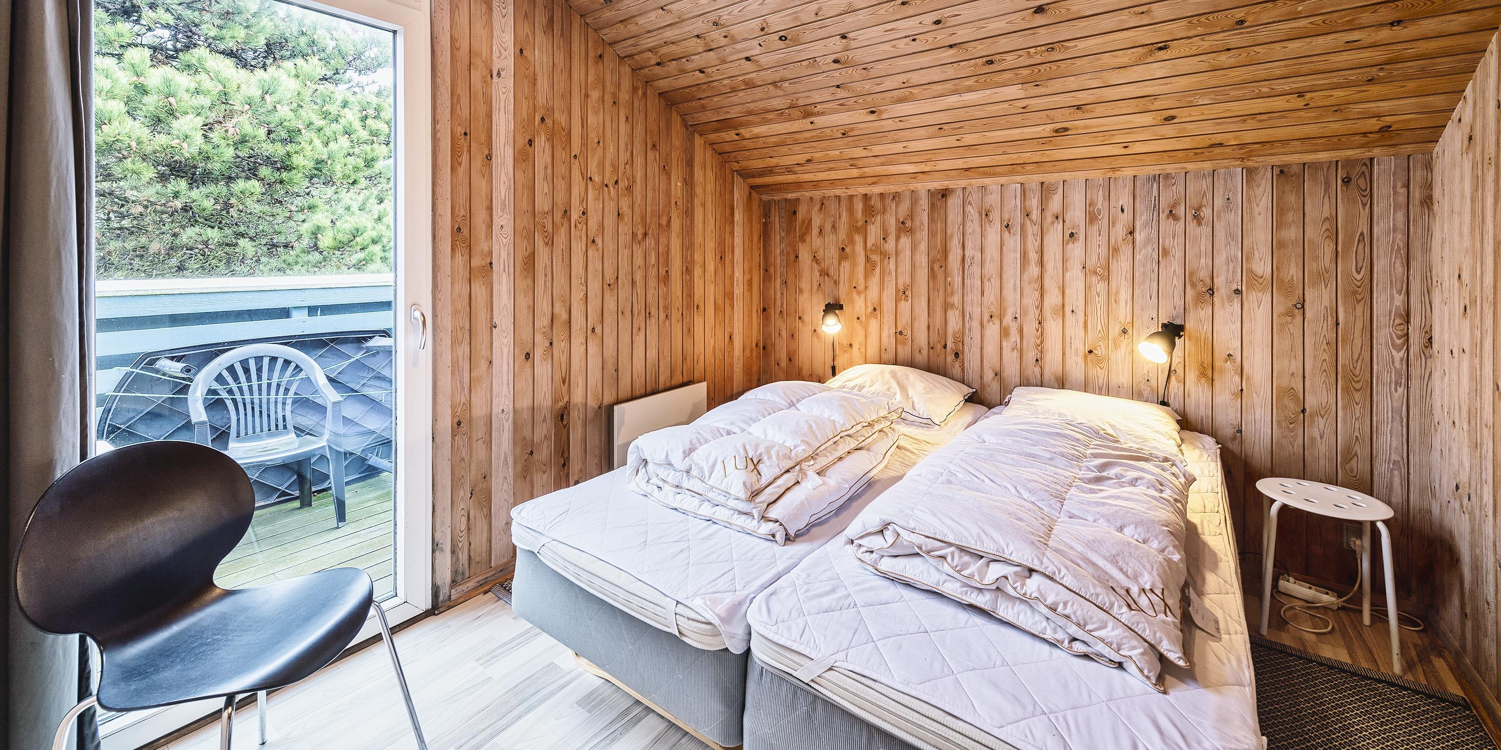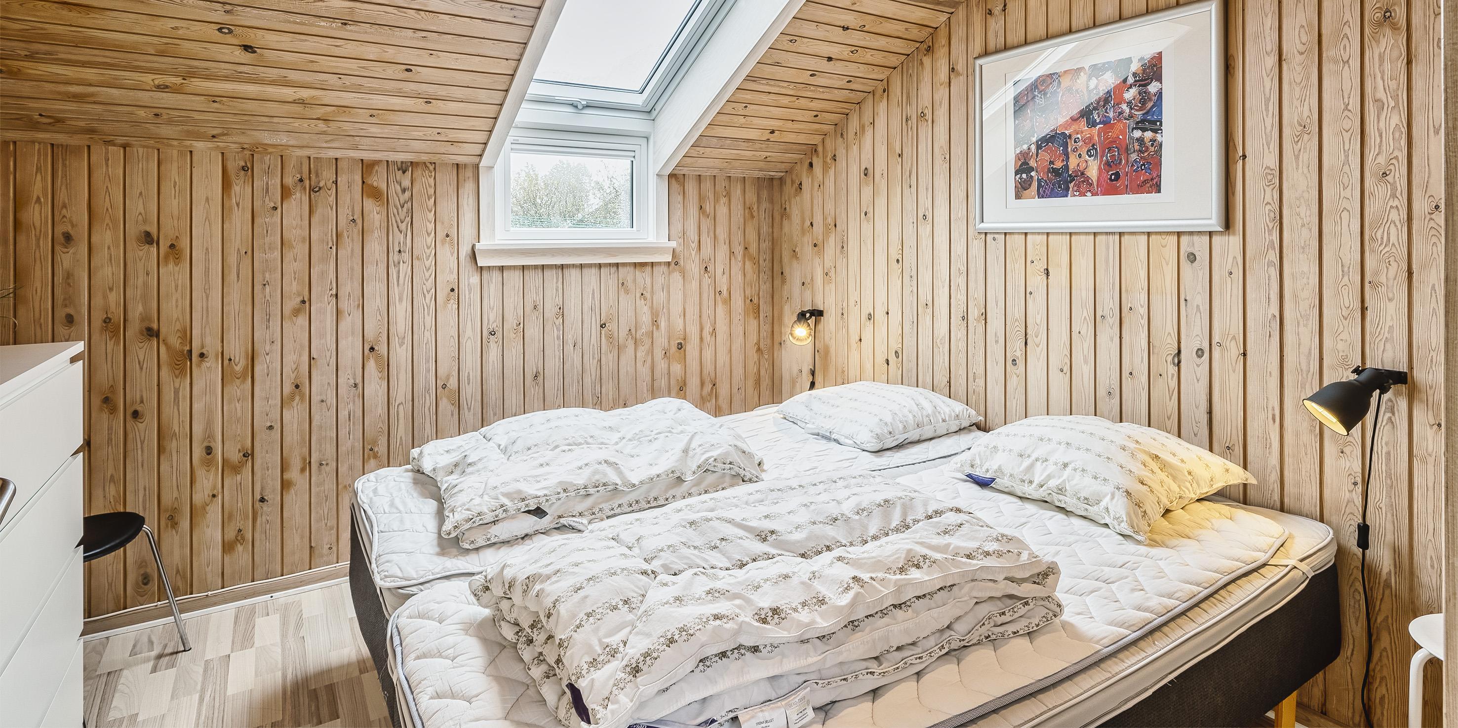5 soveværelser. 3 med dobbeltseng 180x200 cm. 1 med 2 enkeltsenge (á 90x200 cm). 1 med 1 enkeltseng.