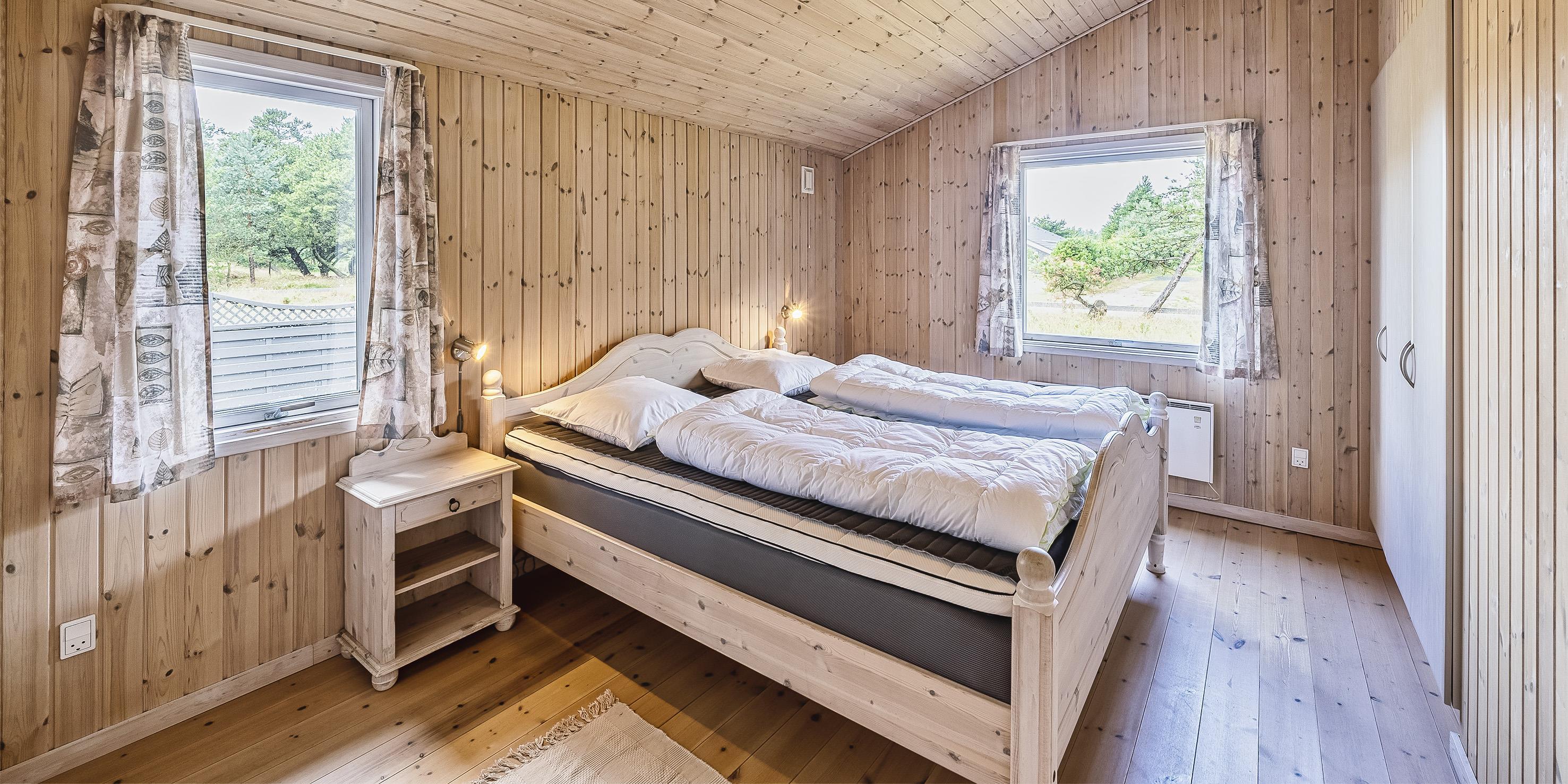 3 soveværelser. 2 med dobbeltseng 180x200 cm. 1 med 2 enkeltsenge (á 90x200 cm)