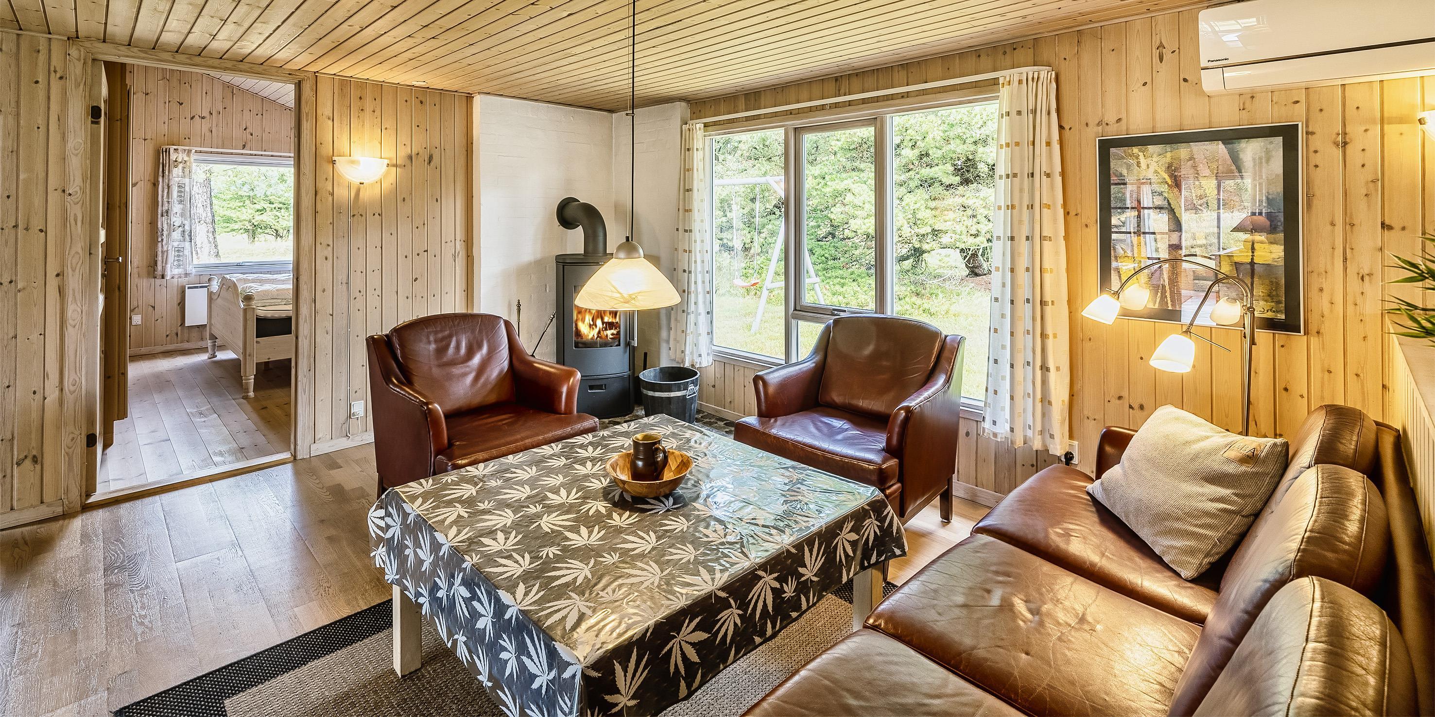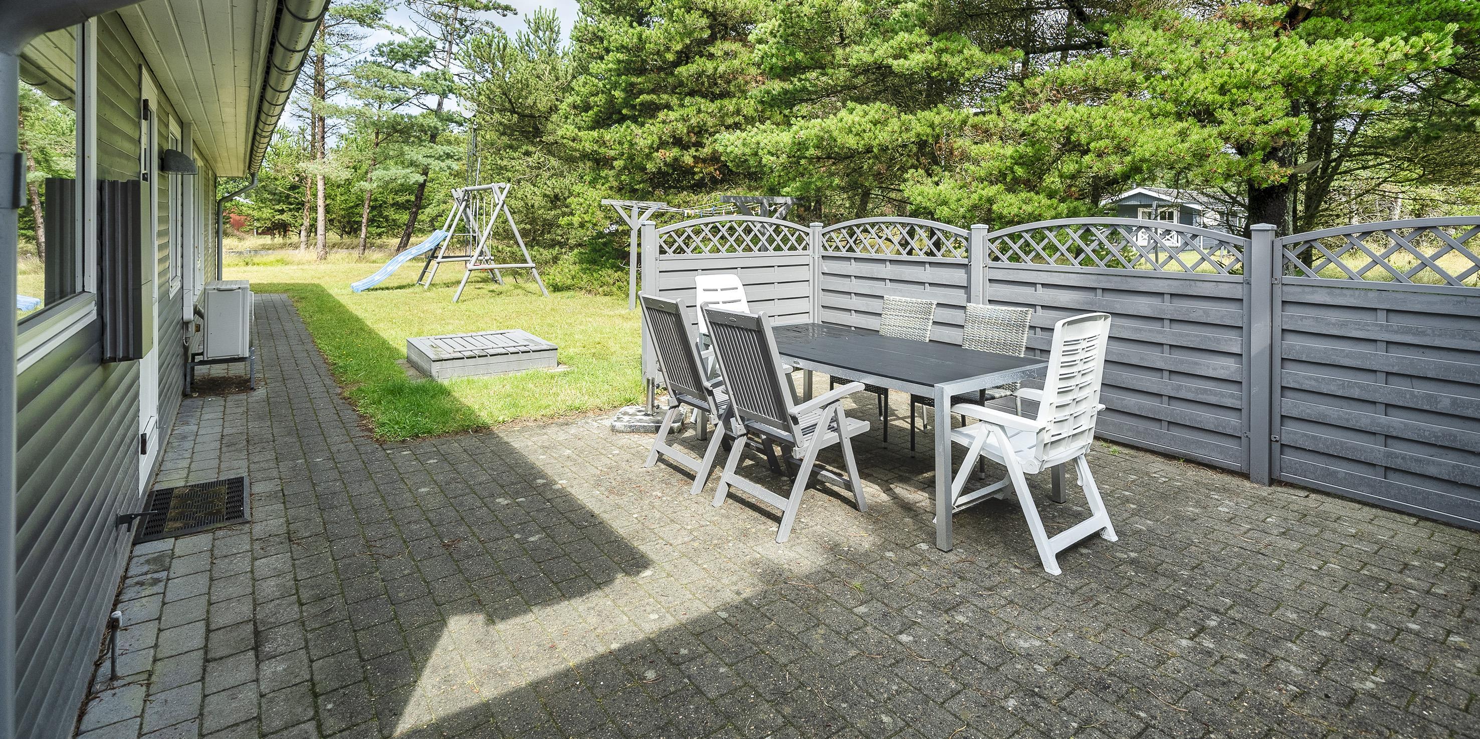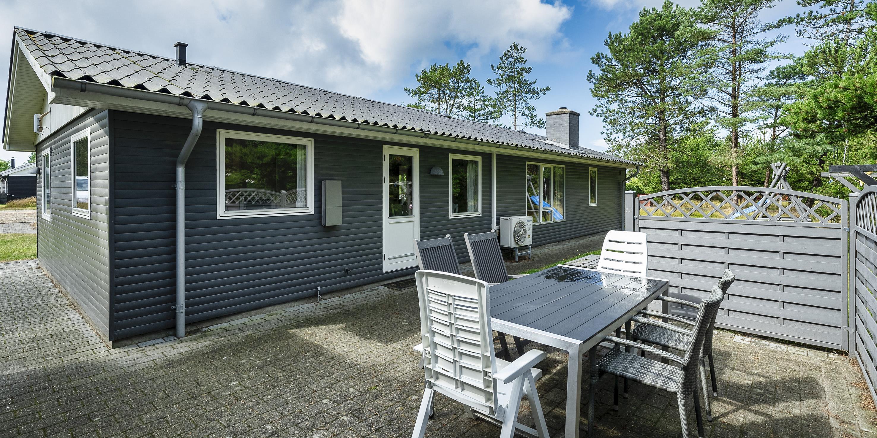 Smagfuldt sommerhus til 6 personer, ca. 2.000 meter fra stranden. Stor stue med fjernsyn, parabol og brændeovn (ingen danske programmer). Køkken med opvaskemaskine og mikroovn. Havestue. Badeværelse med bruser/wc, sauna, vaskemaskine og tørretumbler. 3 soveværelser: DS + DS + 2S. Der er kommet nye senge i 2020. Varmepumpe. Gynge og sandkasse. Delvis overdækket terrasse. Husdyr er ikke tilladt - dog med undtagelse af én lille hund. Venligst bemærk: hunden må ikke være i møblerne eller sengene. Rygning er ikke tilladt. Trådløs internetadgang. Adgang til Oksbøl badeland i 2026. Byggeår 1967, renoveret 2002. Ekstra udgift for vandforbrug.