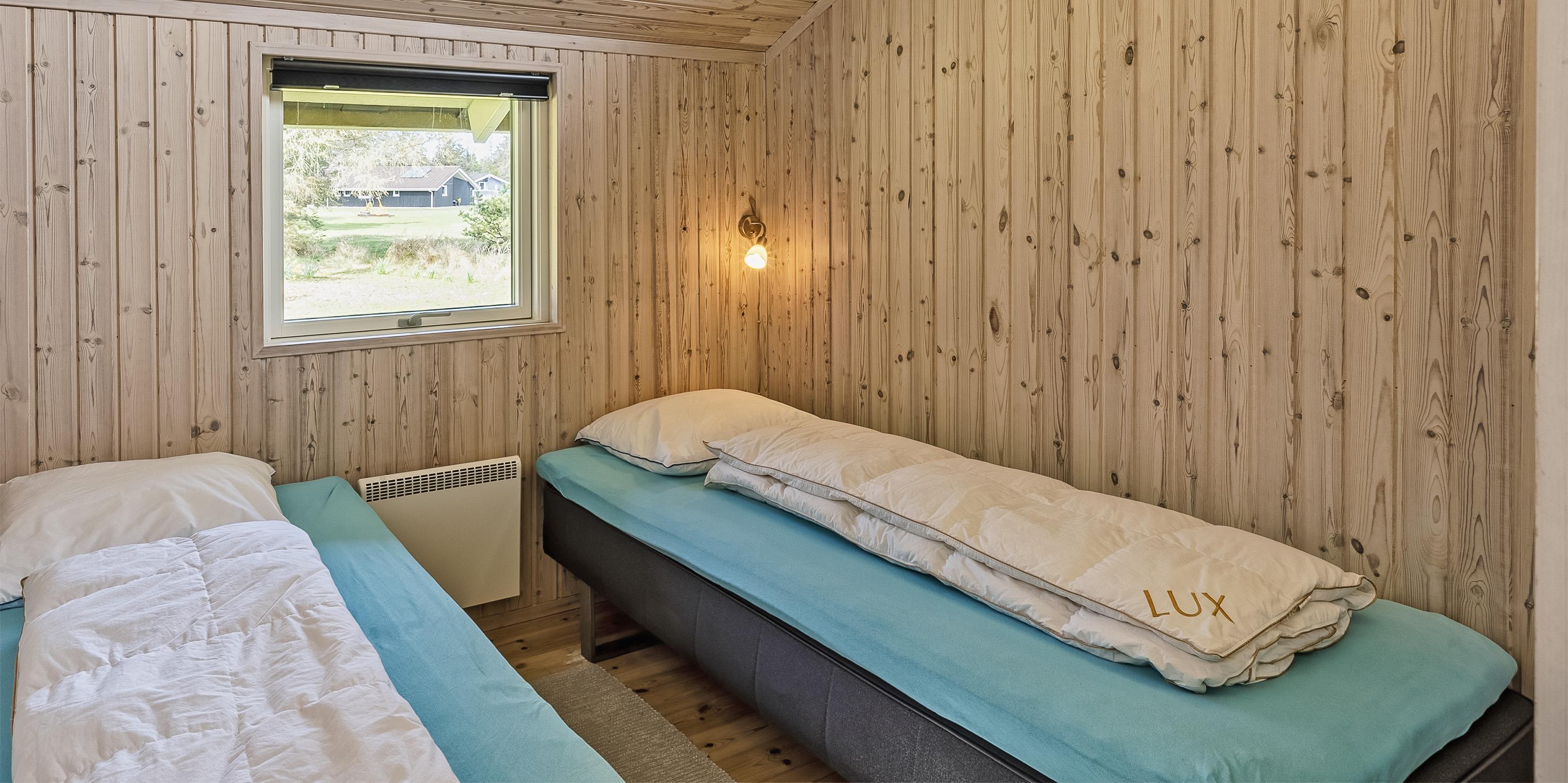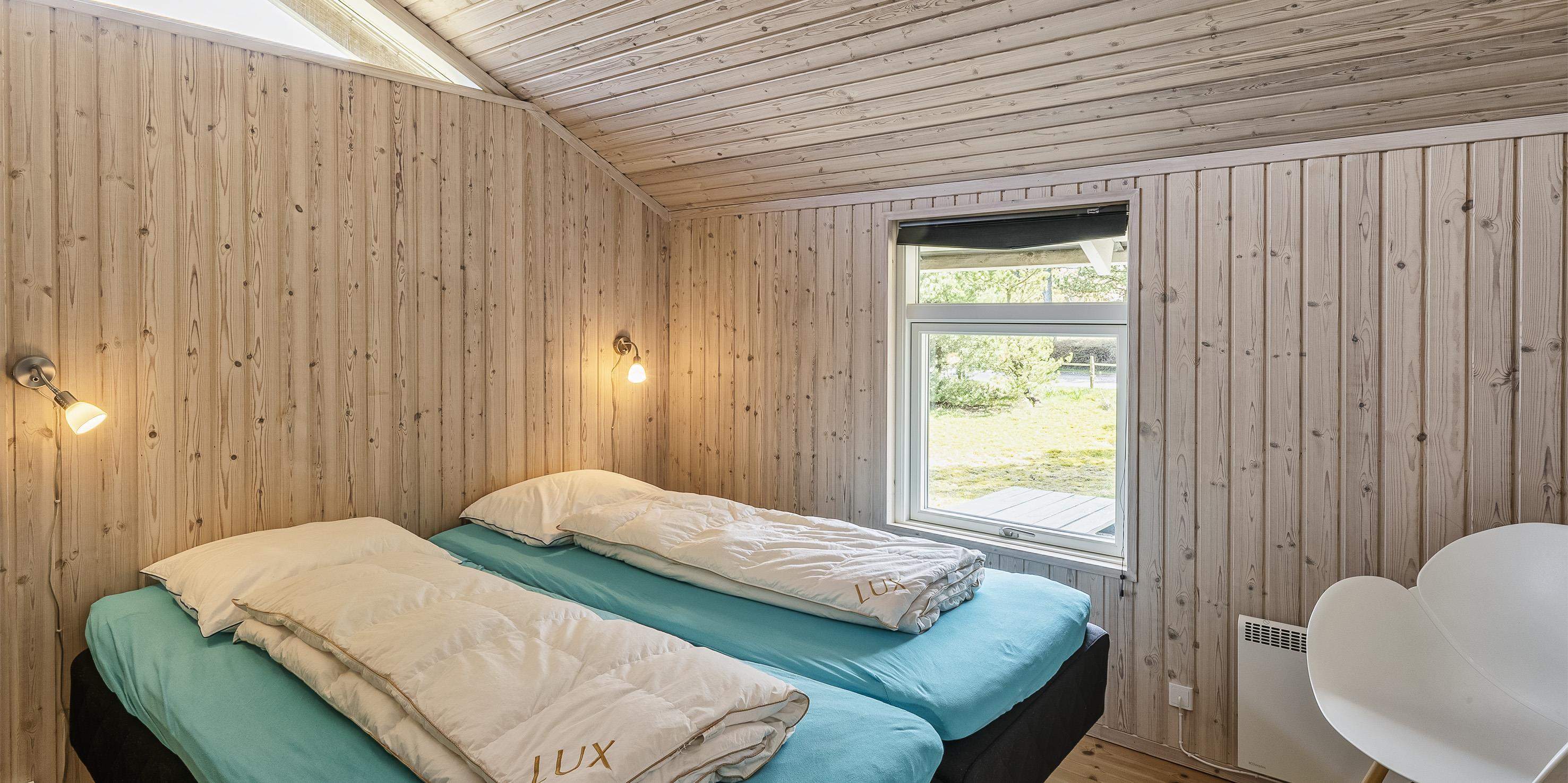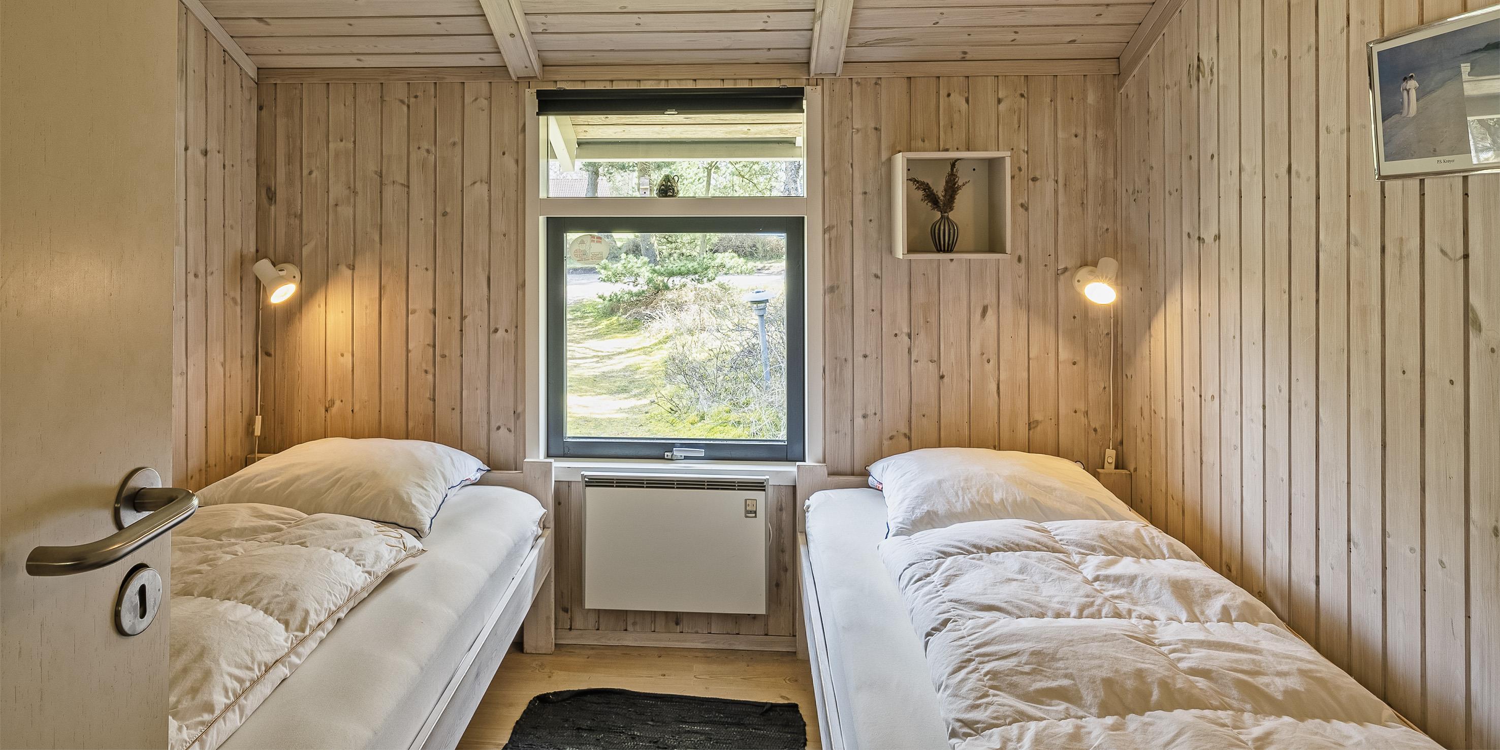 4 soveværelser. 2 med dobbeltseng 180x200 cm. 2 med 1 enkeltsenge (á 90x200 cm)