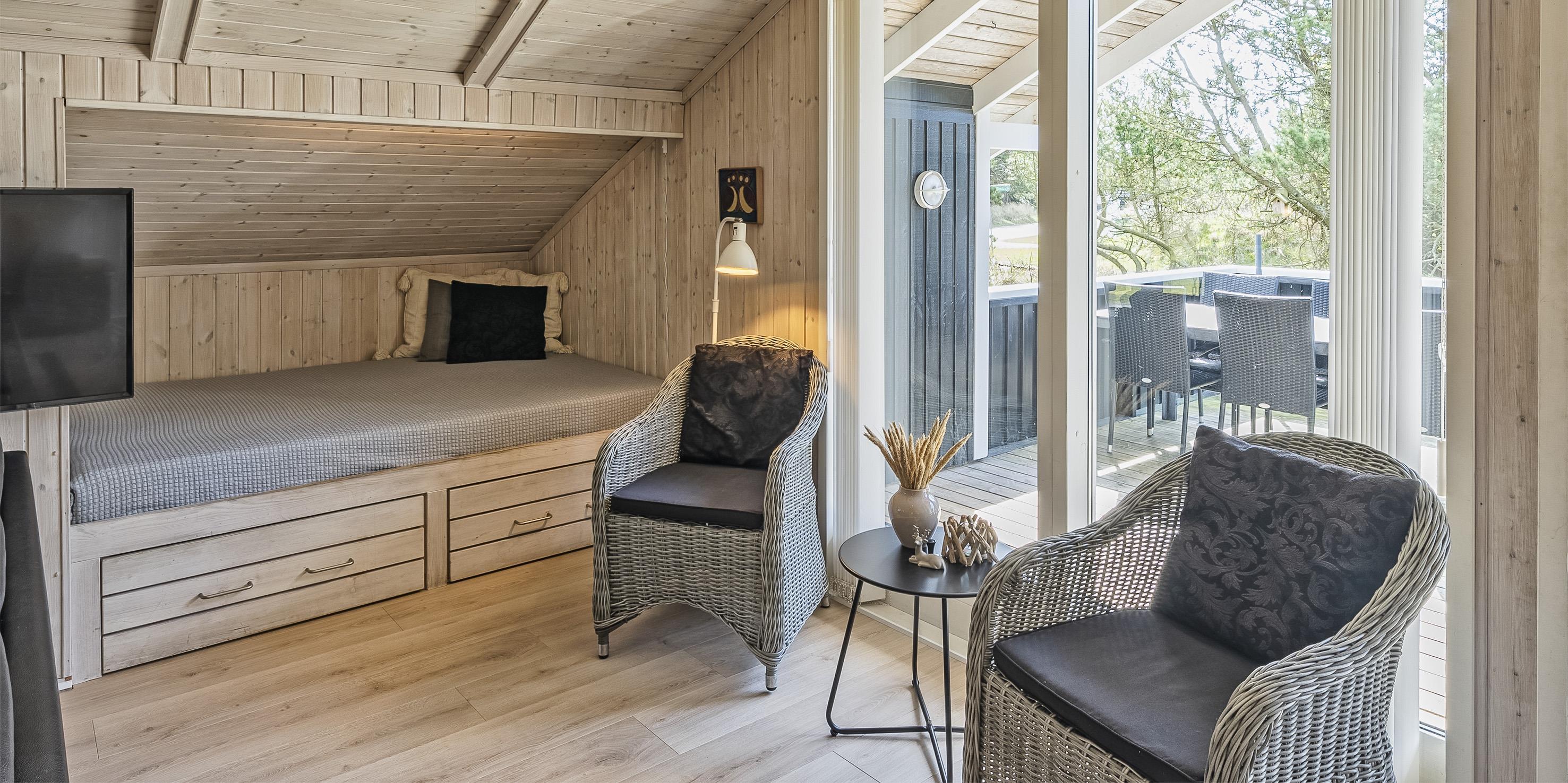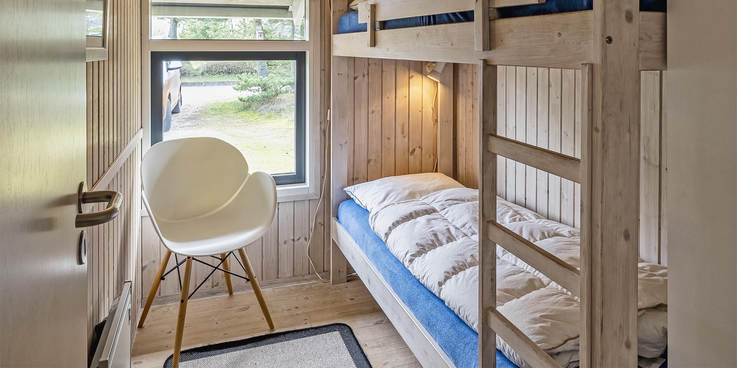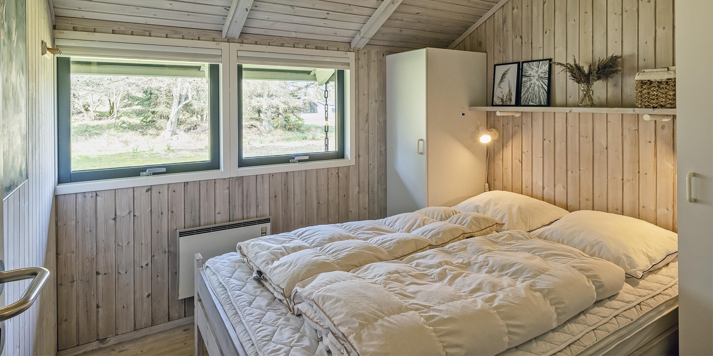 4 soveværelser. 2 med dobbeltseng 180x200 cm. 2 med 1 enkeltsenge (á 90x200 cm)