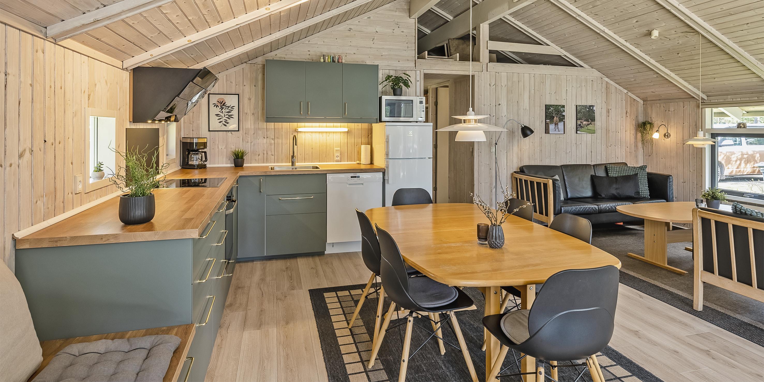 Smagfuldt sommerhus til 6 personer, beliggende på stor naturgrund, ca. 1.500 meter fra stranden. Stue med alkove, brændeovn, fjernsyn og parabol (ingen danske programmer), Yuosee APP, Smart TV, Stofa TV, samt ny åbent køkken med opvaskemaskine køl- og fryseskab. Badeværelse med bruser/wc og vaskemaskine, 1 af badeværelser har gulvarme, 4 soveværesler: DS + DS + S + S. 2 soveværelser med hver 1 dobbeltseng og 2 soveværelser med hver 2 enkeltsenge. Gæstetoilet med bruser. Alkove i stue, Varmepumpe, lukket Træterrasse. Grill, Husdyr er ikke tilladt - dog med undtagelse af én lille hund! Bemærk venligst: Katte er ikke tilladt. Trådløs internetadgang. Rygning er ikke tilladt. Byggeår 1995, renoveret 2012/2023.
