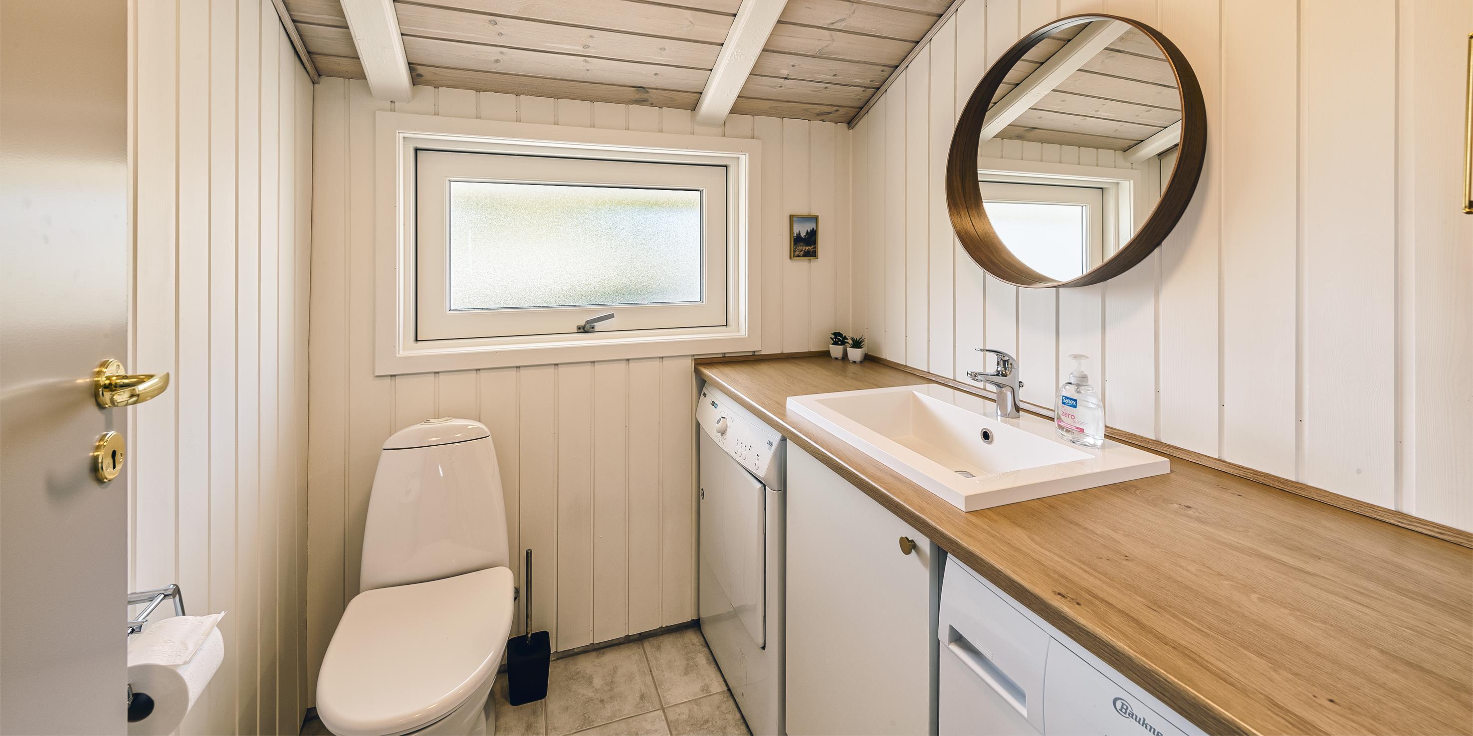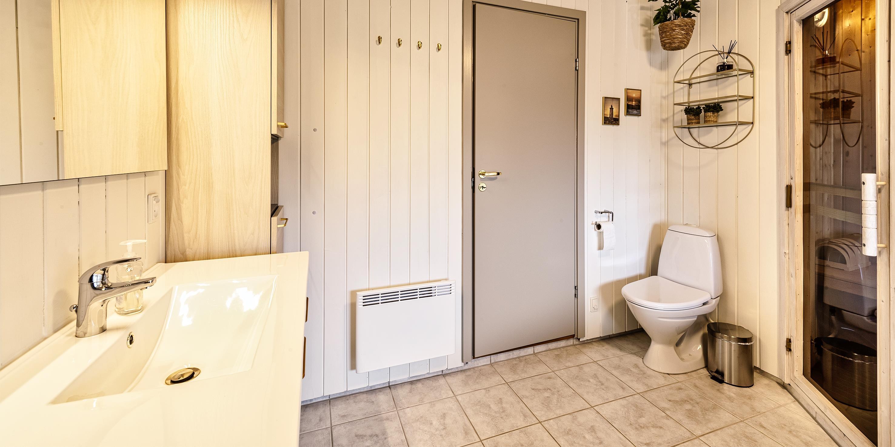 Bad med toilet, bruser og vask