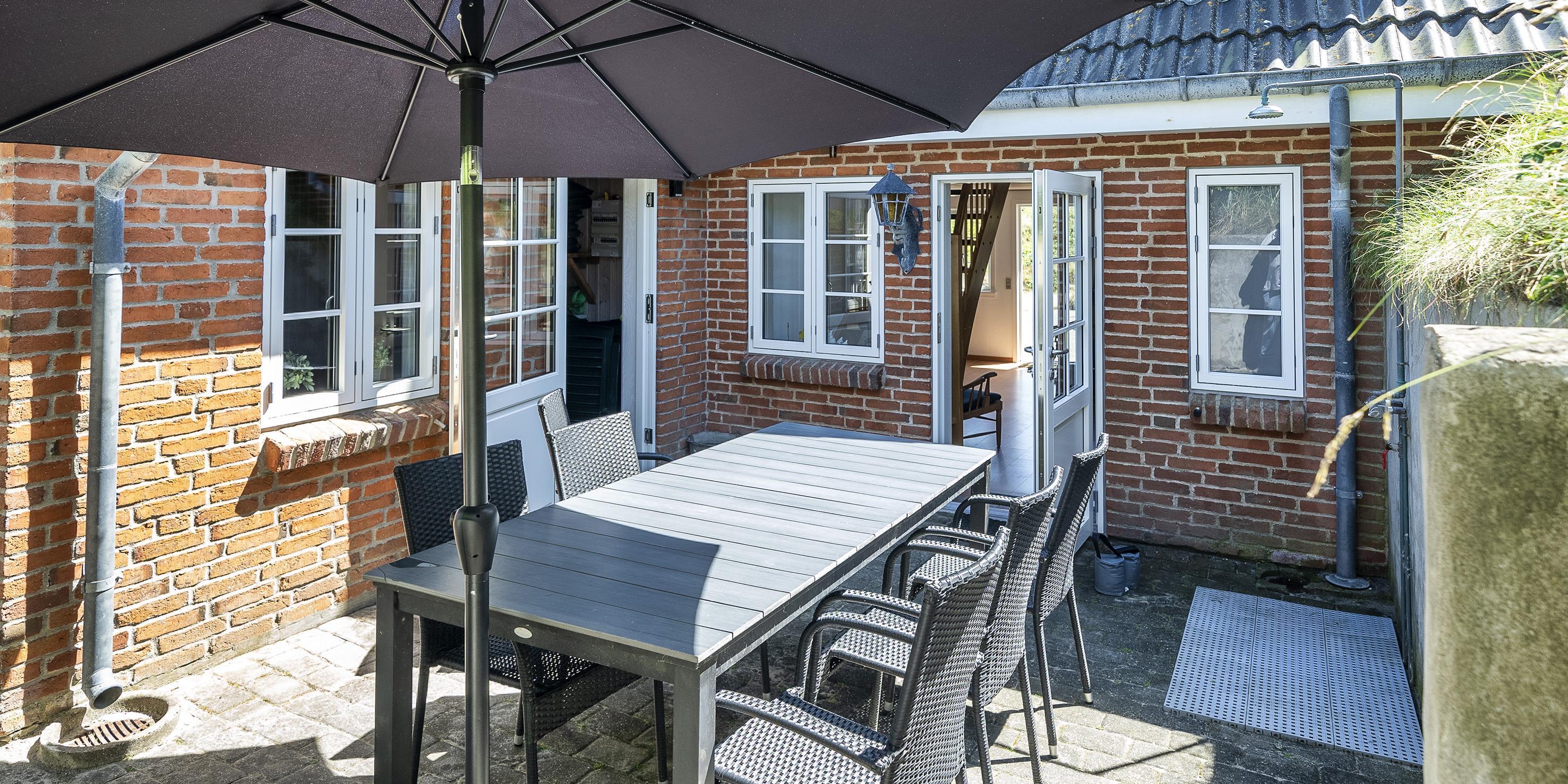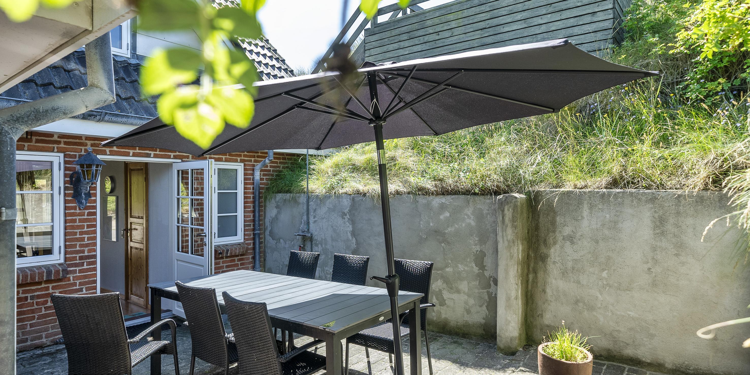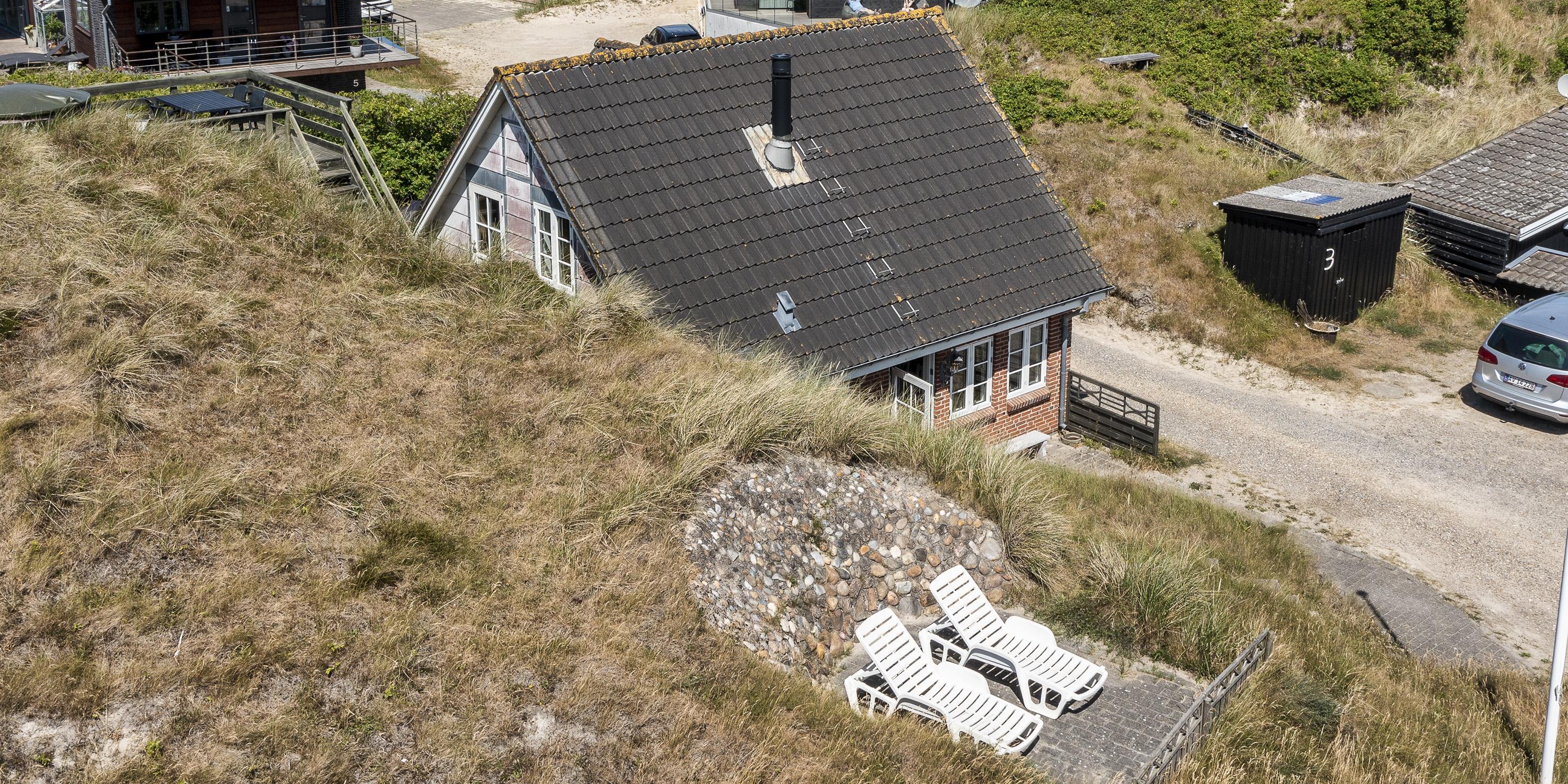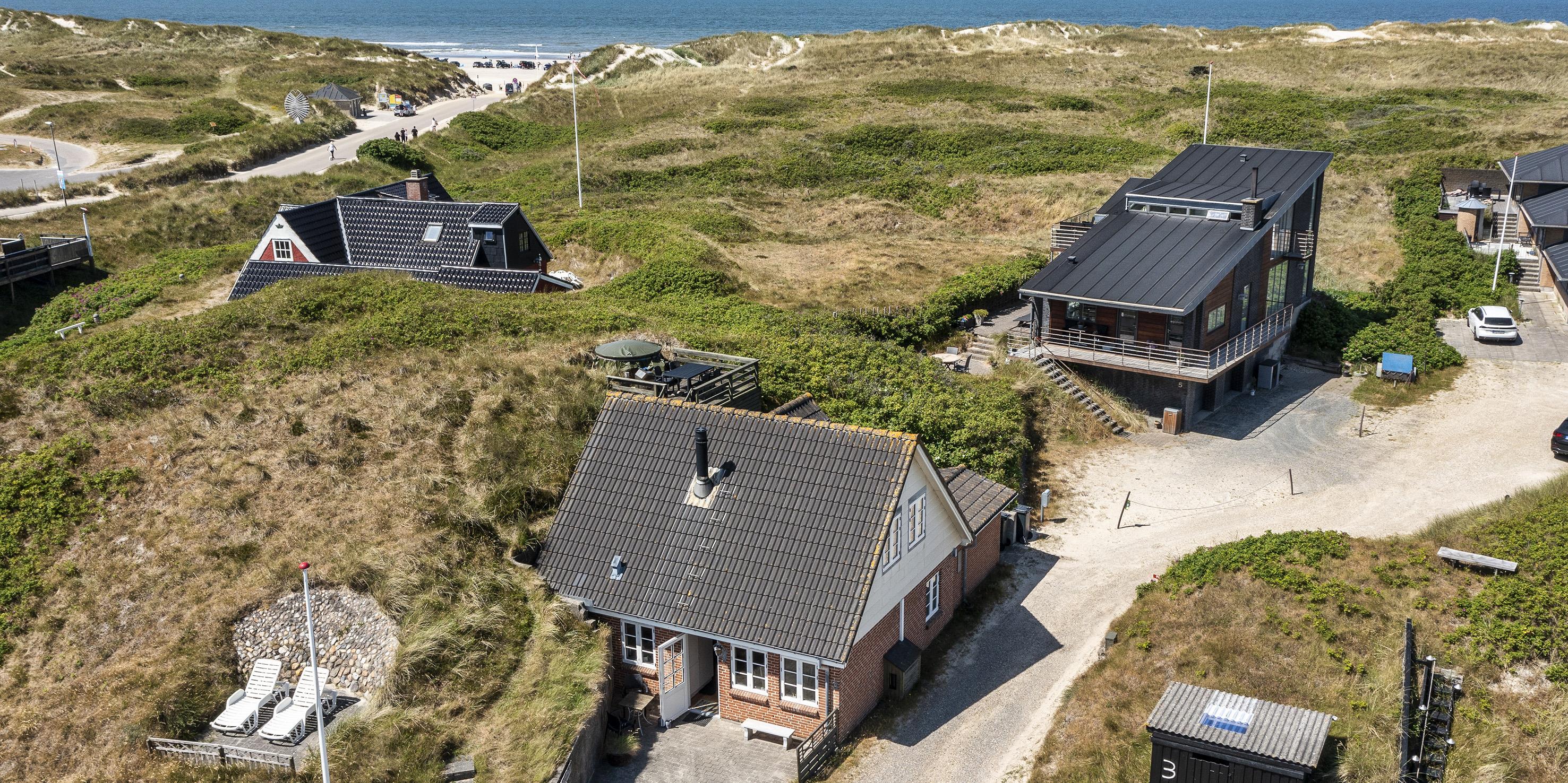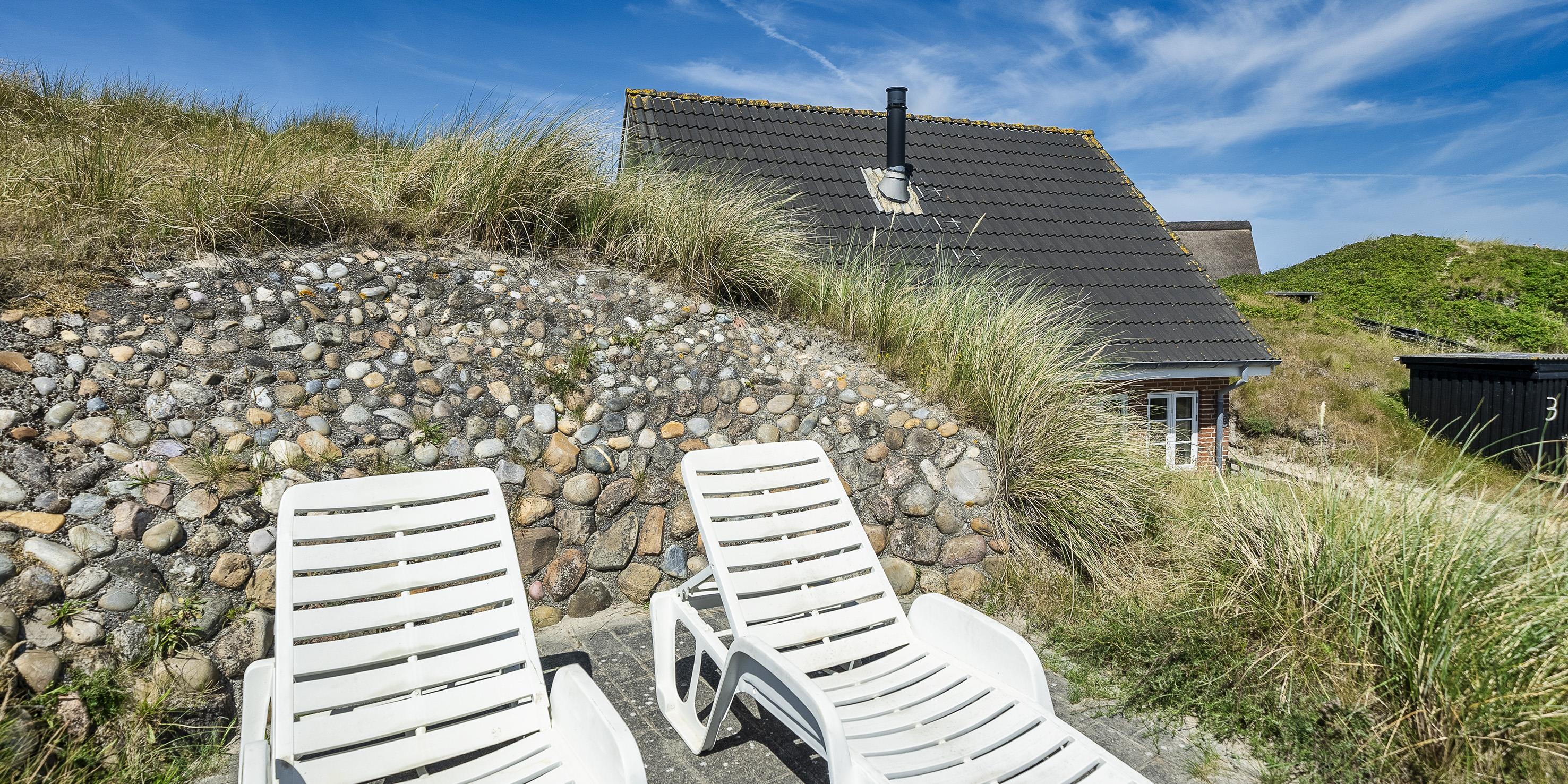De udvendige faciliteter byder på en dejlig lukket gårdhave med udebruser samt 2 terrasser i klitterne. Fra den ene terrasse er der havudsigt udover nedkørslen til stranden.