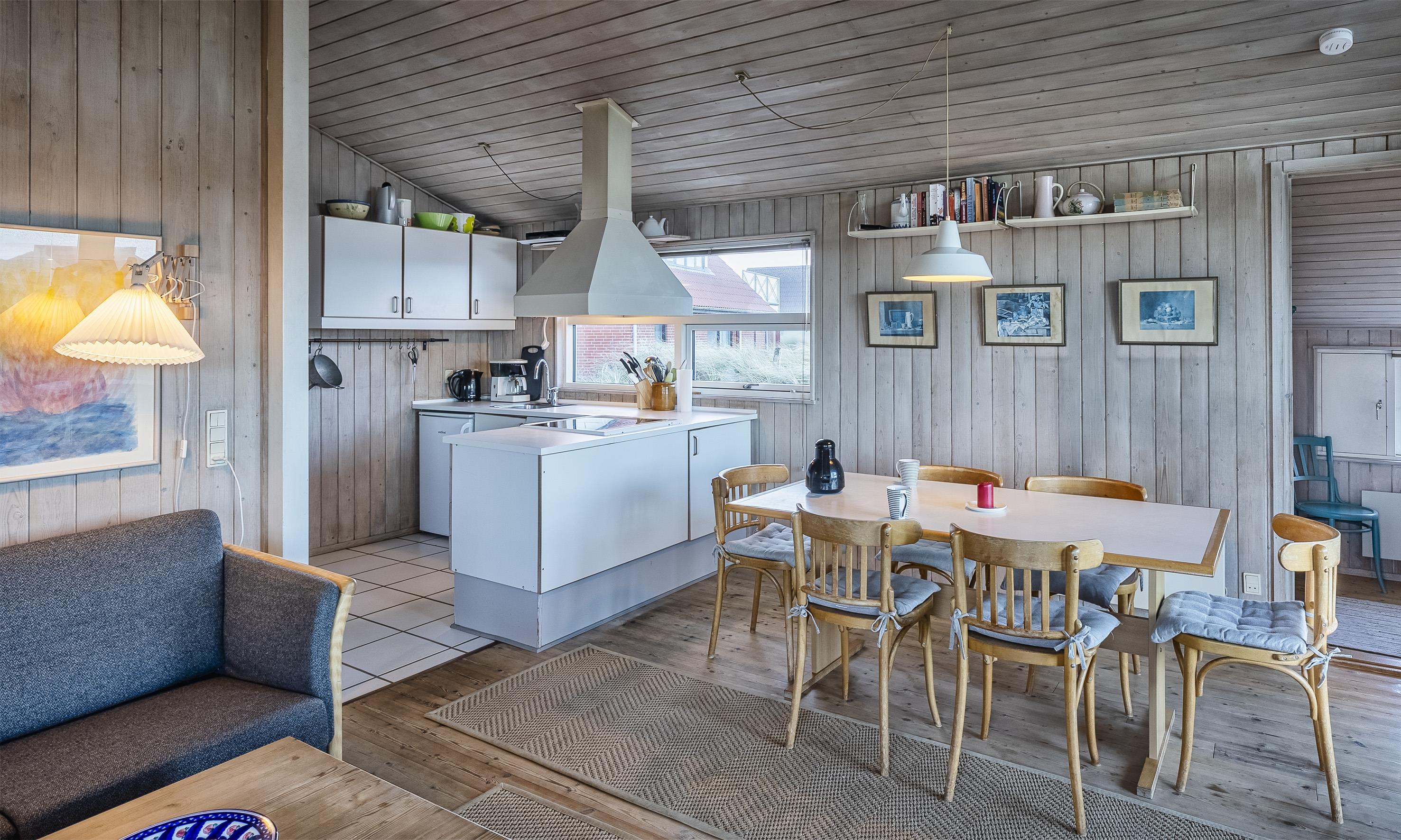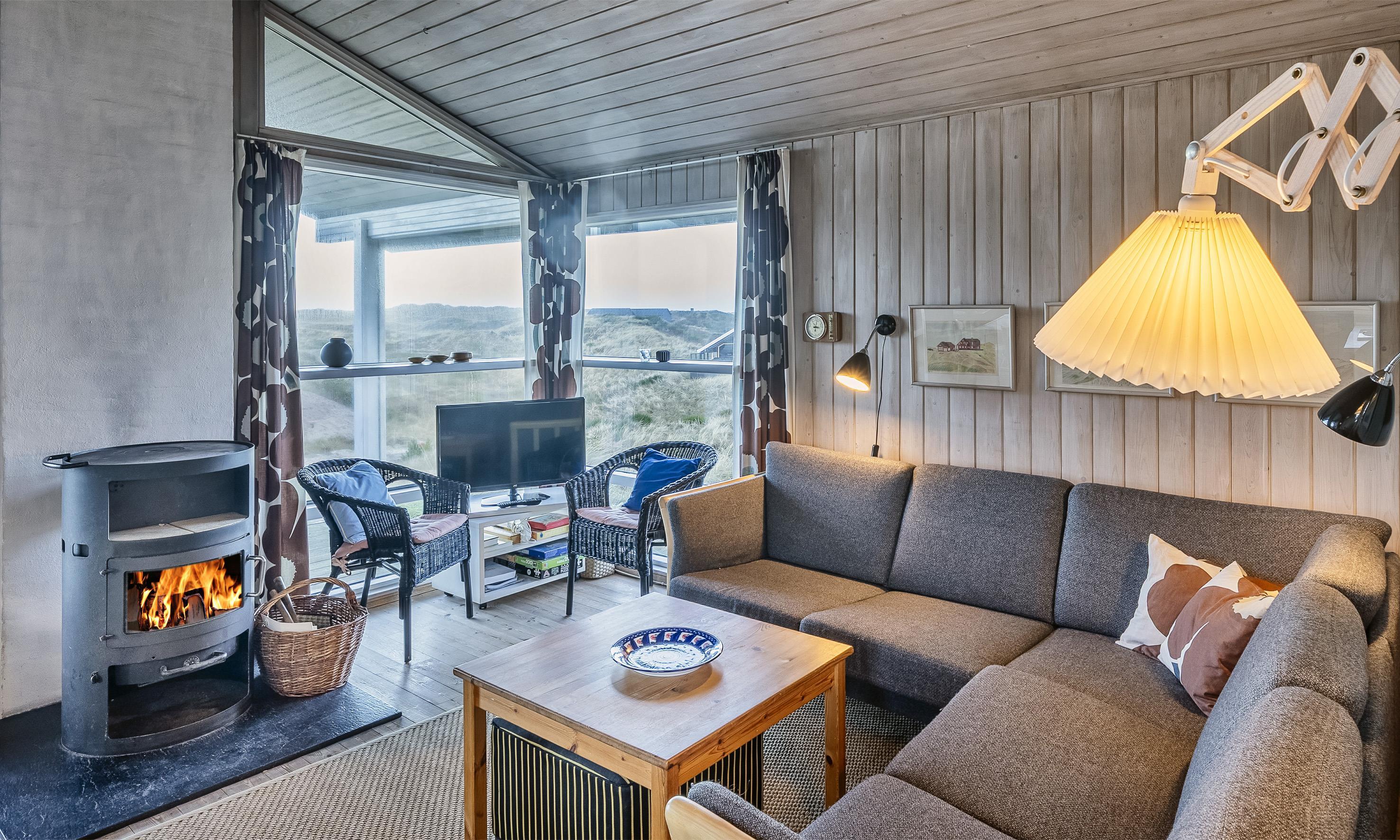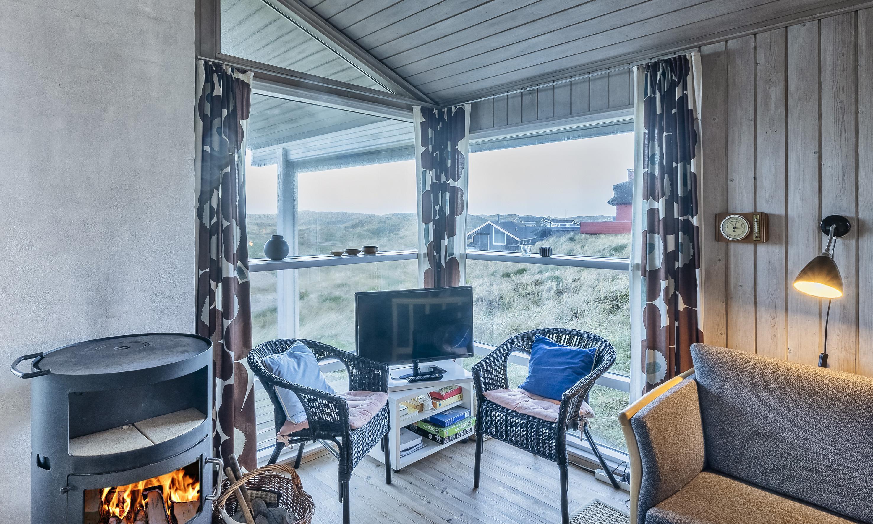 Hyggeligt sommerhus til 6 personer, beliggende med udsigt til de naturskønne klitter, ca. 200 meter fra stranden. Køkken med opvaskemaskine. Stue med brændeovn og fjernsyn (Stofa sommerhuspakke). Badeværelse med bruser/wc, sauna og vaskemaskine. 3 soveværelser: DS + DS +2S. 2 soveværelser med hver 1 dobbeltseng samt 1 soveværelse med 1 køjeseng. Terrasse. Trådløs internetadgang. Katte er ikke tilladt. Rygning er ikke tilladt. Byggeår 1992.