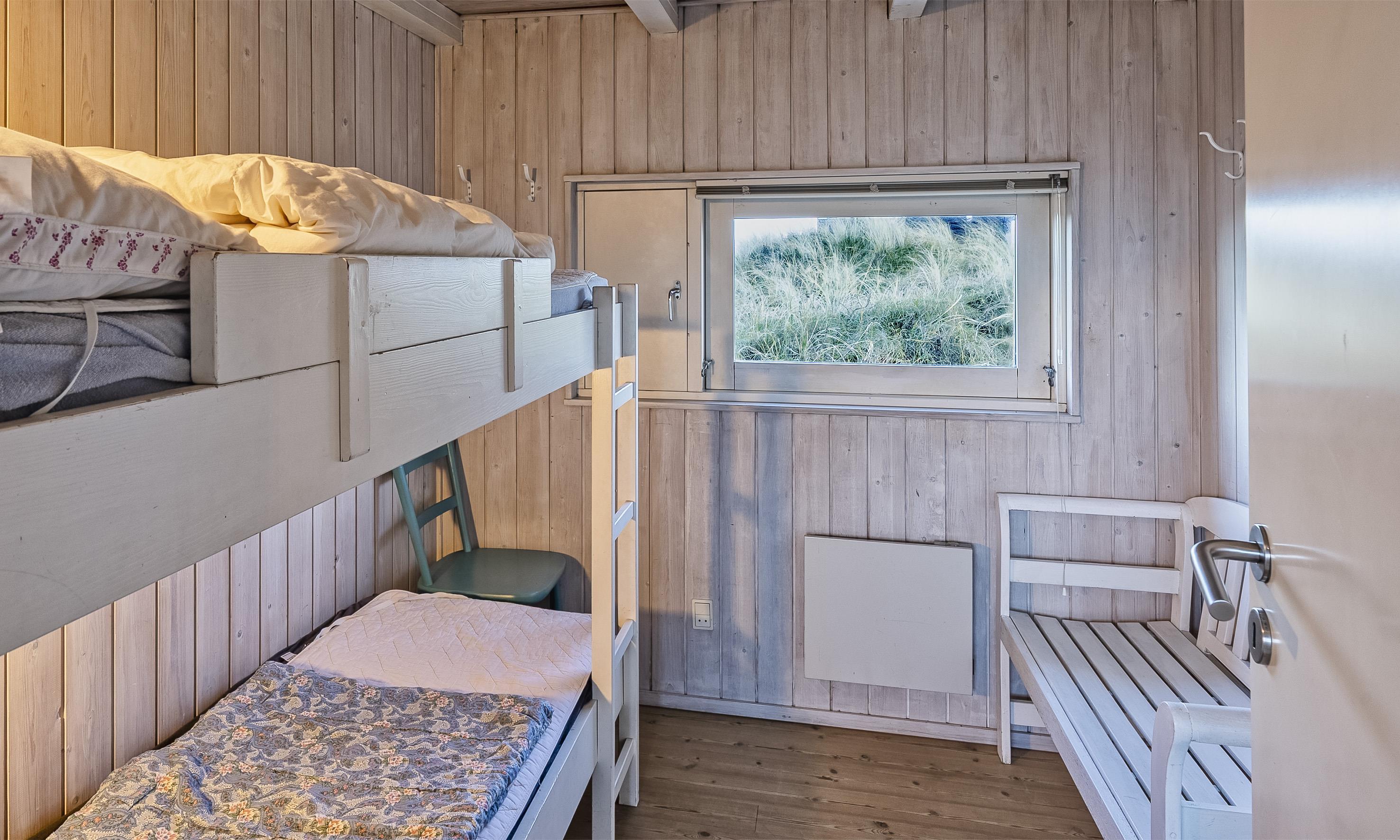 3 soveværelser. 2 med dobbeltseng 180x200 cm. 1 med køjeseng.