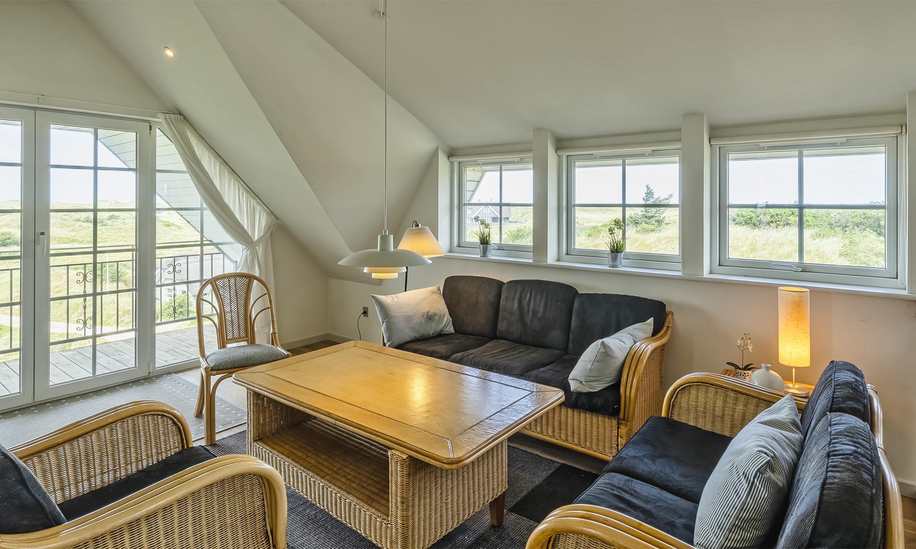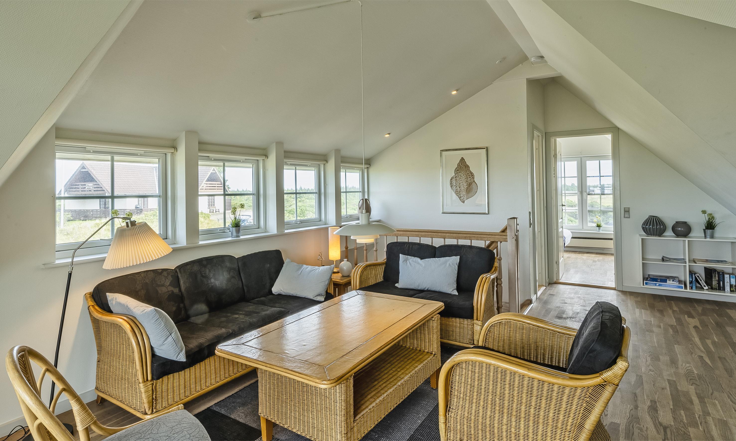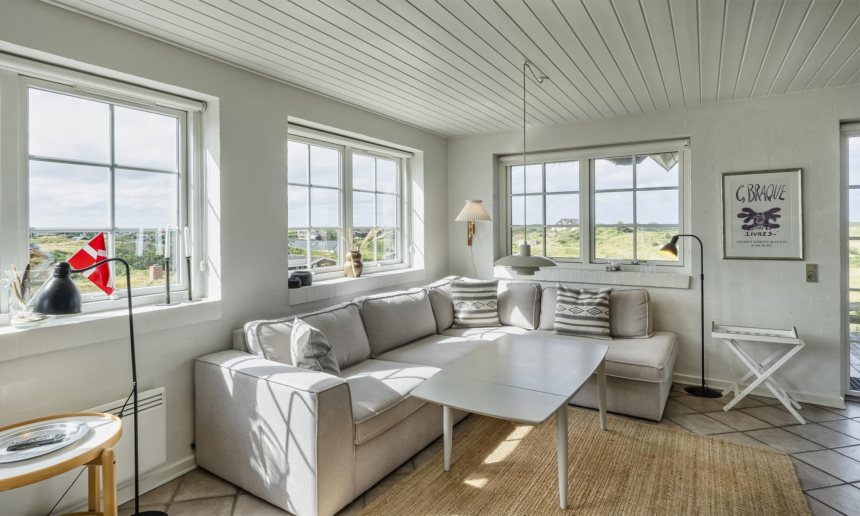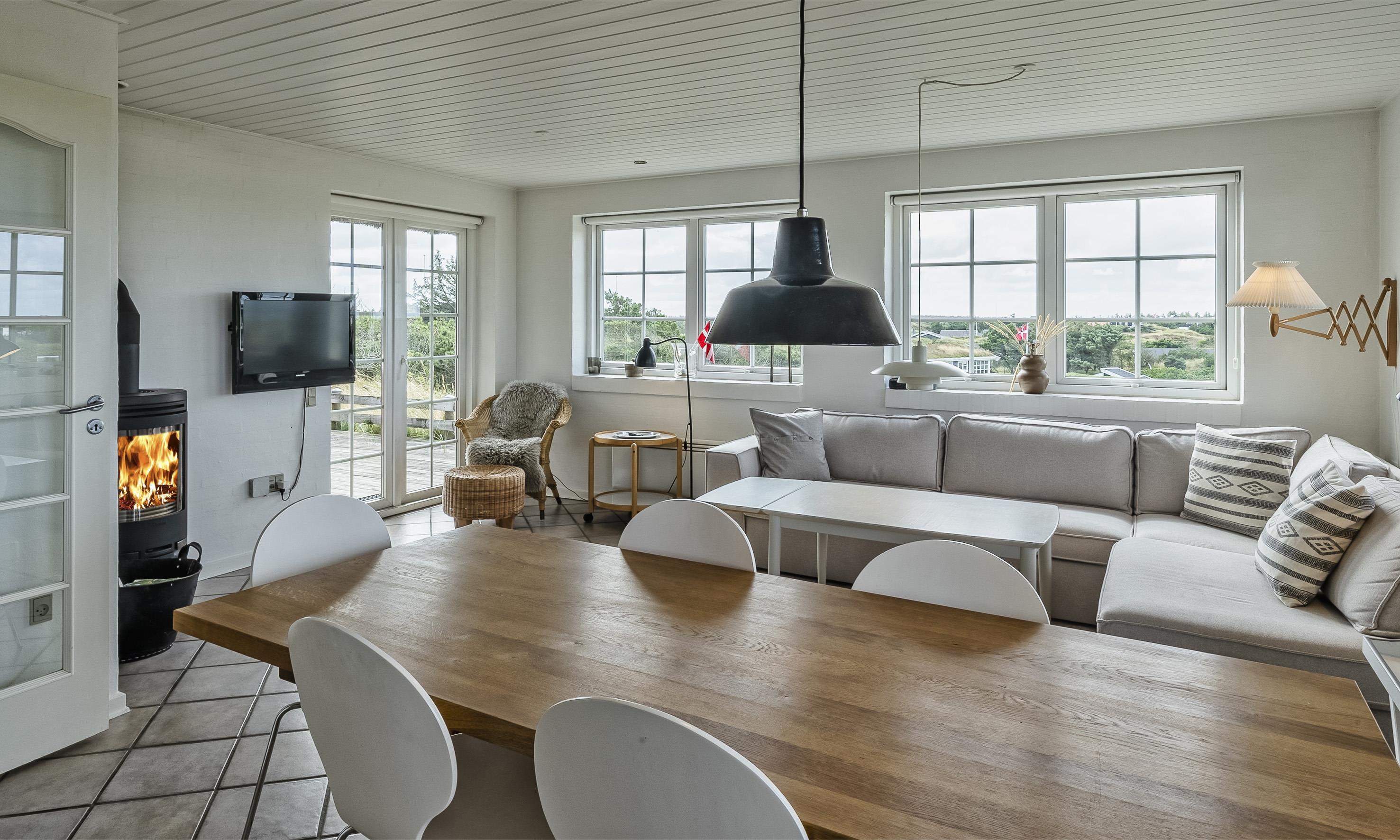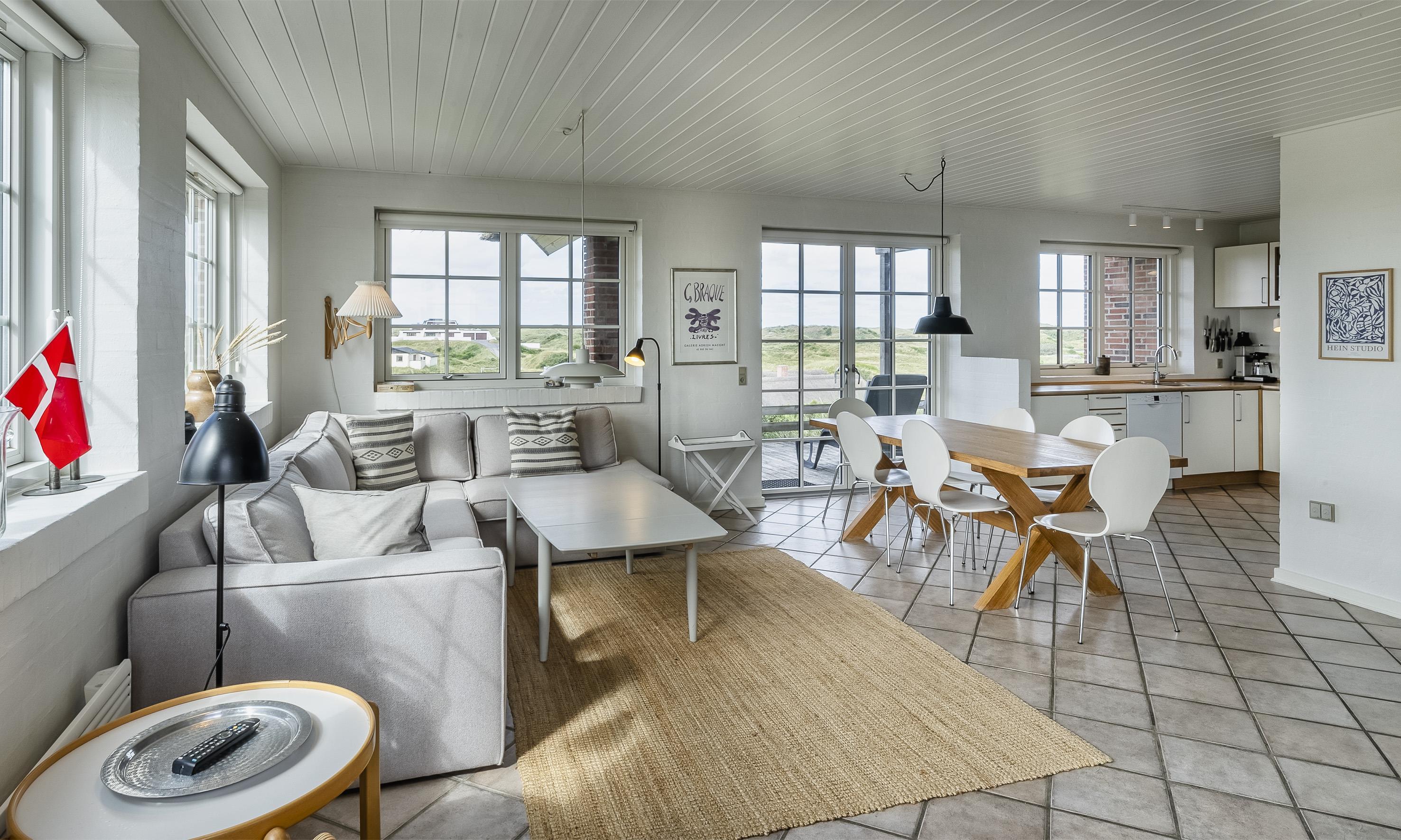 Særdeles flot stråtækt sommerhus til 6 personer, beliggende på en høj klit med havudsigt, ca. 200 meter fra stranden. I stueetagen: stue med brændeovn, fjernsyn og danske kanaler over Stofa (sommerhuspakken), samt åbent køkken med opvaskemaskine. Badeværelse med bruser/wc, spa og sauna. Entre med vaskemaskine og tørretumbler. 3 soveværelser: DS + DS + DS. Badeværelse med bruser/wc. Lille stue. Stor dejlig terrasse. Trådløs internet. Rygning er ikke tilladt. Byggeår 2000.