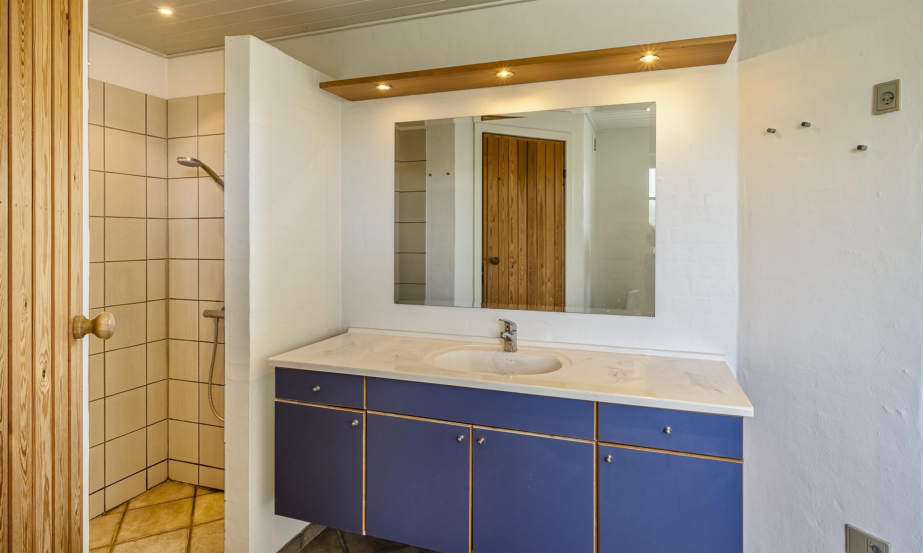 Bad med toilet, bruser og vask