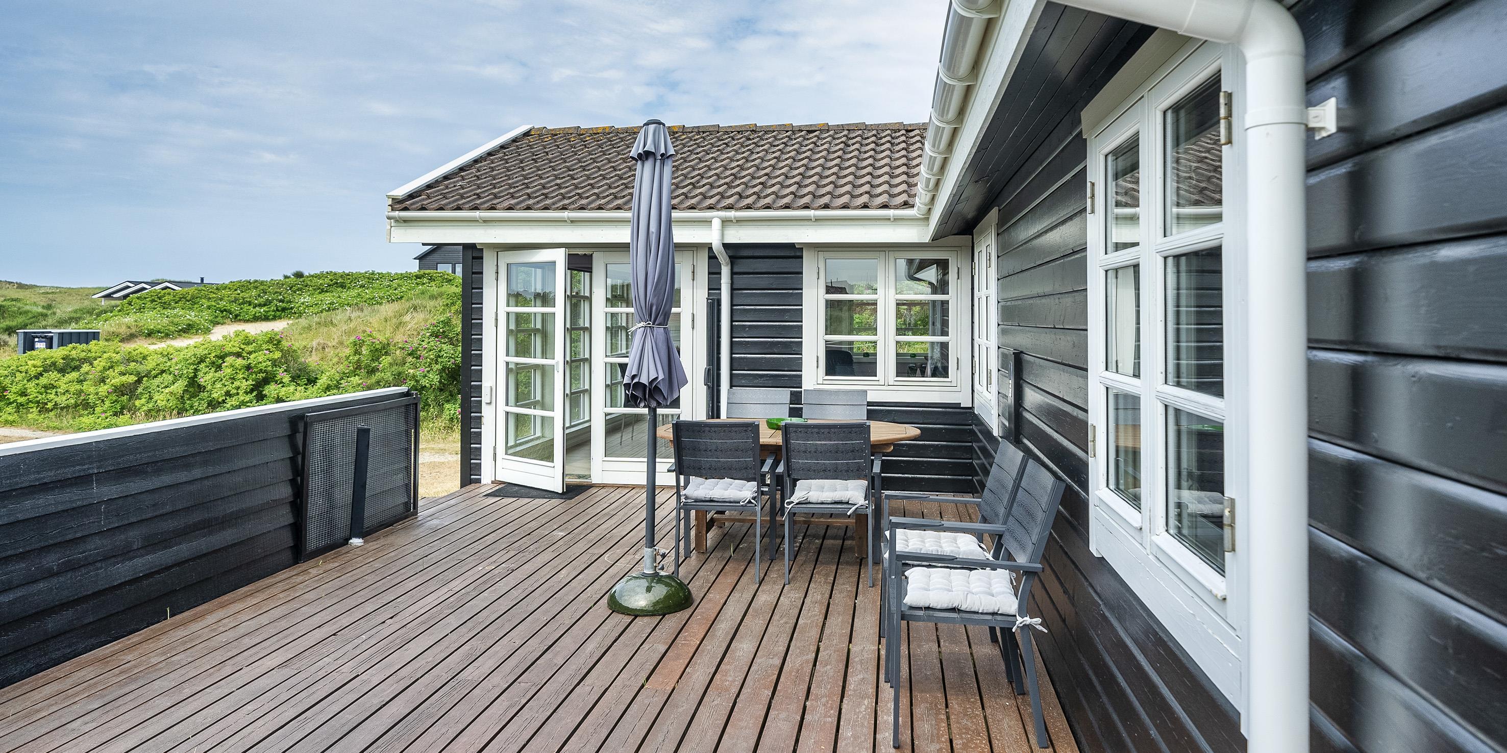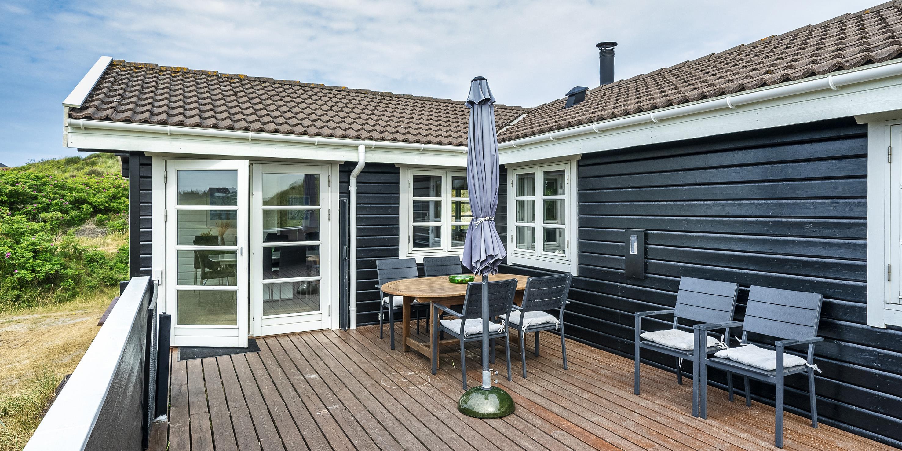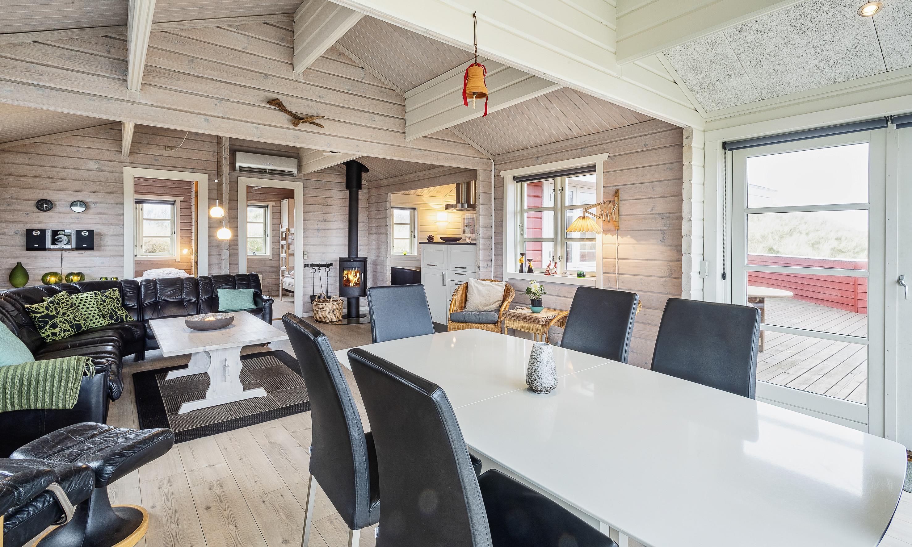 Hyggeligt sommerhus til 6 personer, beliggende på naturskøn klitgrund, ca. 100 meter fra stranden. Stue med brændeovn, fjernsyn og parabol (danske programmer via chrome cast).Trådløs internetadgang og en varmepumpe. Åbent køkken med opvaskemaskine. Mikroovn i vaskerum. Badeværelse med bruser/wc og vaskemaskine. 3 soveværelser: DS + 2S + 2S. 1 soveværelse med 1 dobbeltseng, 1 soveværelse med 2 enkeltsenge og 1 soveværelse med 1 køjeseng. Stor, delvis lukket terrasse. Gynge. Gratis adgang til Varde badeland and Bowling i 2026 . Rygning er ikke tilladt. Byggeår 1983. Renoveret 2010.