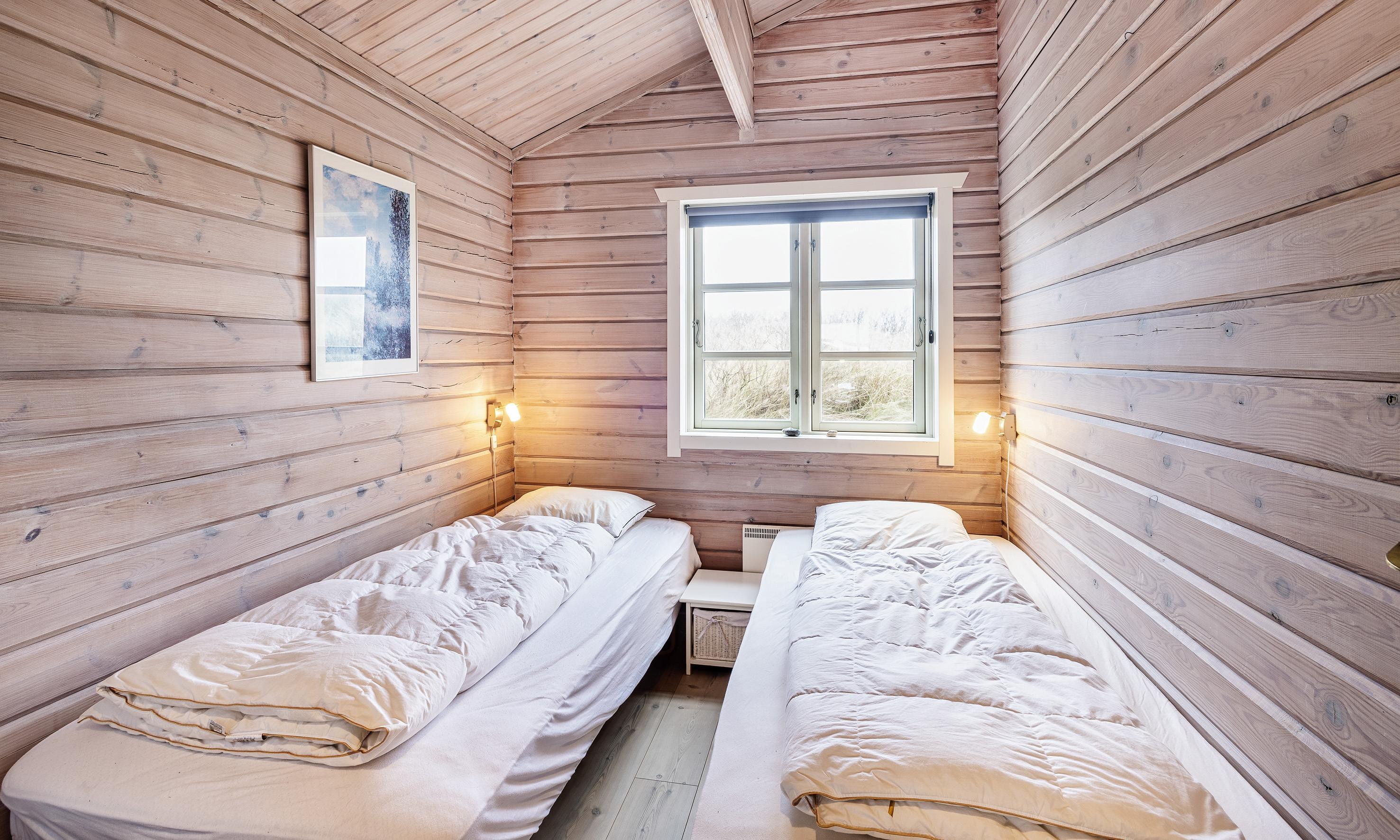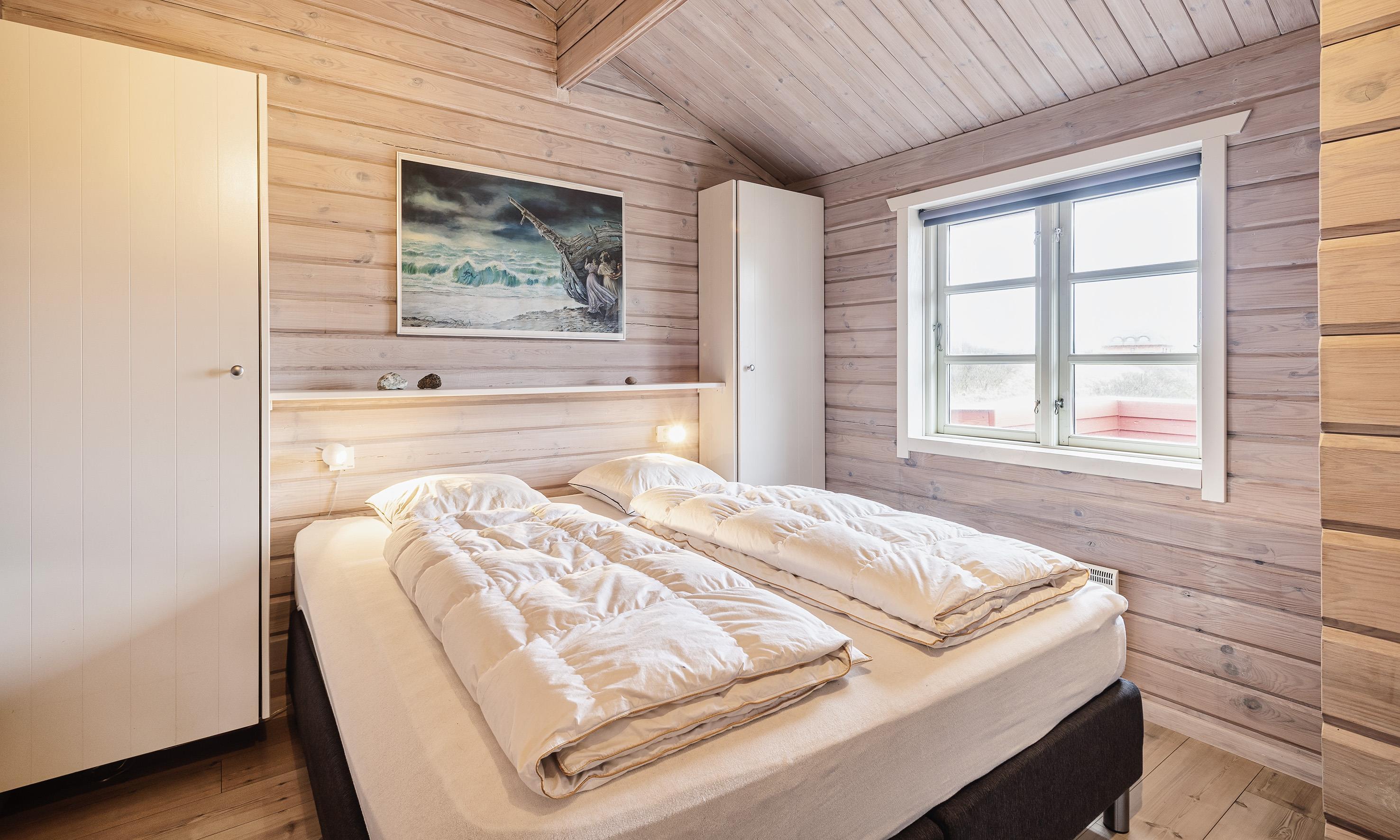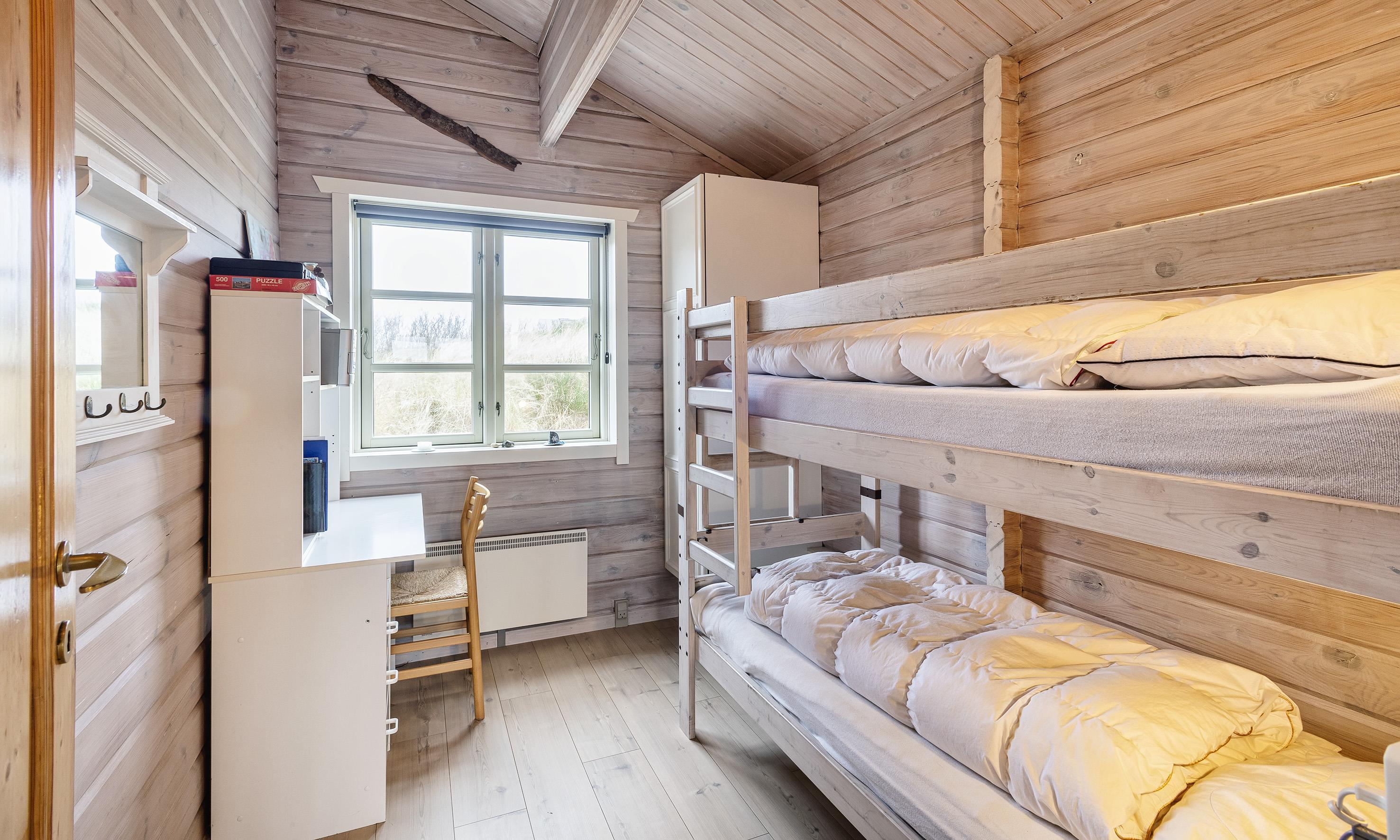 3 soveværelser. 1 med dobbeltseng 180x200 cm. 1 med 2 enkeltsenge (á 90x200 cm). 1 med køjeseng.