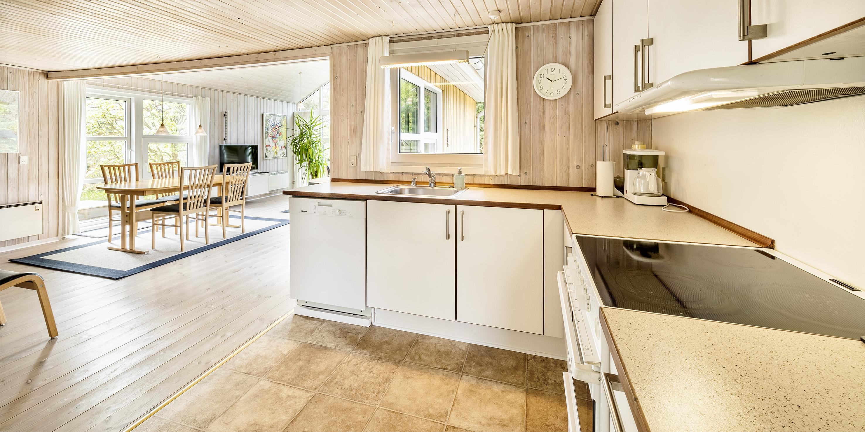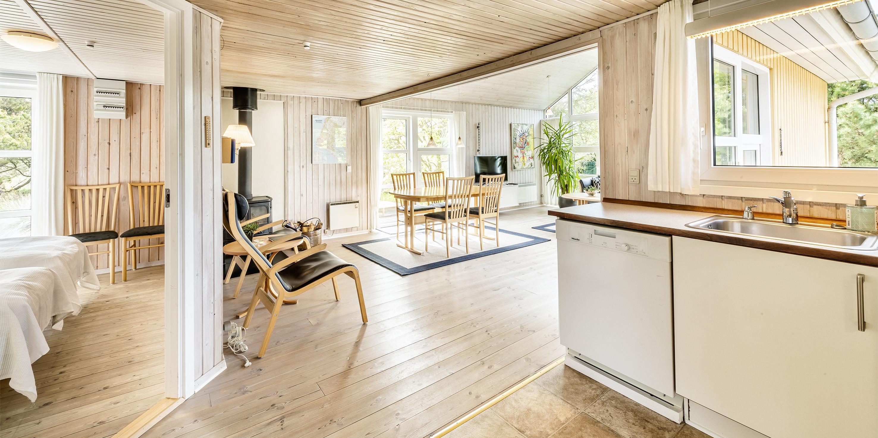 Hyggeligt og velholdt træsommerhus til 4 personer, beliggende på naturskøn grund, ca. 600 meter fra stranden. Stue med brændeovn, fjernsyn (smart-tv), Google Chrome cast og parabol med tysk tv. OBS! INGEN DANSK TV. Trådløs internetadgang (Stofa fiber 200/200 Mbit). Køkken med mikroovn og opvaskemaskine og køl- og fryseskab. Ny badeværelse med bruser/wc og vaskemaskine. 2 soveværelser: DS + DS. 3 terrasser heraf 1 overdækket og delvis lukket. Carport. Shelter, sandkasse og gynge. Hund og Katte ikke tilladt! Rygning ikke tilladt! Byggeår 1966, renoveret 2015.