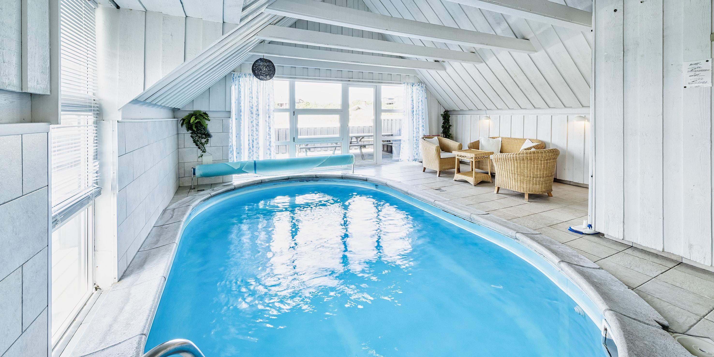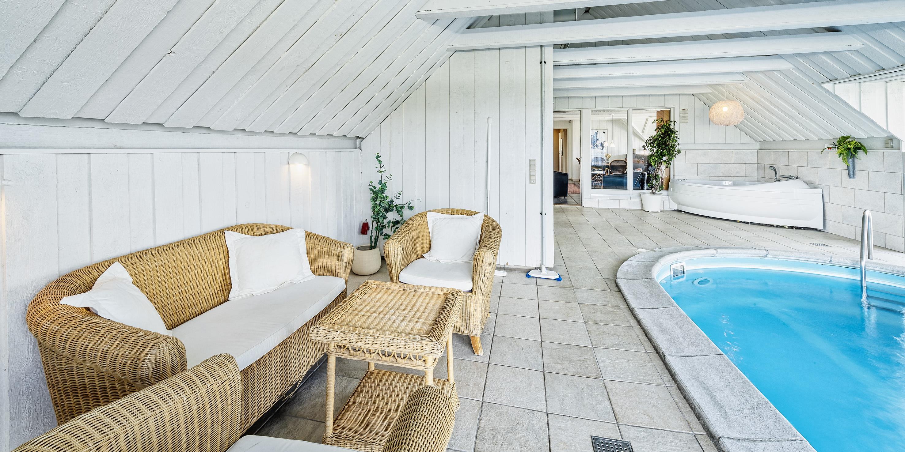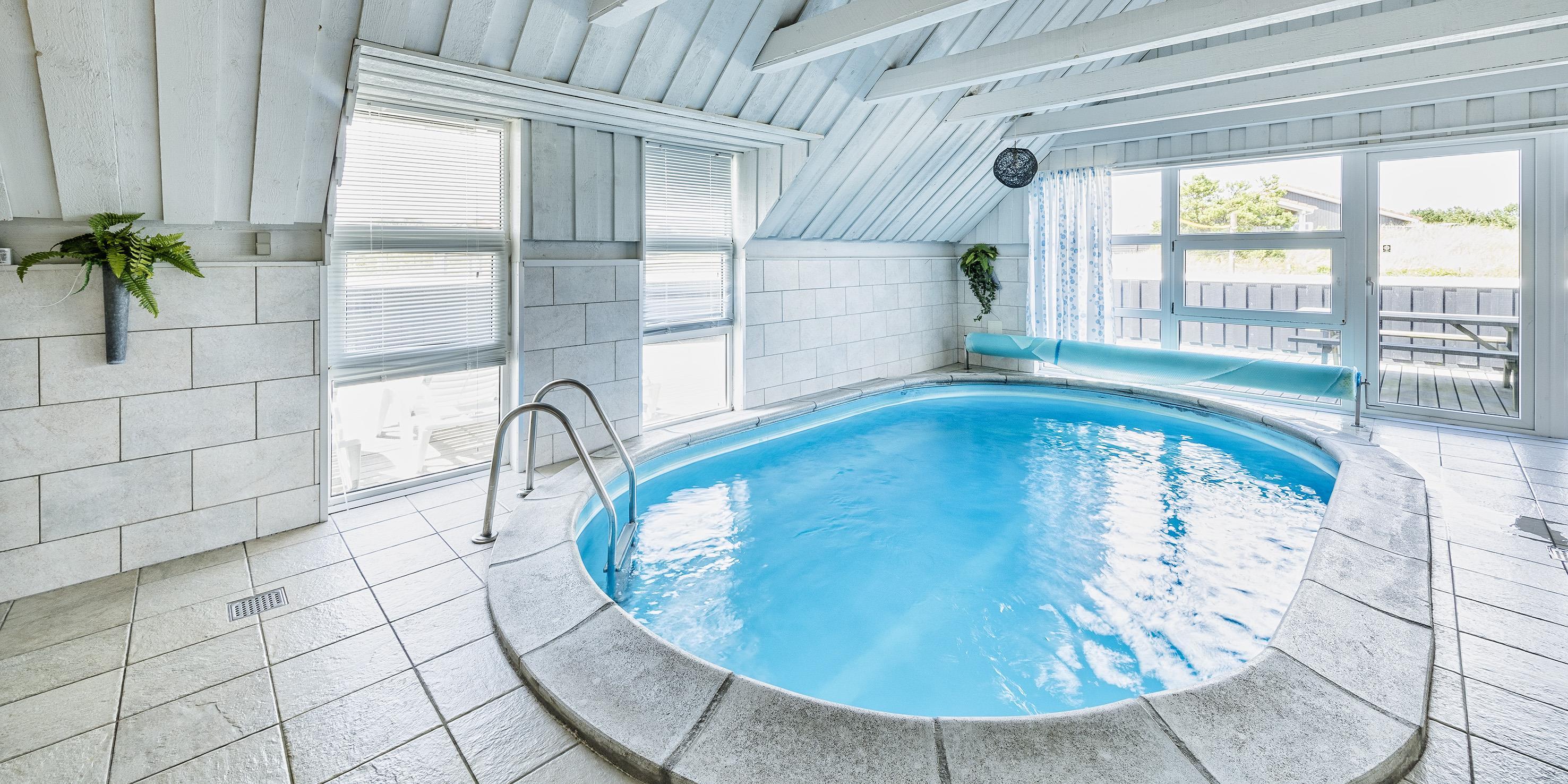 Smagfuldt, velindrettet lavenergi poolhus til 8 personer og 2 børn, beliggende på 2.000 m2 stor klitgrund med læ, ca. 500 meter fra stranden. Husert indeholder: Entre med god garderobeplads, med indgang til køkken-alrum. Stor opholdsstue med brændeovn, fjernsyn med Stofa sommerhuspakke og samt trådløs internetadgang. Varmepumpe. Køkkenalrum med stor spiseplads der afgrænses med halvmur mod stuen. Moderne køkken med opvaskemaskine, mikroovn, keramiskkogeplade samt køle-/frysekombination. 4 soveværelser: DS + DS + DS + DS heraf det ene med Tv, video, Playstation 2 og Nintendo Wii. Ydermere findes der en hems med 2 madrasser, adgang til hems sker fra gang. Huset råder over 2 badeværelser med bruser/wc. Separat poolrum med en ca. 4,85 x 3 x 1,1 (længde x brede x dybde) stor oval pool, spa, besparende poolopvarming med en luft-vand-pume og en ekstra luft-luft-pume til huset. Sauna, vaskemaskine og tørretumbler. Ny stor terrasse syd-vestvendt terrasse, en del heraf er lukket. Beachvolleybane og gynge. Ikke-ryger hus. Byggeår 1987.