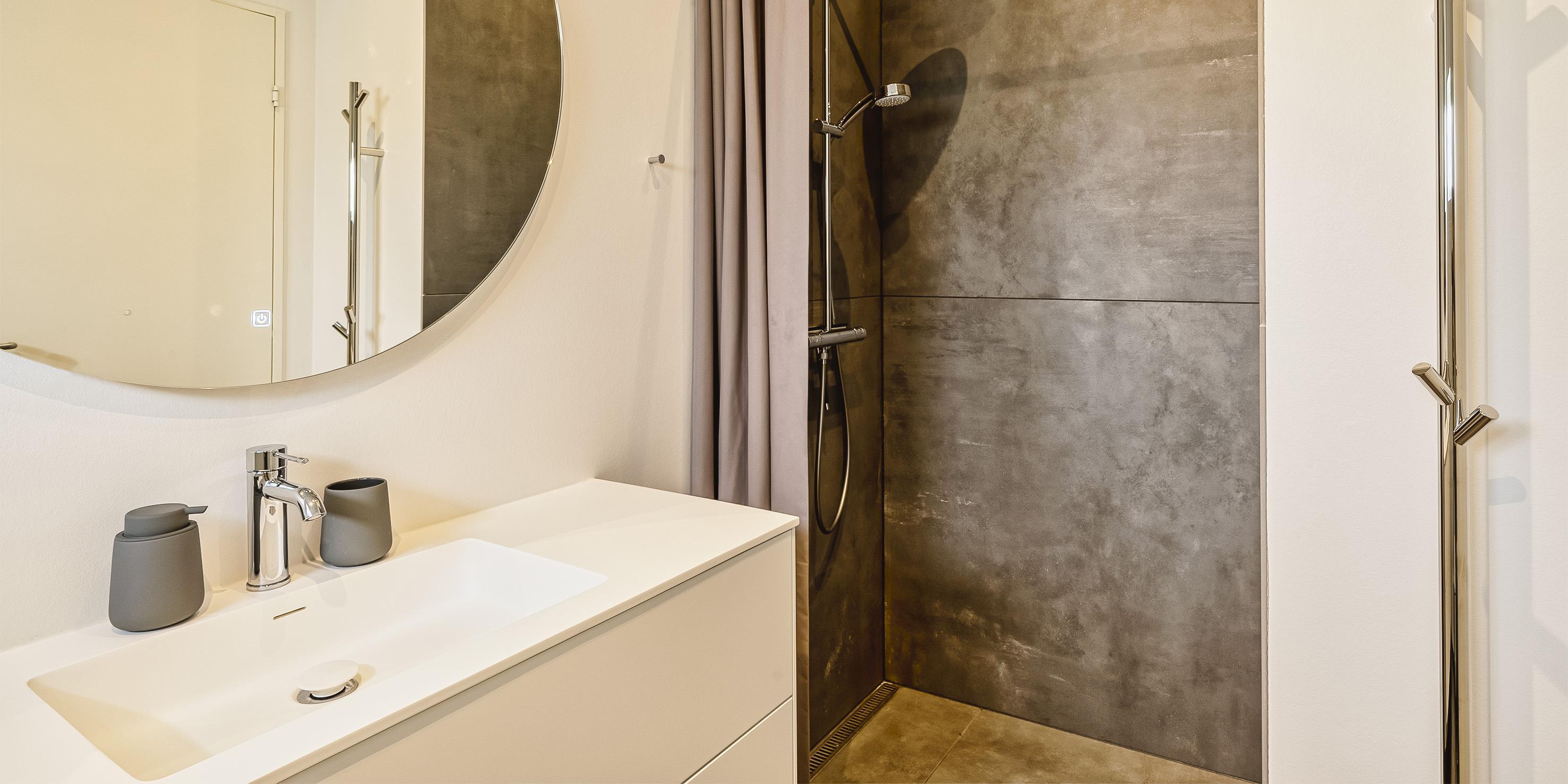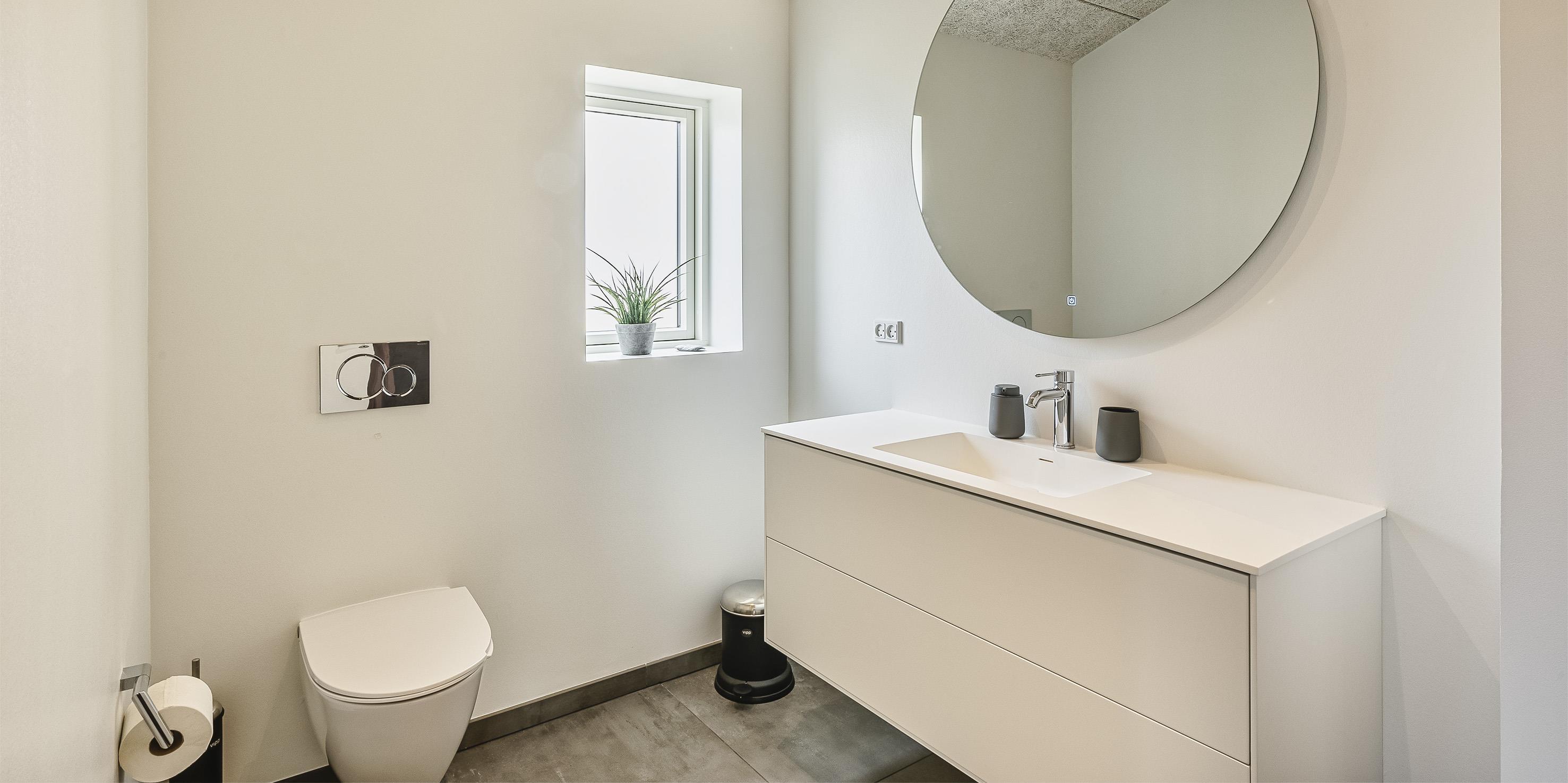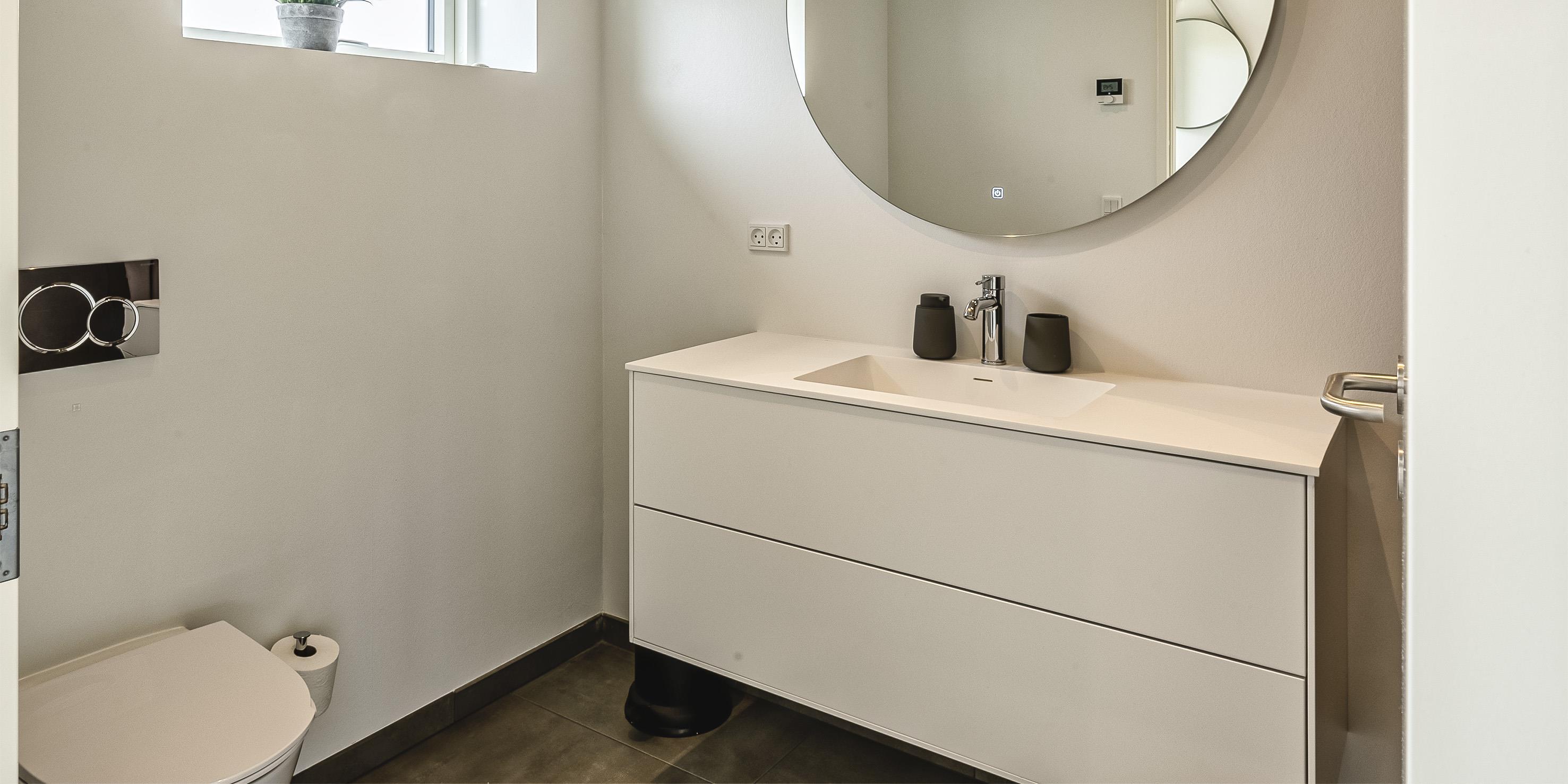 Bad med toilet, bruser og vask