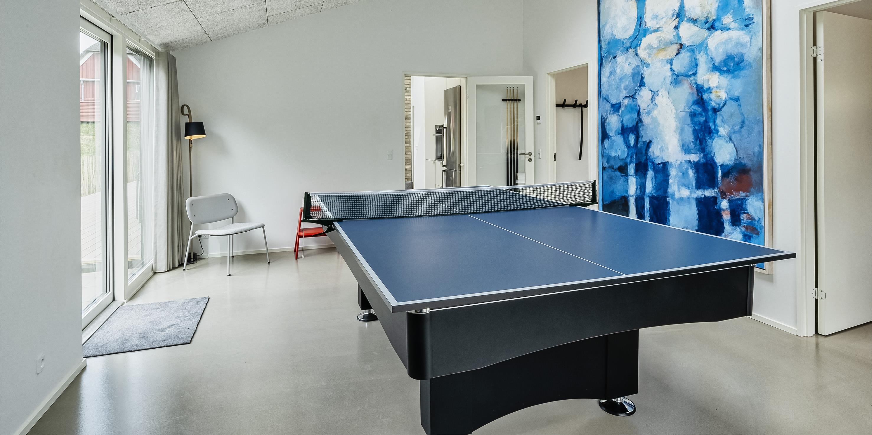 Huset indeholder: entré samt bryggers med vaskemaskine og tørretumbler. 4 rummelige soveværelser: DS + DS + DS + DS. Et masterbadeværelse med bruser, vaskearrangement og væghængt toilet. Huset råder desuden over et gæstebadeværelse med en bruser, vægthængt toilet og vaskearrangement. Køkkenet fremstår med alt komfort og med bageovn i arbejdshøjde, kogeplader, emhætte, mikroovn, køle-fryseskab og opvaskemaskine. Spiseafdelingen og stuen er i åben forbindelse med køkkenet. Rummet har store panoramavinduer, hvor omgivelserne samt brændeovnen kan nydes. Der er også en stort aktivitetsrum med bordtennis og pool bord. Huset har en stor indhegnet træterrasse, som delvis er overdækket. Udebruser og gas grill kan benyttes om sommeren.