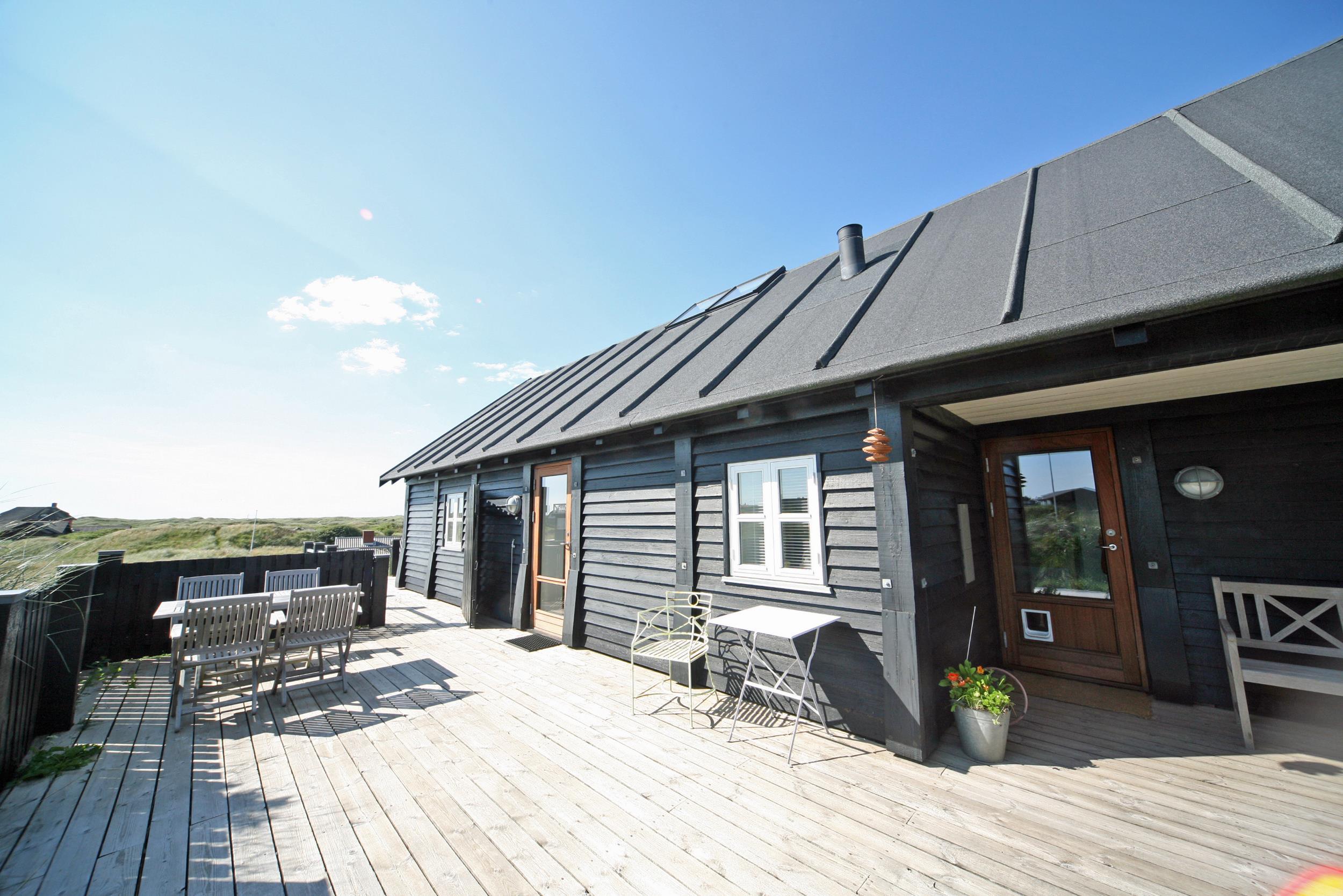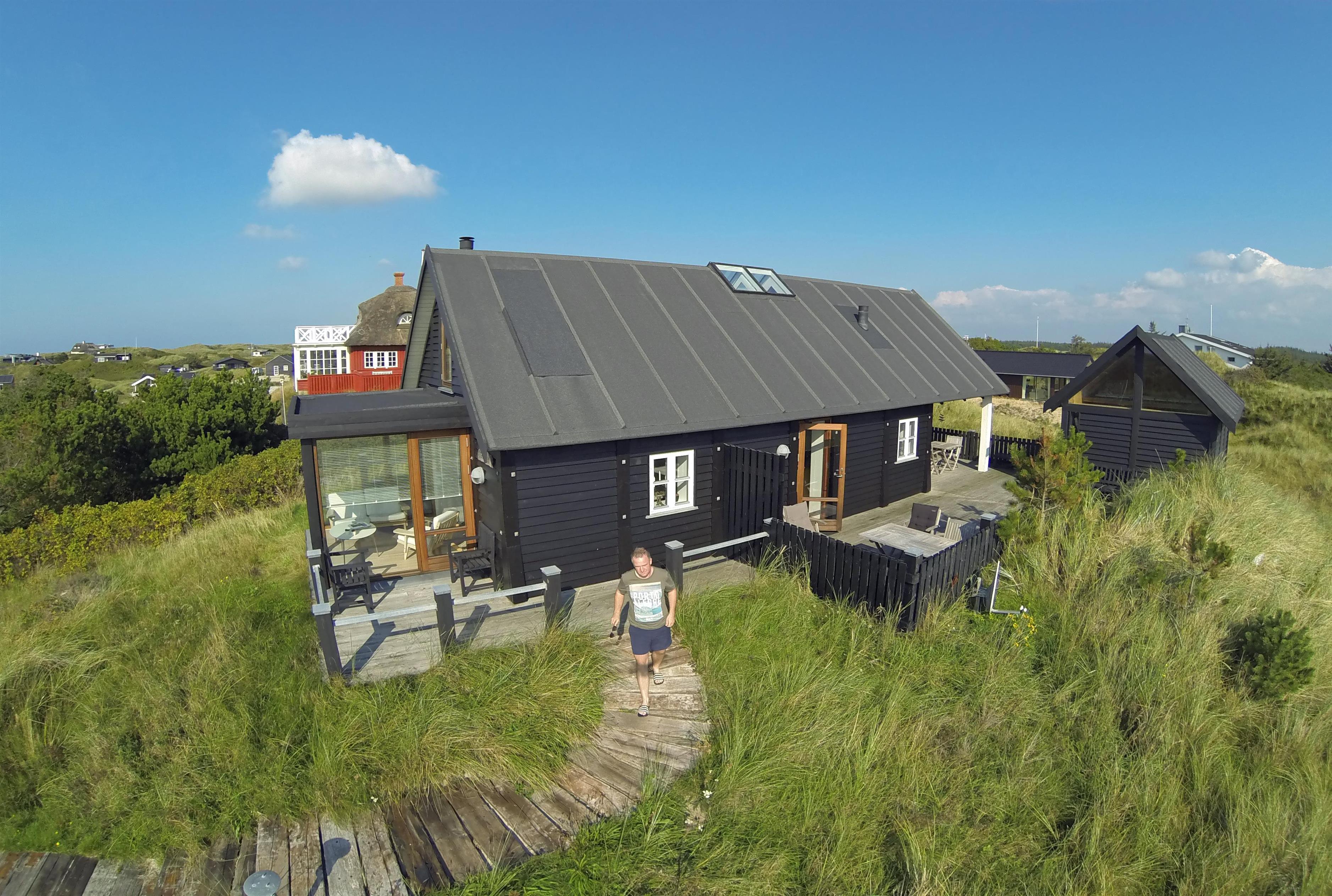 Meget smagfuldt sommerhus på 2 etager til 6 Vejersfans, beliggende på en klitgrund ca. 300 meter fra stranden. Stue med brændeovn, fjernsyn, parabol og trådløs internetadgang (Danske programmer via Chrome Cast). Køkken med opvaskemaskine, mikroovn og køle-/frysekombination. 3 soveværesler: DS + 2S + 2S. Badeværelse med bruser/wc. Flere terrasser. Rygning og husdyr er ikke tilladt. Byggeår 1932, Gratis adgang badeland og Bowling i Varde i 2026. renoveret 2008.