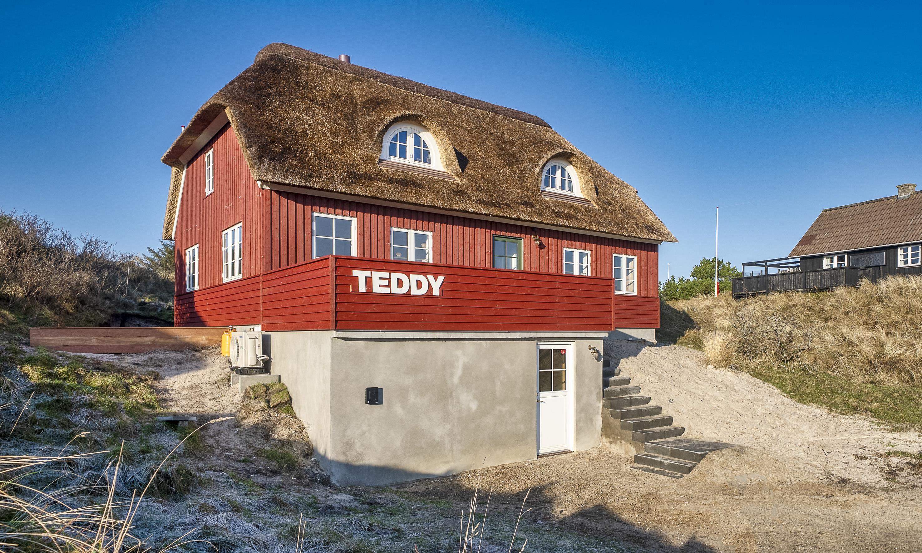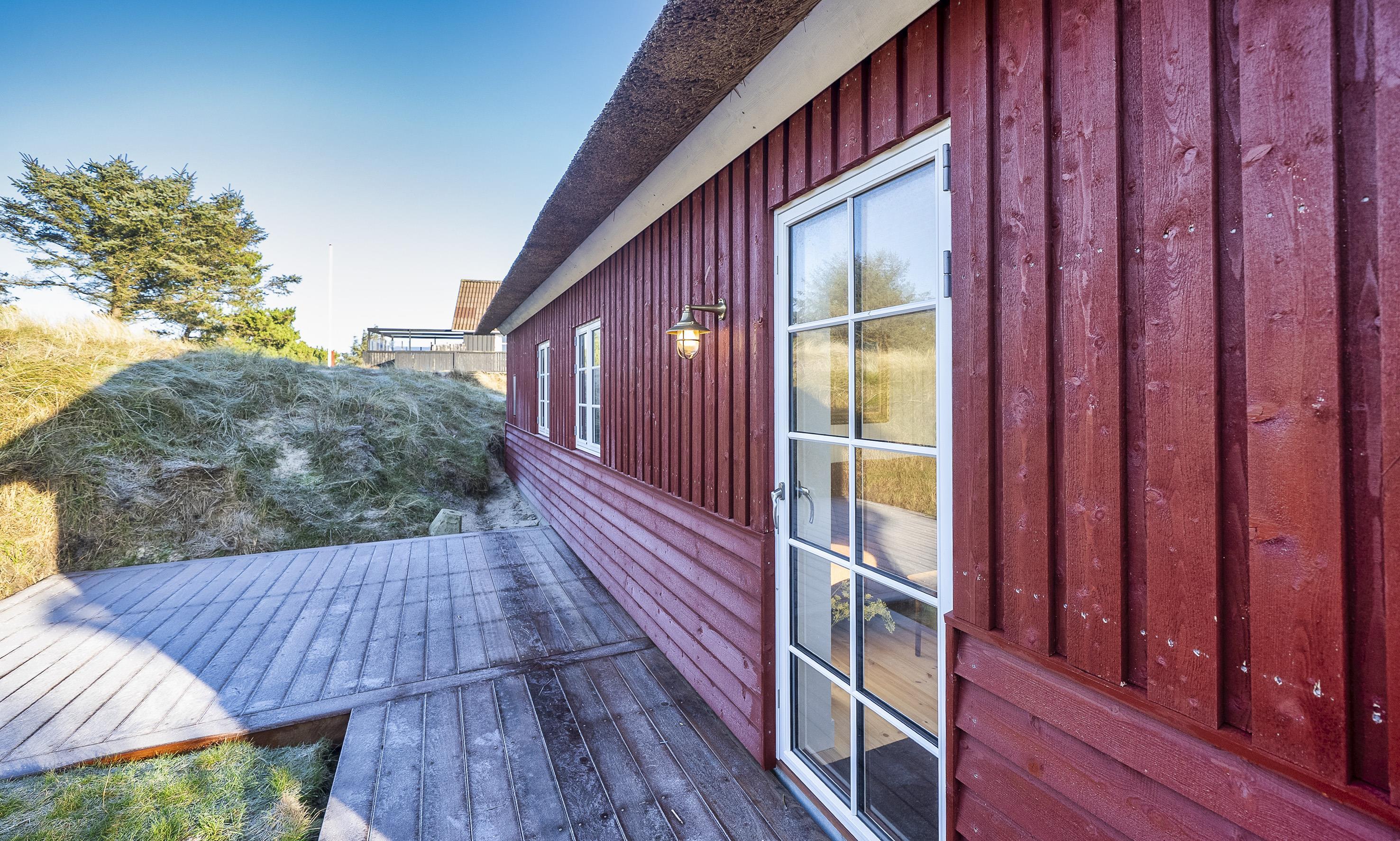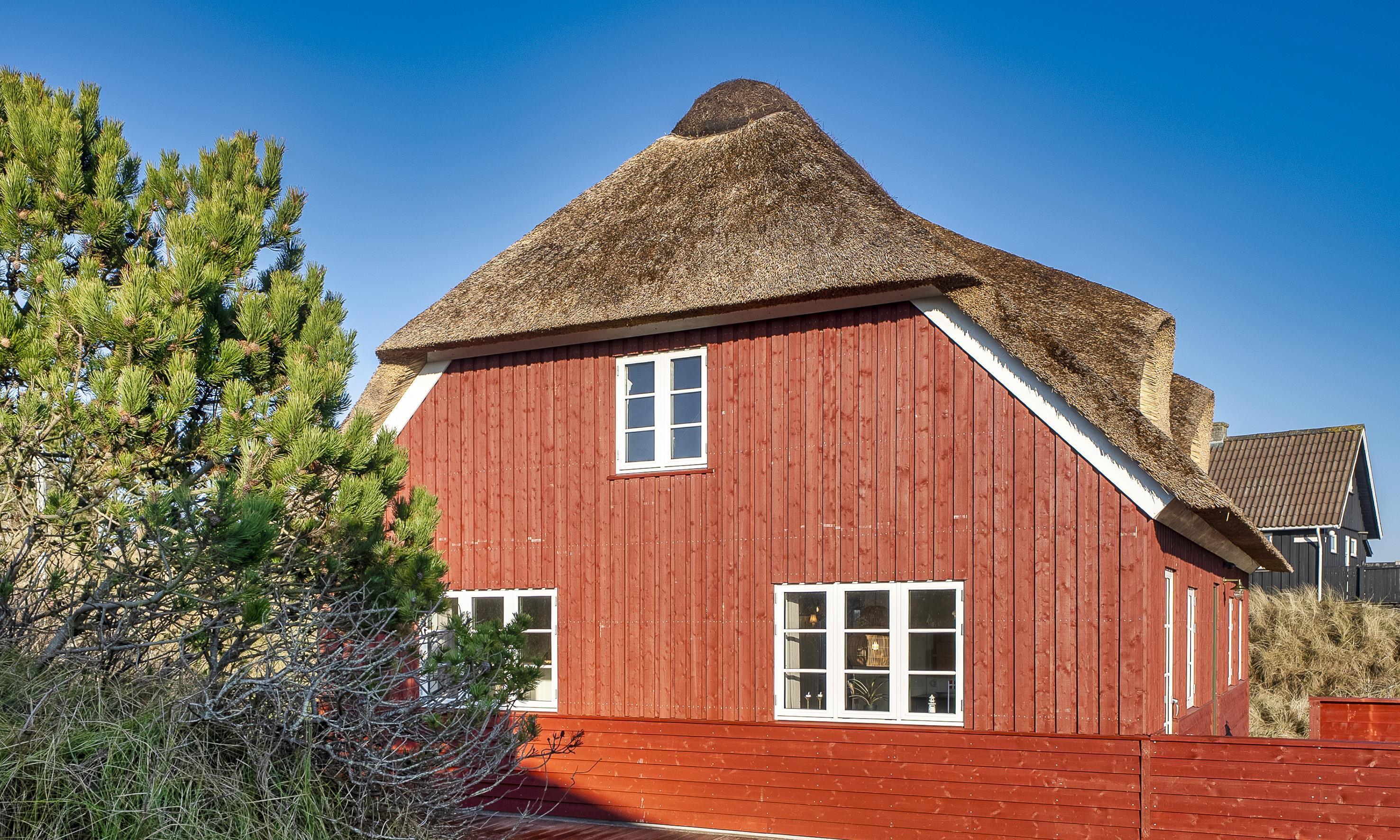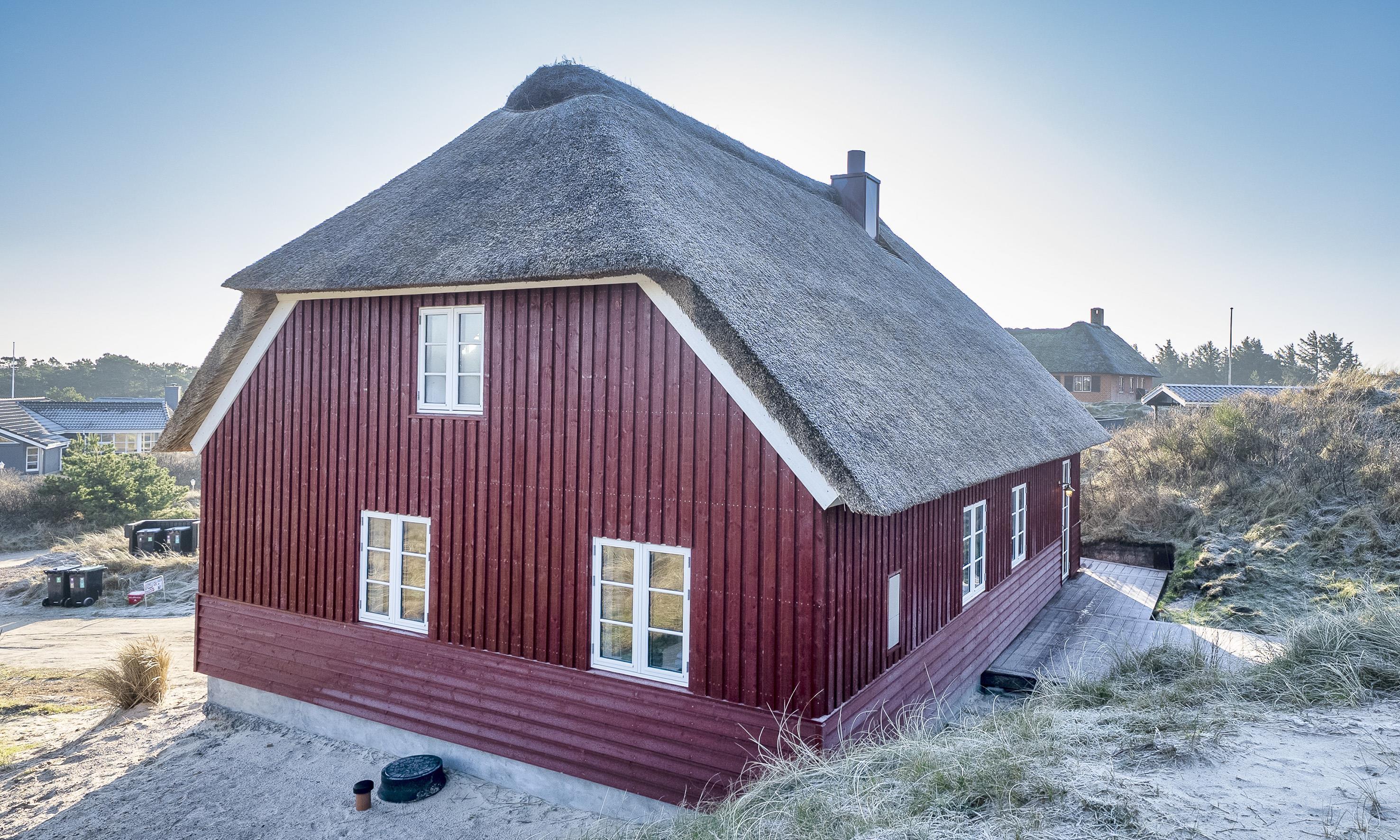 Kun 500 meter fra stranden venter dette spritnye sommerhus, opført i klassisk nordisk-romantisk stil med rødmalet træ og stråtag. Et hus, der allerede udefra emmer af charme og ægte sommerhusstemning – og indenfor mødes du af moderne komfort og gennemtænkte detaljer.
