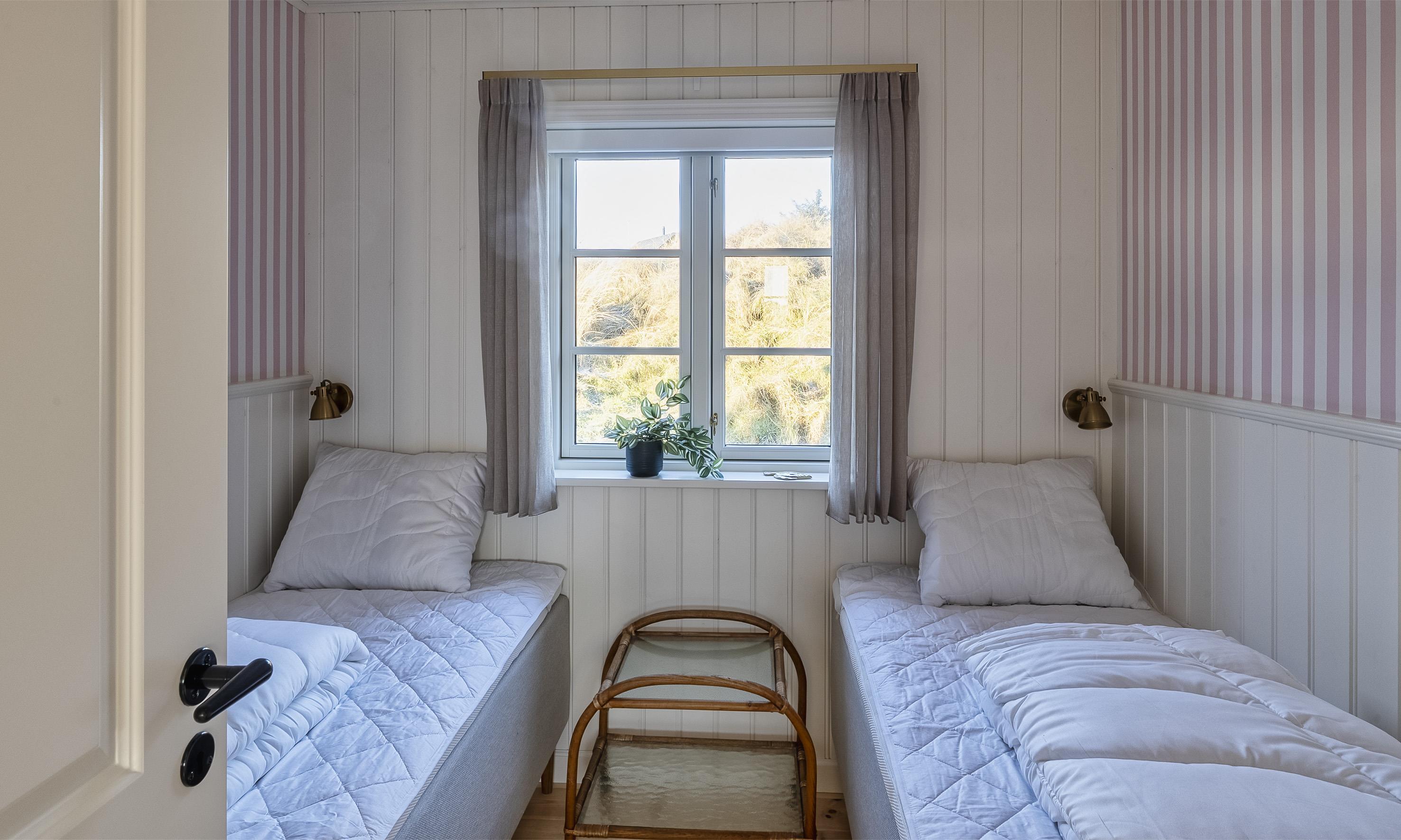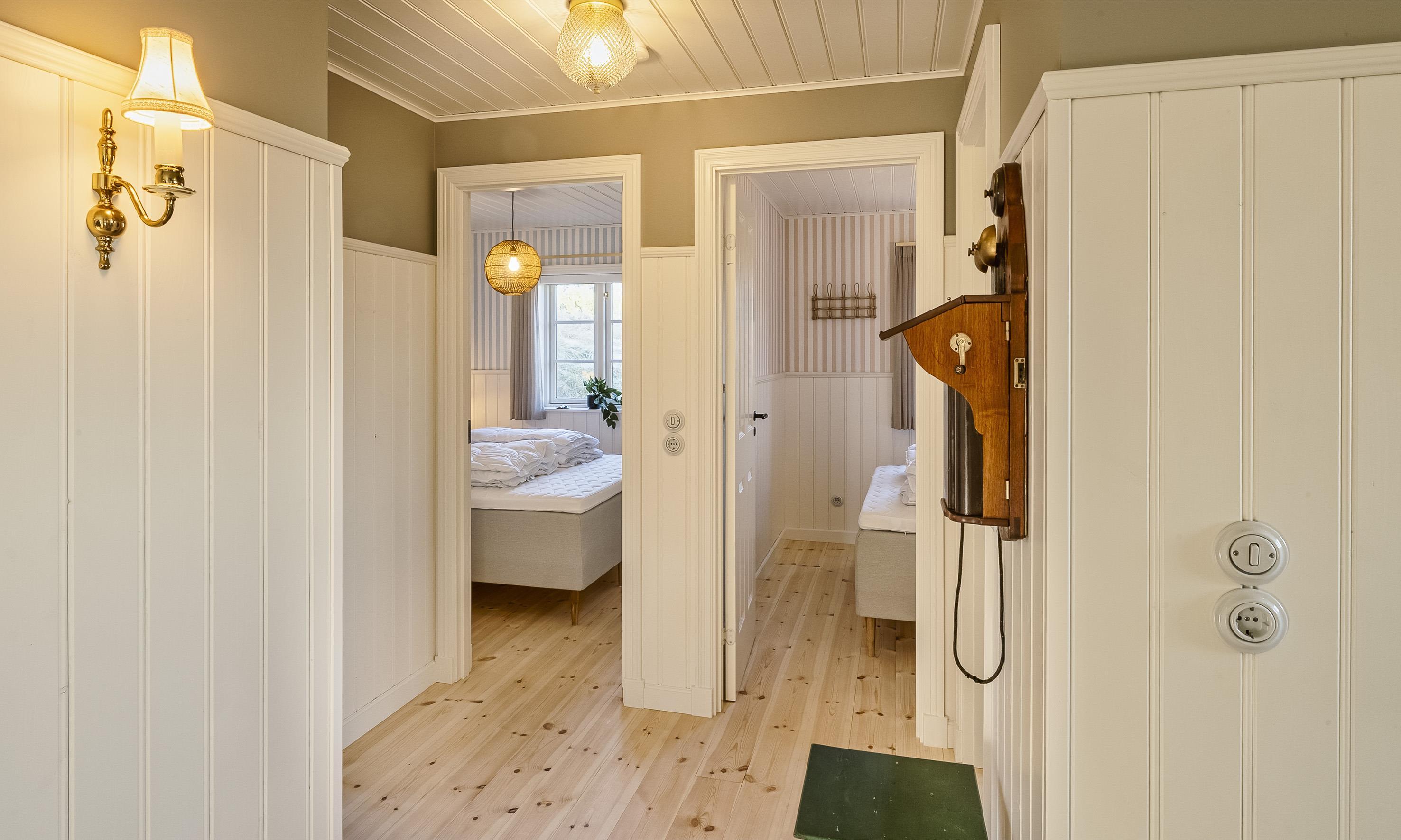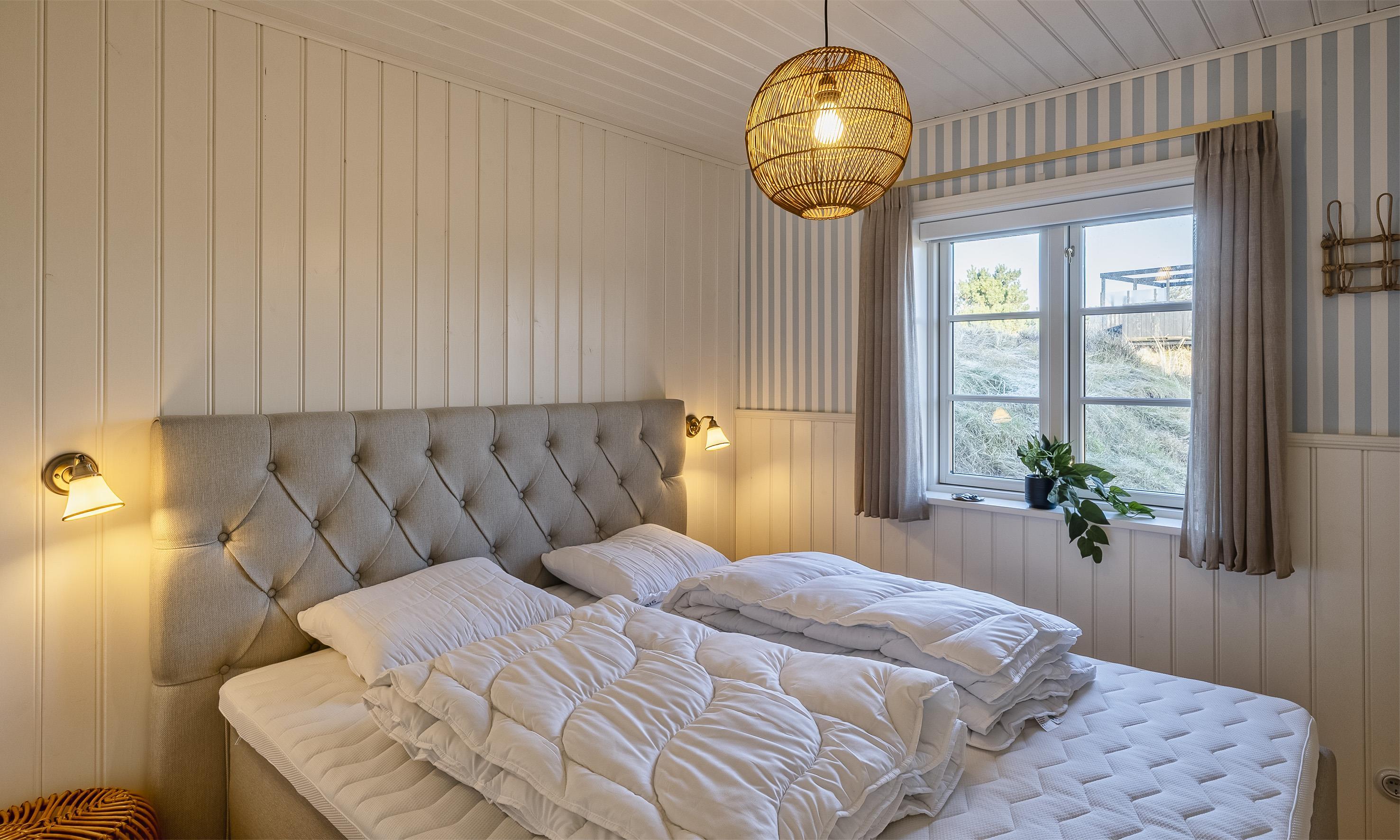Tre soveværelser med i alt seks sovepladser (to værelser med dobbeltseng, ét med to enkeltsenge). DS+DS+2ES
