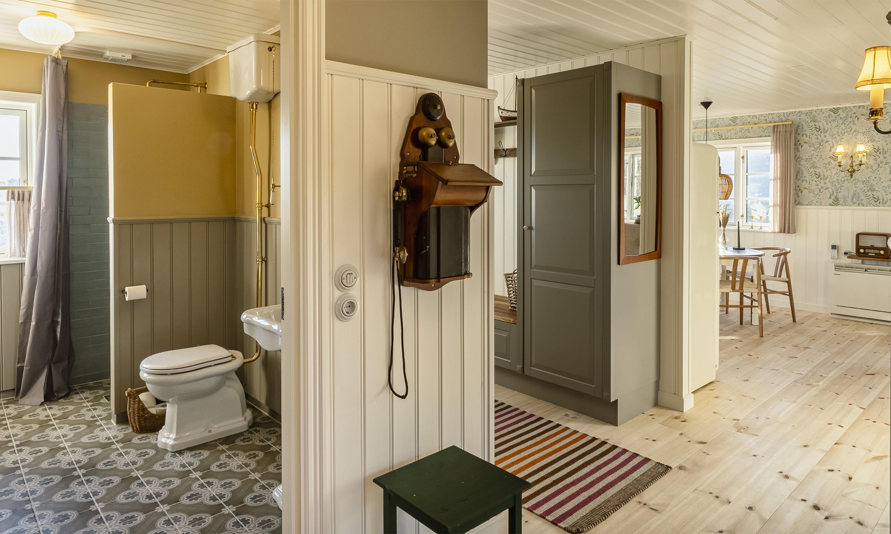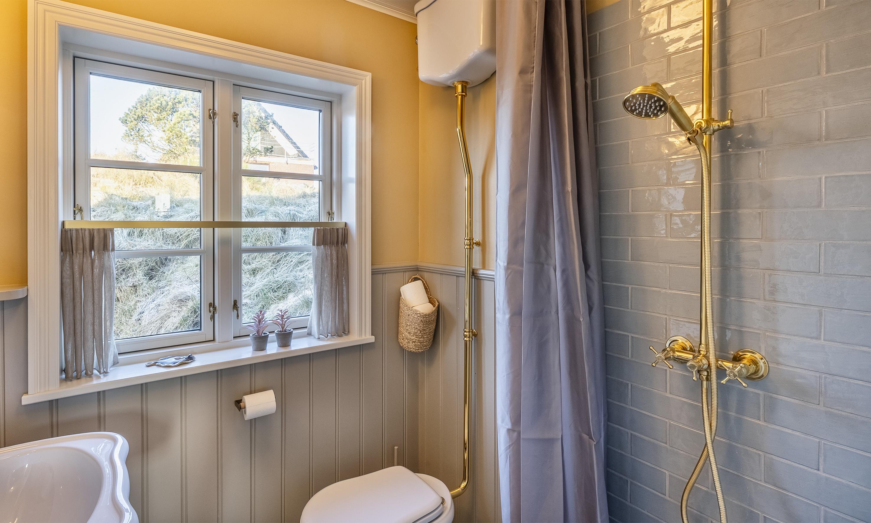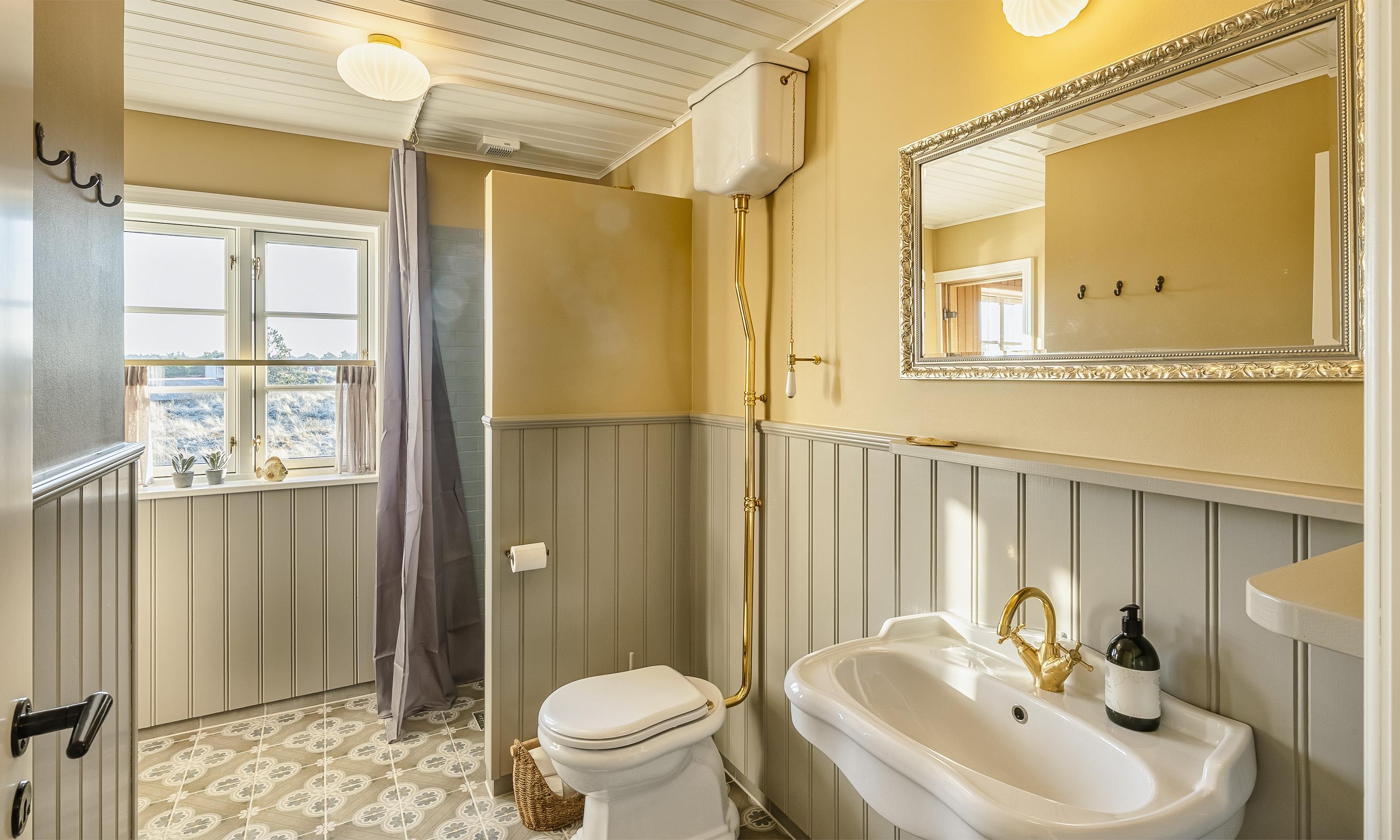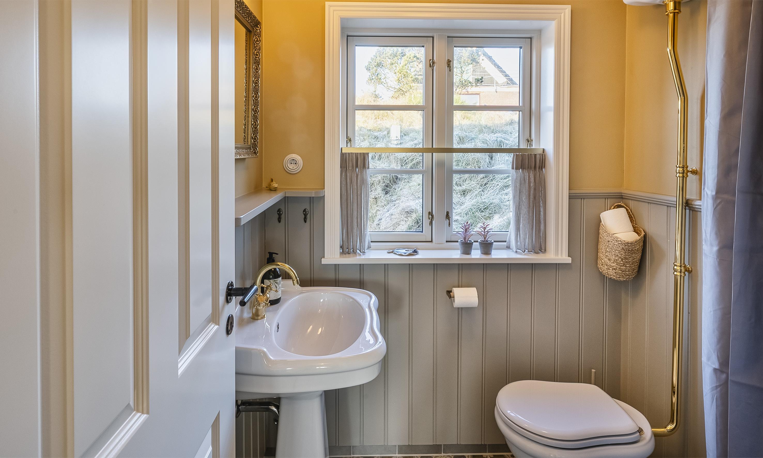 To badeværelser med gulvvarme, bruser, håndvask og toilet – det ene med sauna, så du kan forkæle dig selv efter en frisk gåtur ved Vesterhavet.