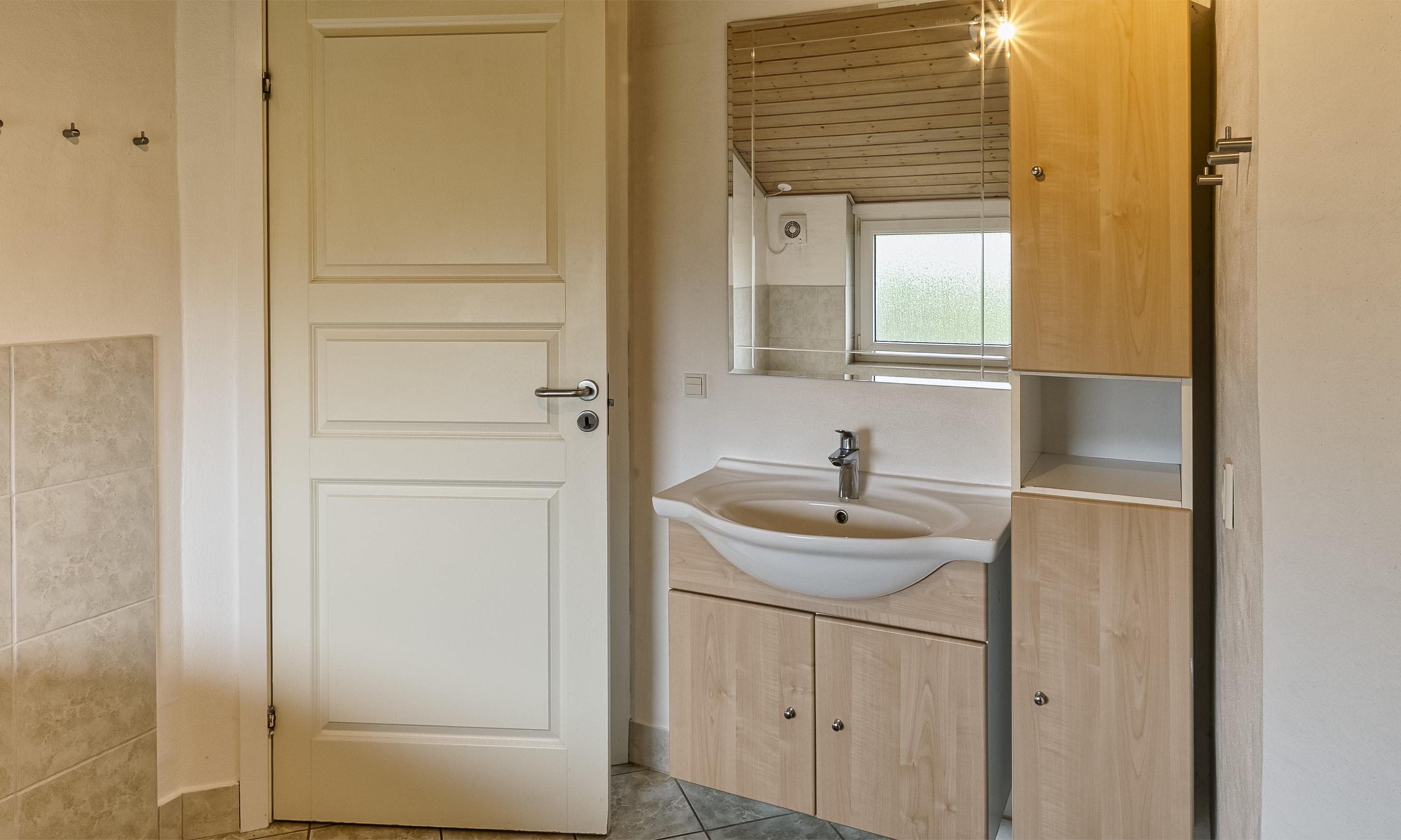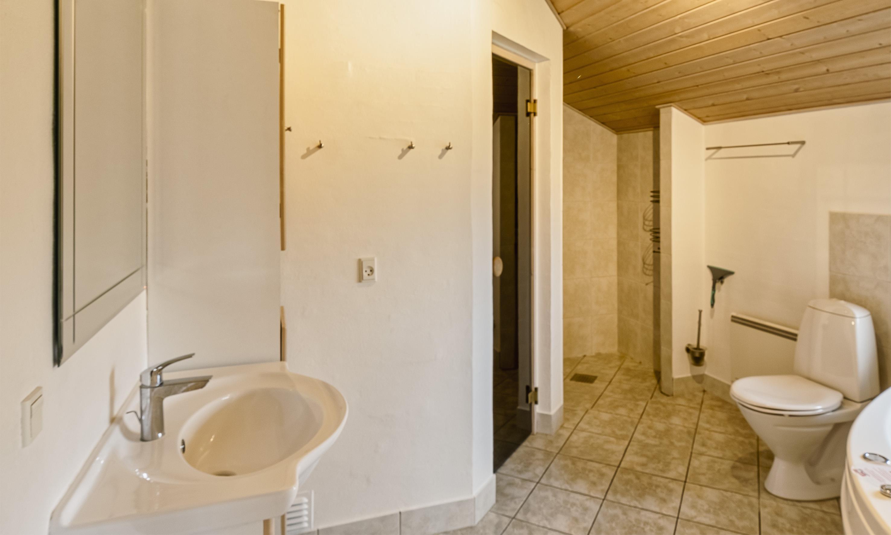 Bad med toilet, bruser og vask