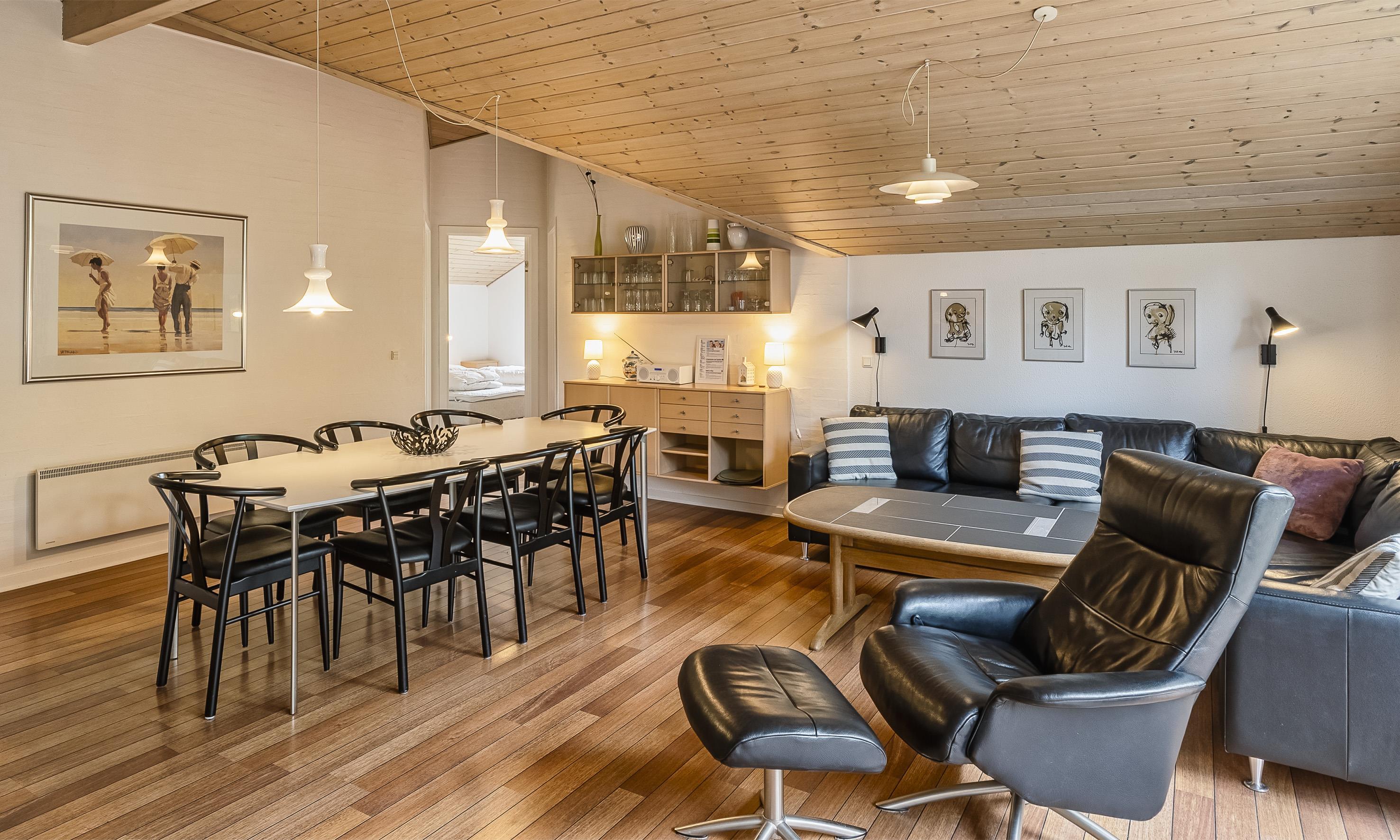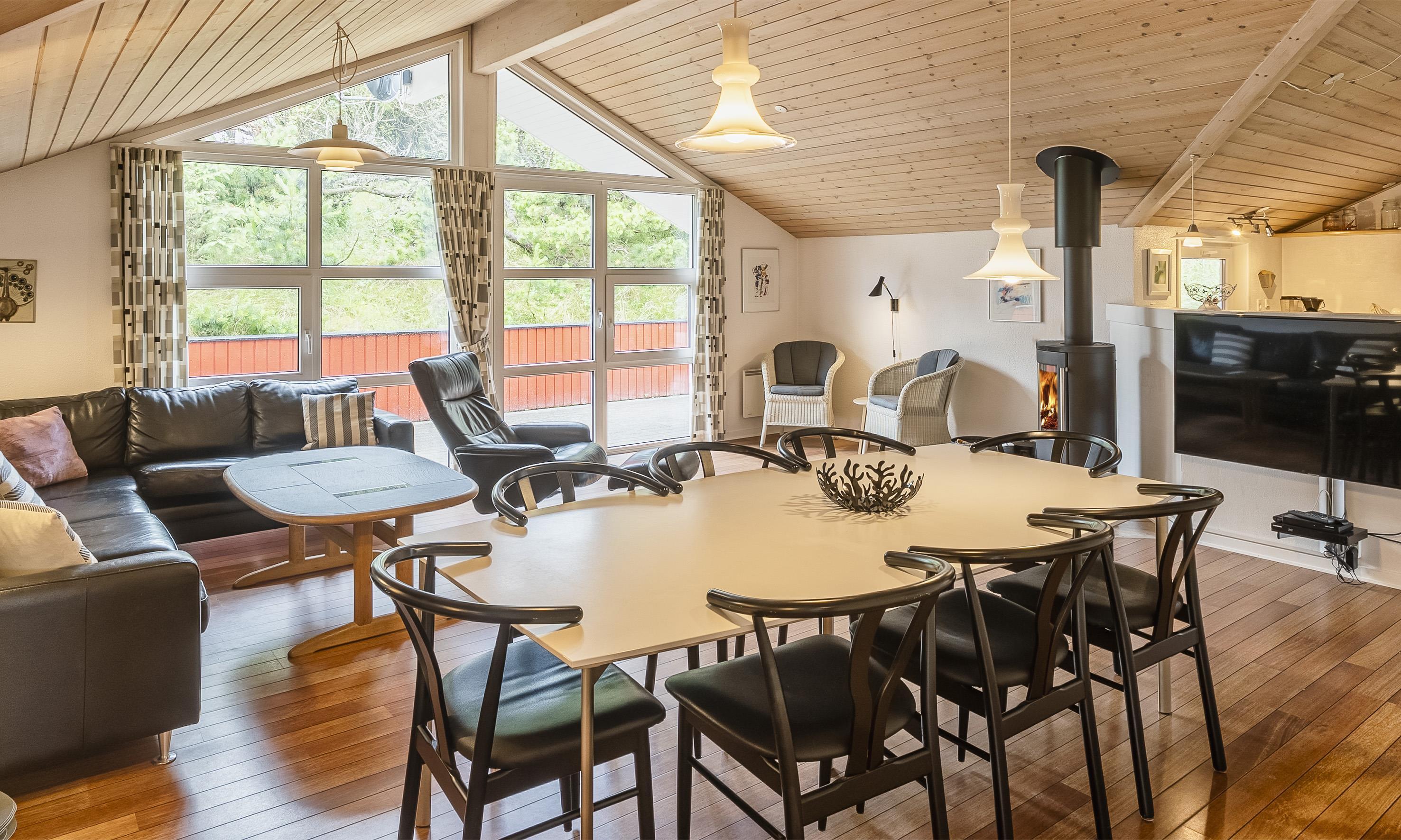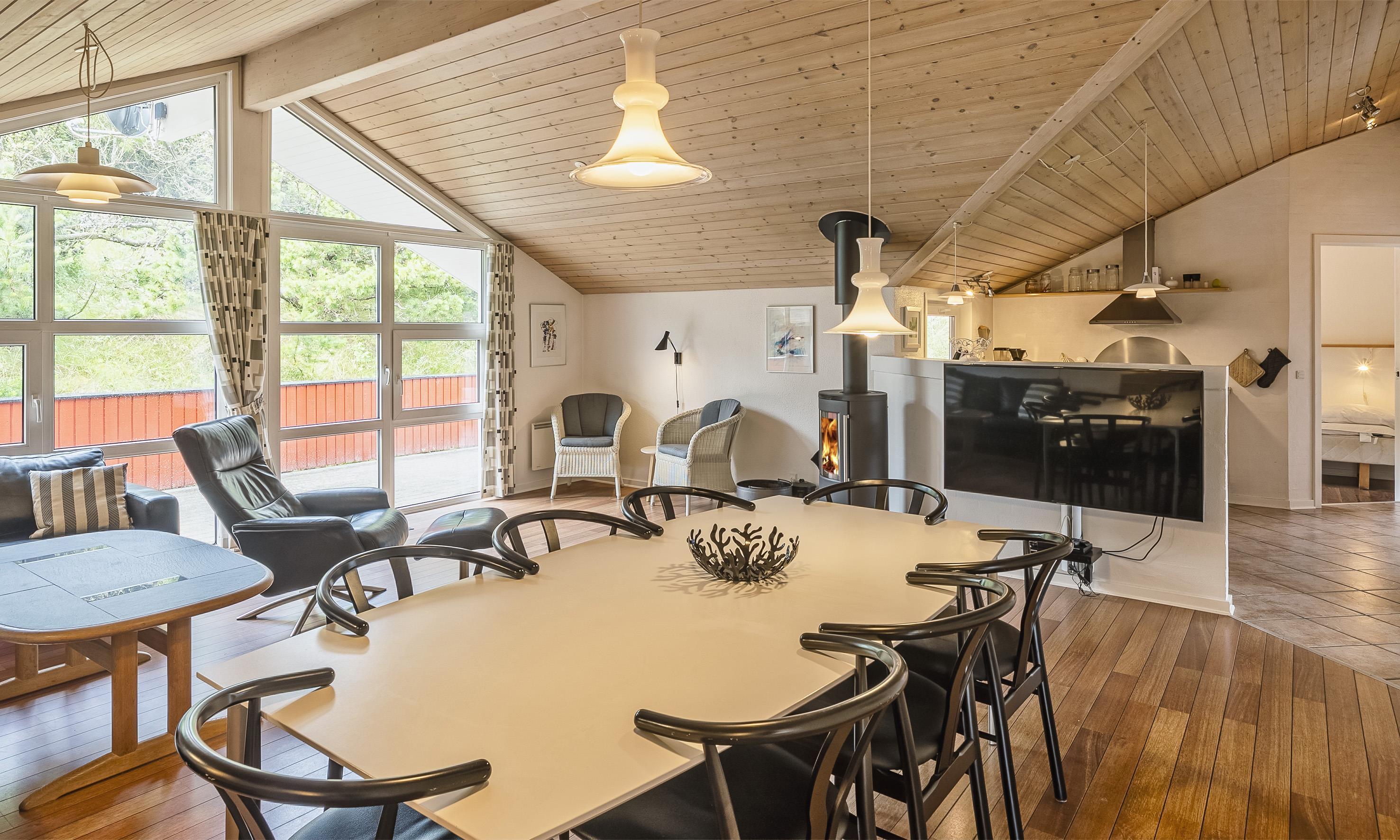 Smagfuldt sommerhus til 6 voksne og 2 børn, ca. 200 meter fra stranden. Stue med brændeovn, fjernsyn og parabol (DR programmer). Åbent køkken med opvaskemaskine, mikroovn og en lille skabsfryser. 4 soveværelser: DS + DS + 2S + 2S. Badeværelse med bruser/wc, spa og sauna. Gæstetoilet med bruser. Vaskemaskine og tørretumbler. Lukket terrasse. Sandkasse og gynge. Husdyr er ikke tilladt! Trådløs Internet. Rygning er ikke tilladt. Byggeår 2004. Gratis adgang til badeland og bowling i Varde 2026.