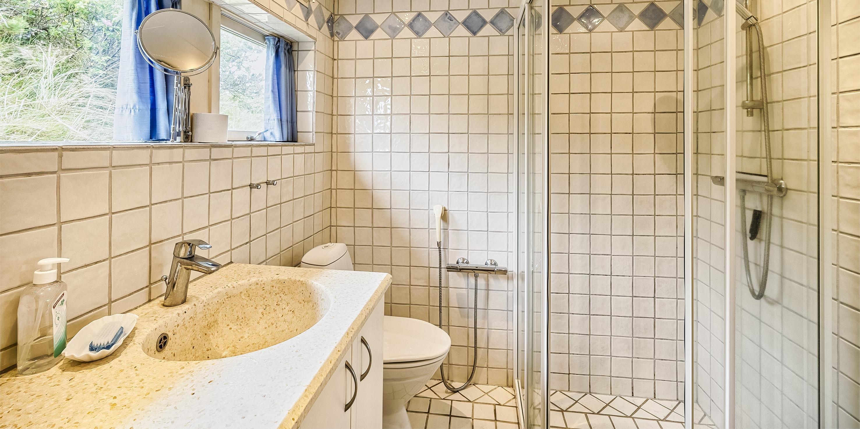 Bad med toilet, bruser og vask