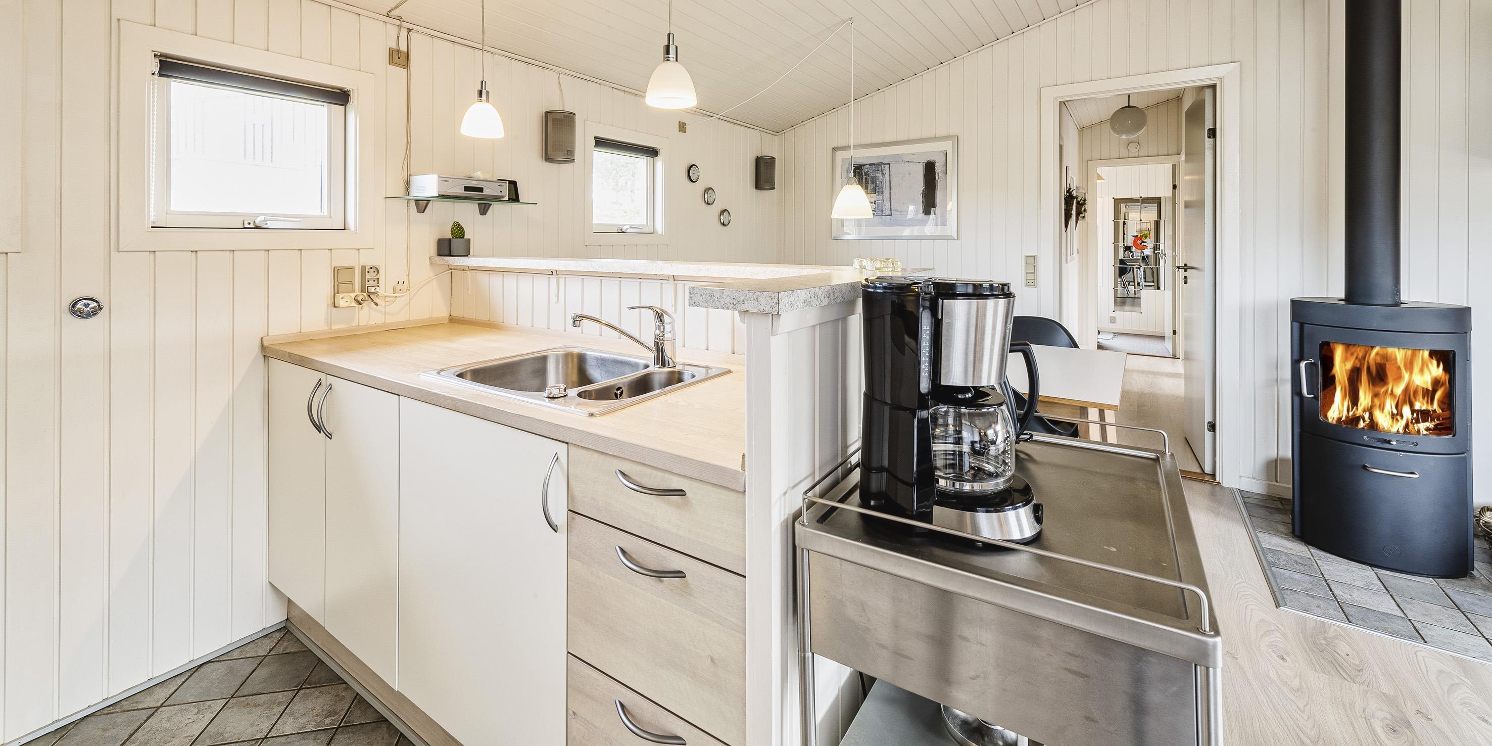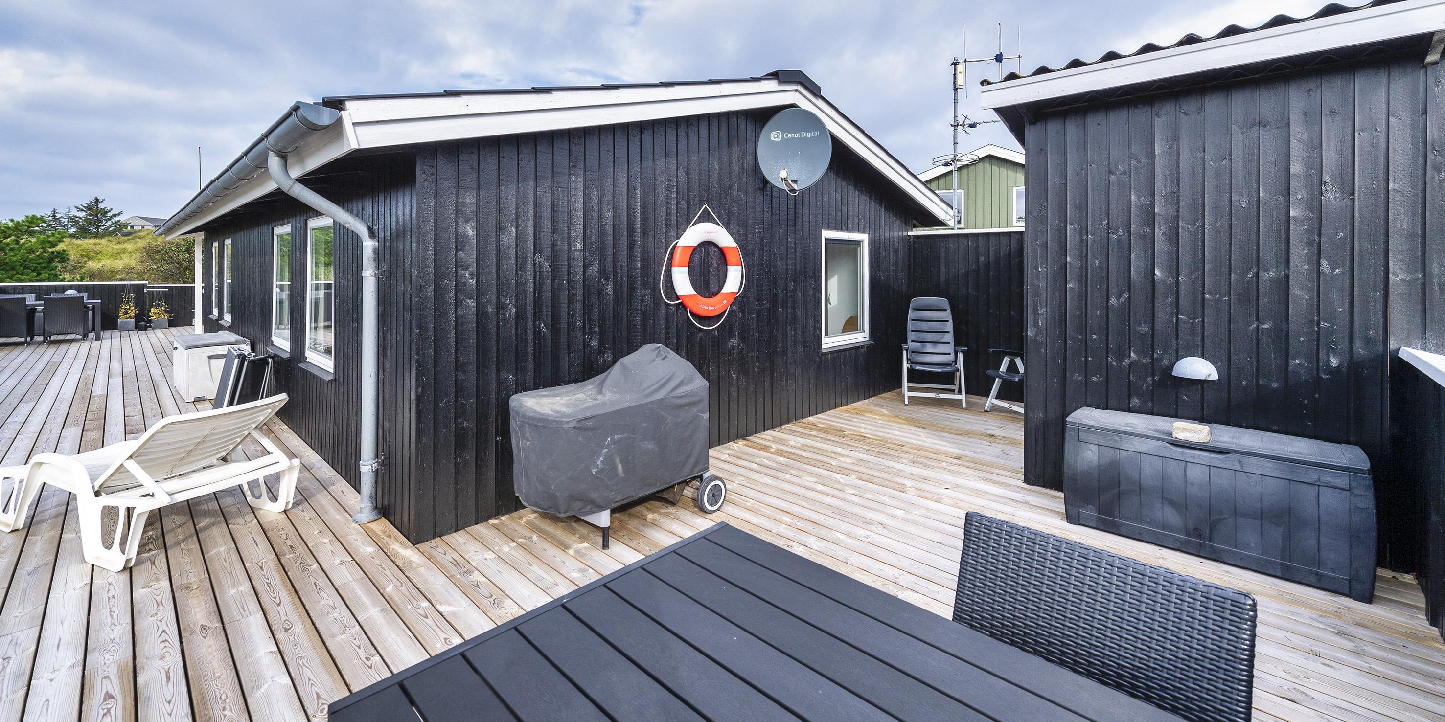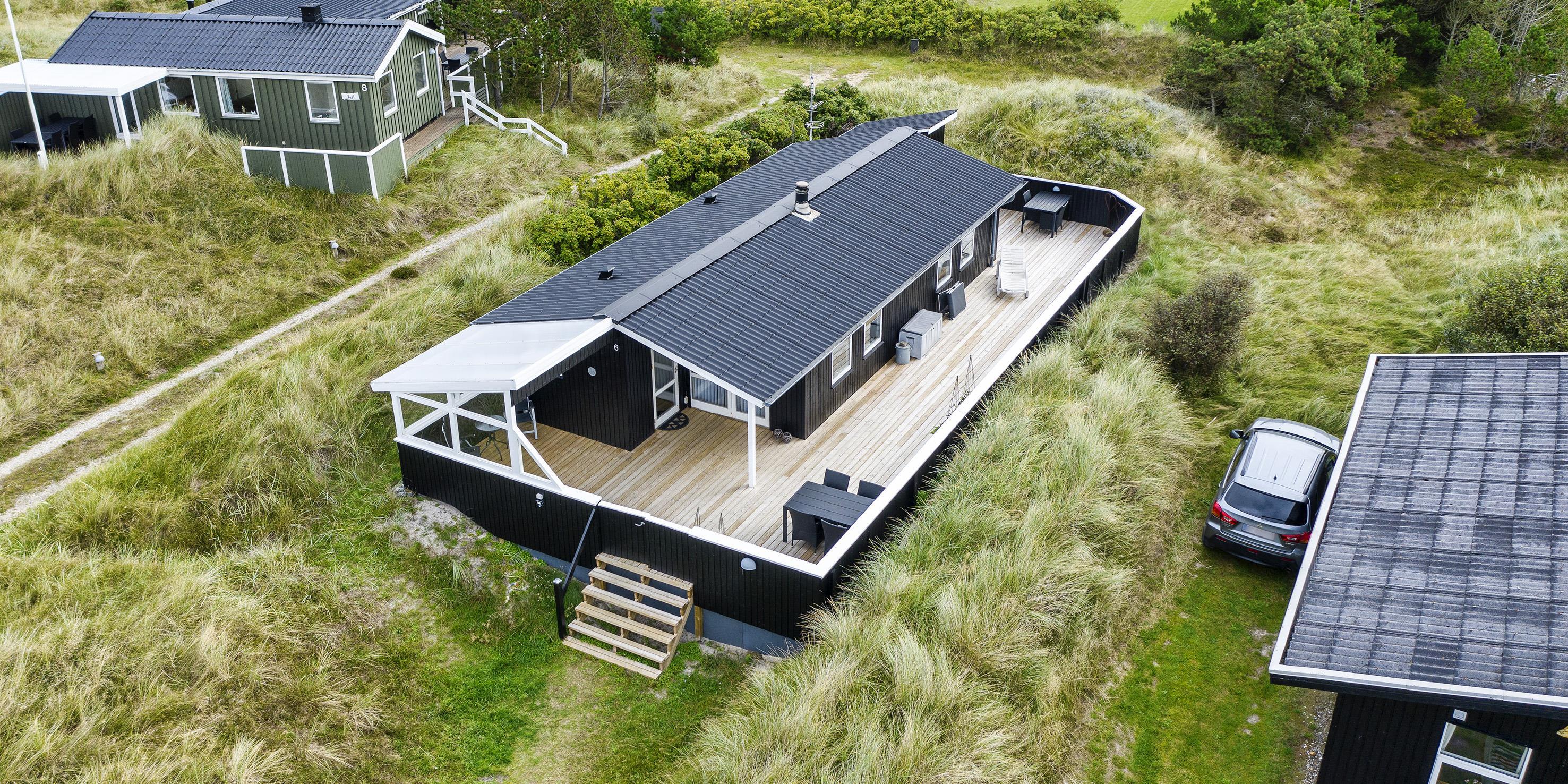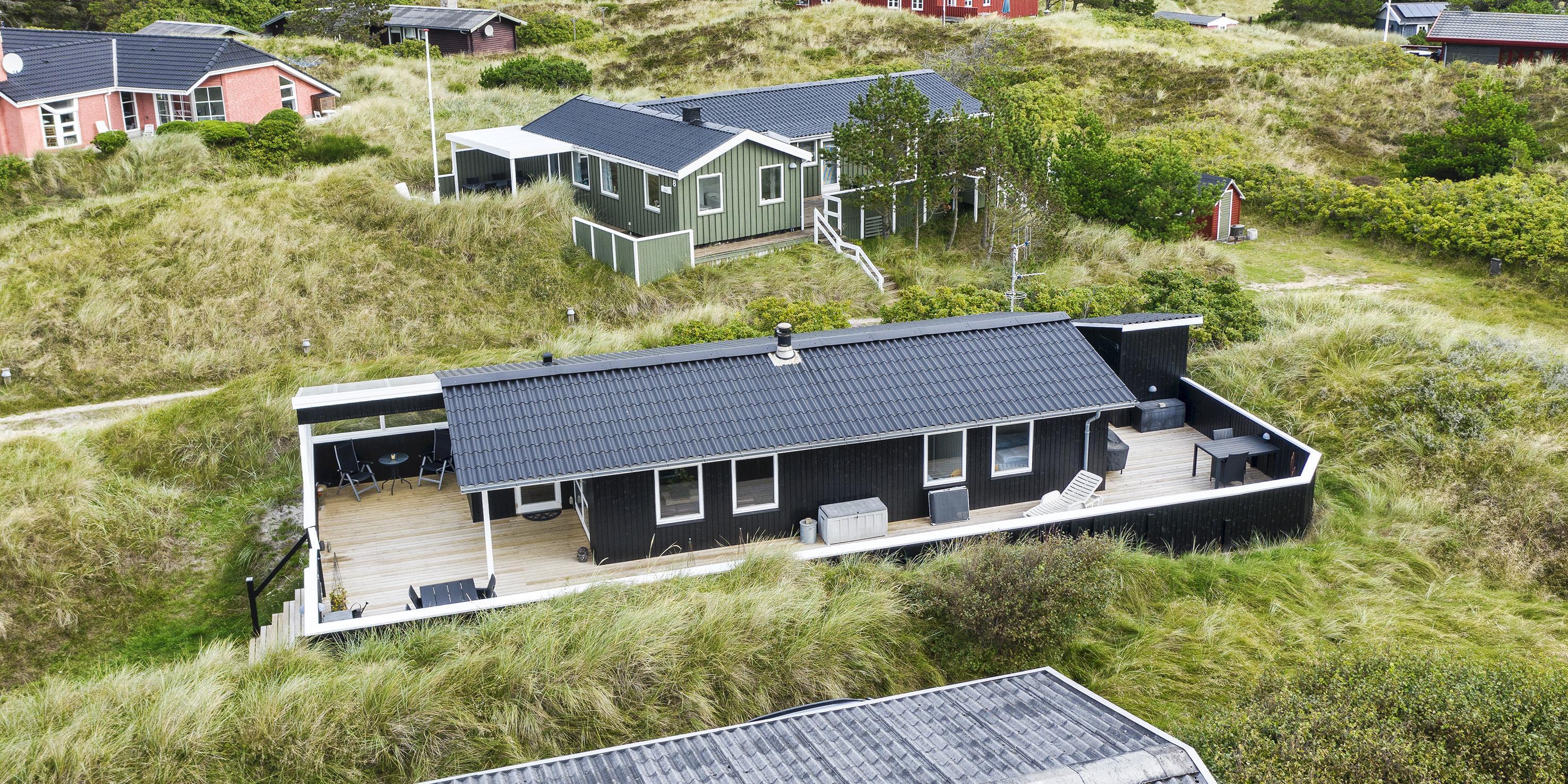 Nydeligt sommerhus til 6 personer, beliggende på klitgrund, ca. 400 meter fra stranden. Stue med varmepumpe, brændeovn, Smart-Tv og parabol og Google Chrom Cast, samt åbent køkken med lille fryser. Badeværelse med bruser/wc og sauna. Vaskemaskine. 3 soveværelser: DS + DS + 2S. 2 soveværelser med hver 1 dobbeltseng og 1 soveværelse med 1 køjeseng. Varmepumpe. Stor lukket terrasse og en del er overdækket. Trådløs Internetadgang. Rygning er ikke tilladt! Byggeår 1989.Inklusiv Golf i Ho i 2026.