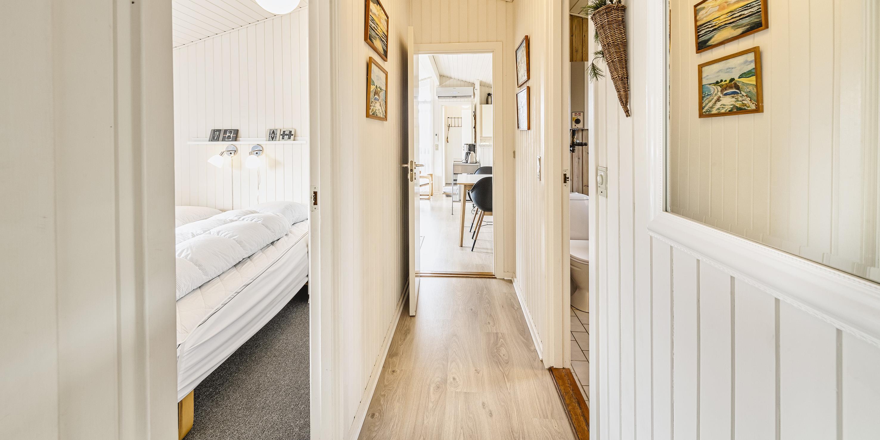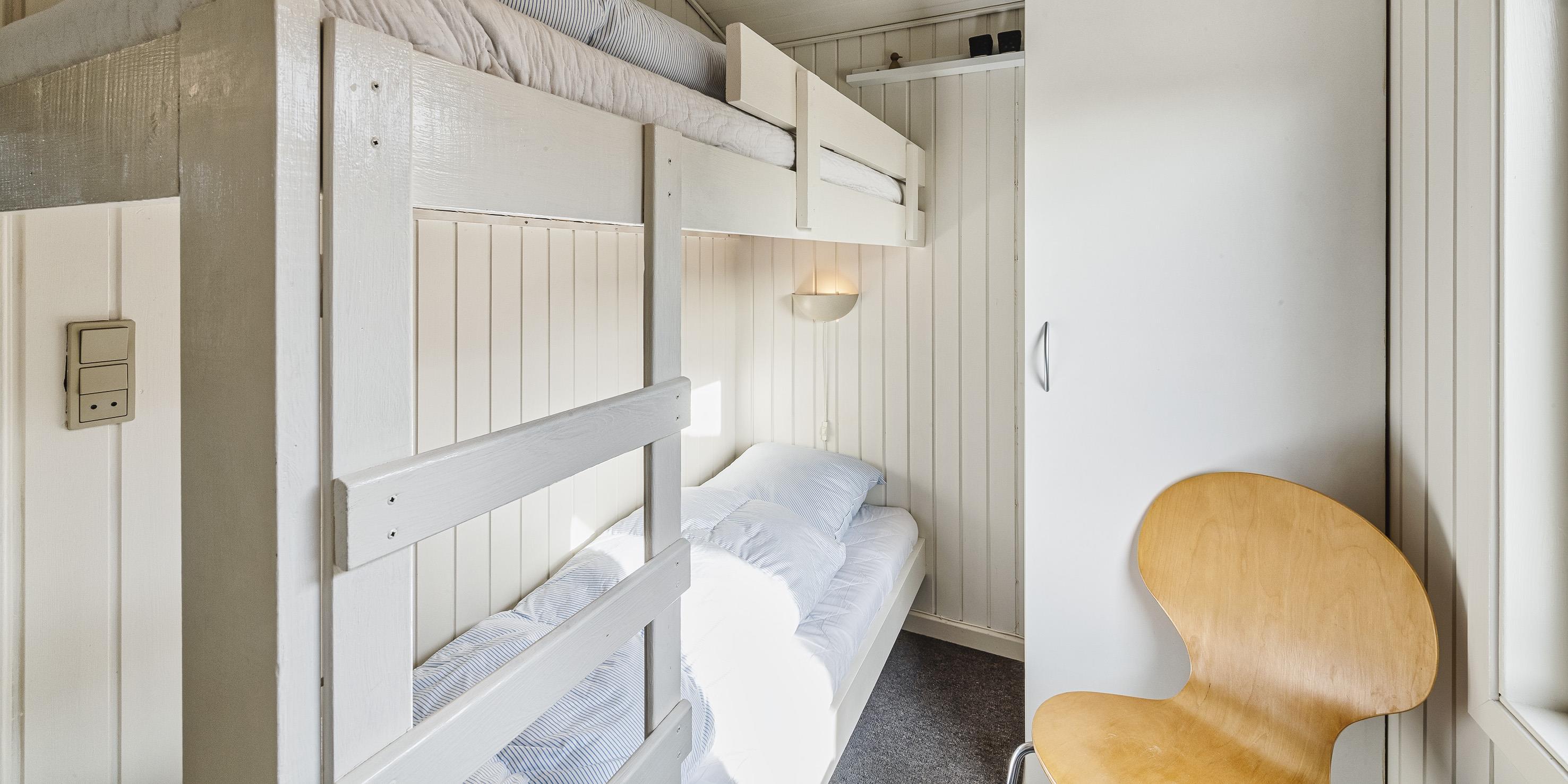 3 soveværelser. 2 med dobbeltseng 180x200 cm. 1 med køjeseng.