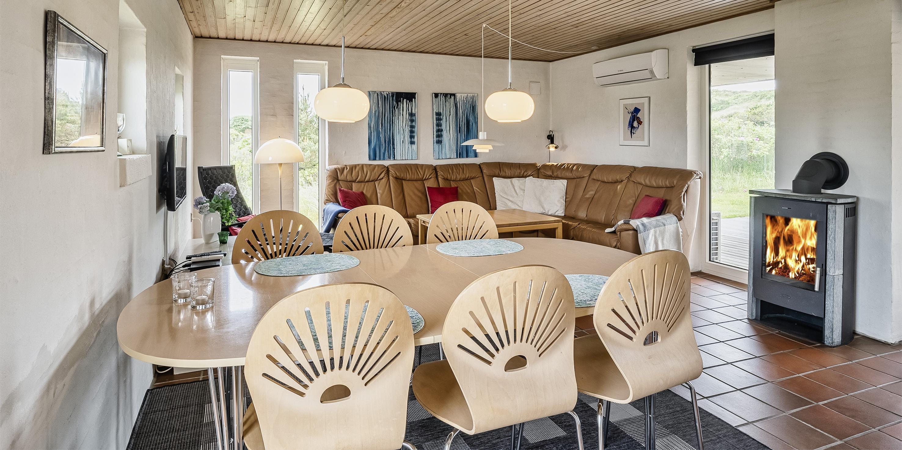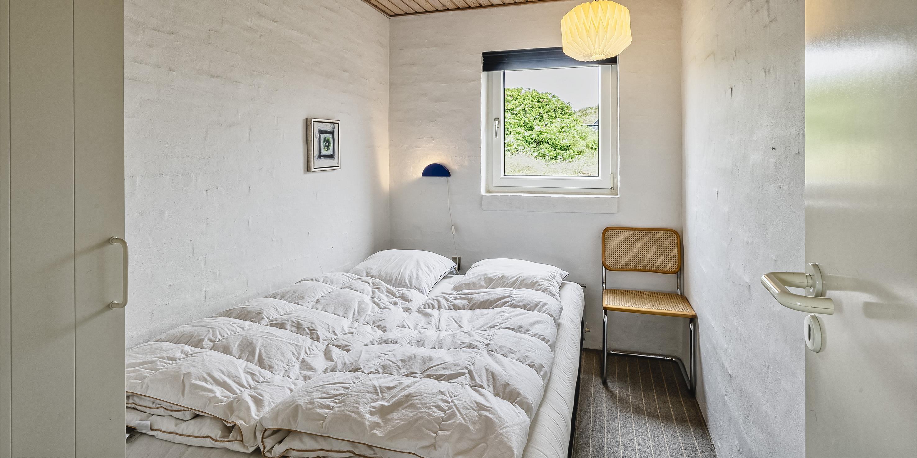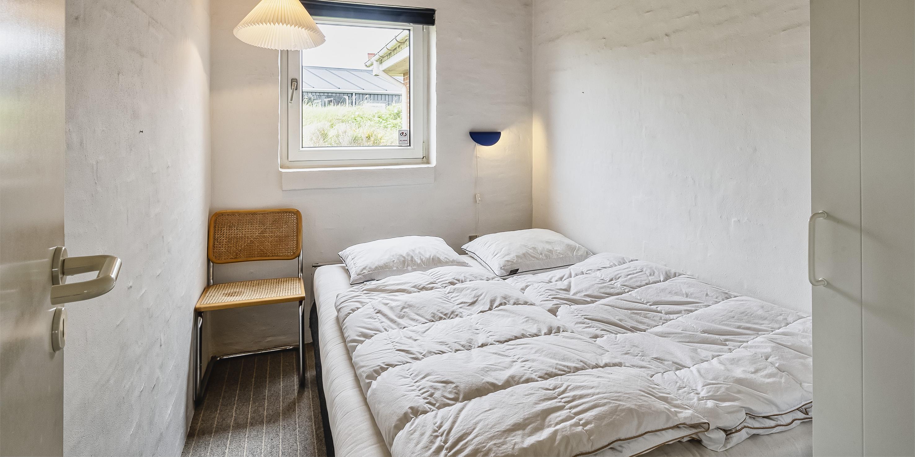 Hyggeligt sommerhus til 4 personer, beliggende på naturskøn klitgrund, ca. 200 meter fra stranden. Stue med brændeovn, fjernsyn og parabol (DR programmer) samt åbent køkken med opvaskemaskine. Trådløs internetadgang. Badeværelse med bruser/wc. Vaskemaskine. 3 soveværelser: DS + DS + DS. 1 soveværelse med 1 dobbeltseng og 2 soveværelser med hver 1 futonseng. Varmepumpe. Carport. For mere info spørg os på kontoret. Gratis adgang til badeland og bowling i Varde i 2026. Rygning er ikke tilladt. Byggeår 1988.