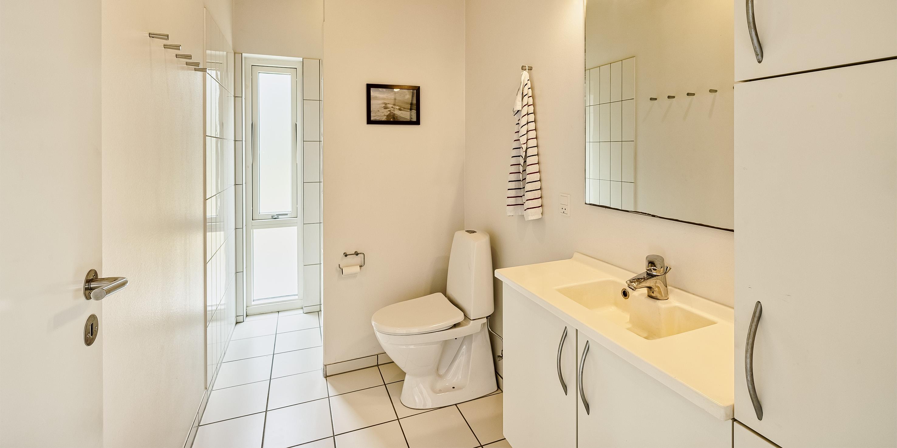 Bad med toilet, bruser og vask