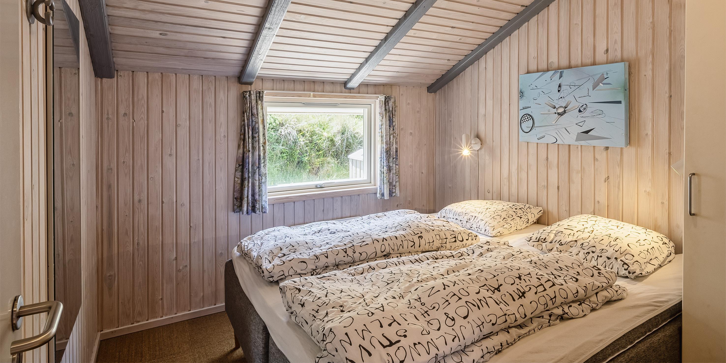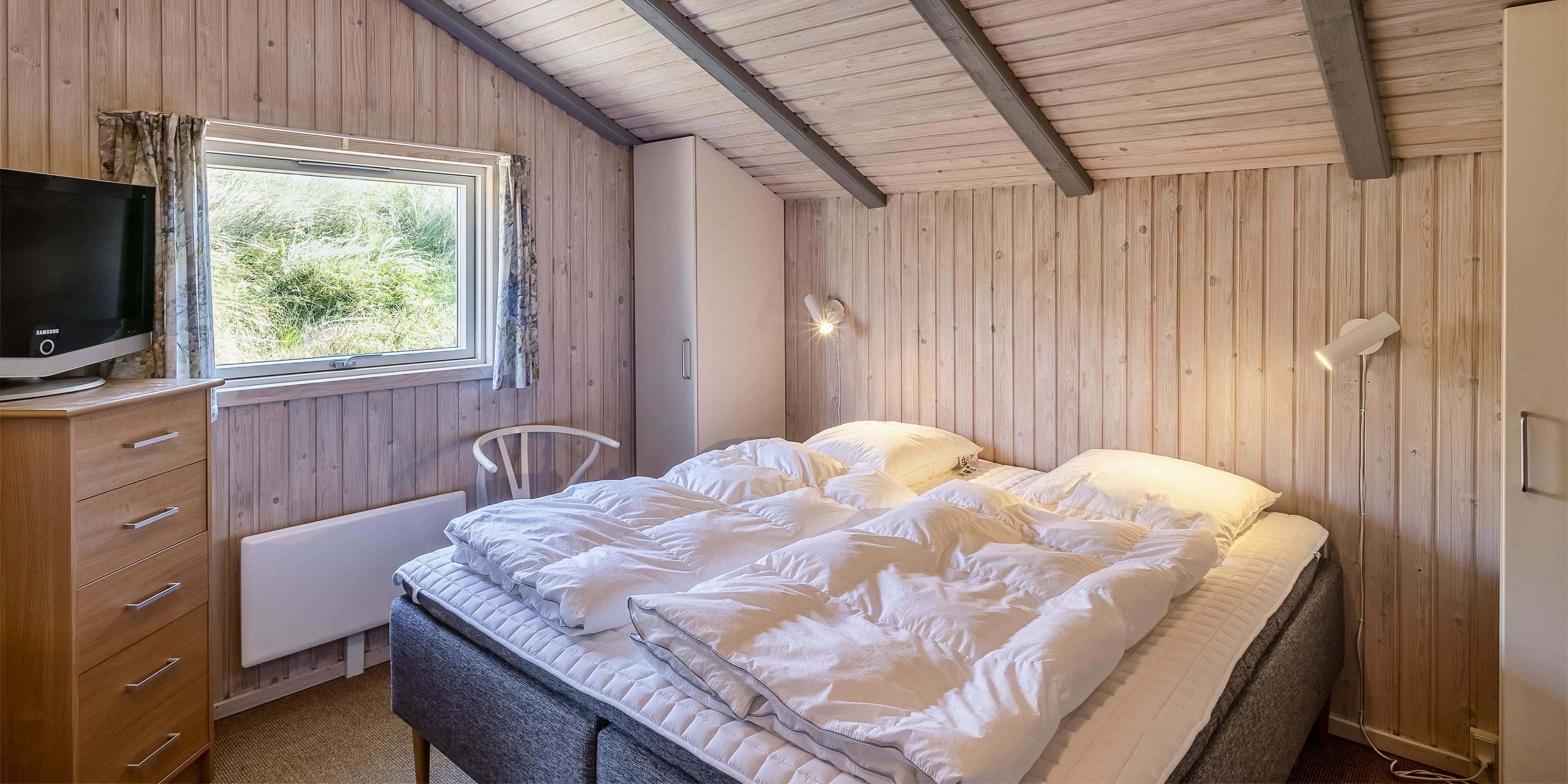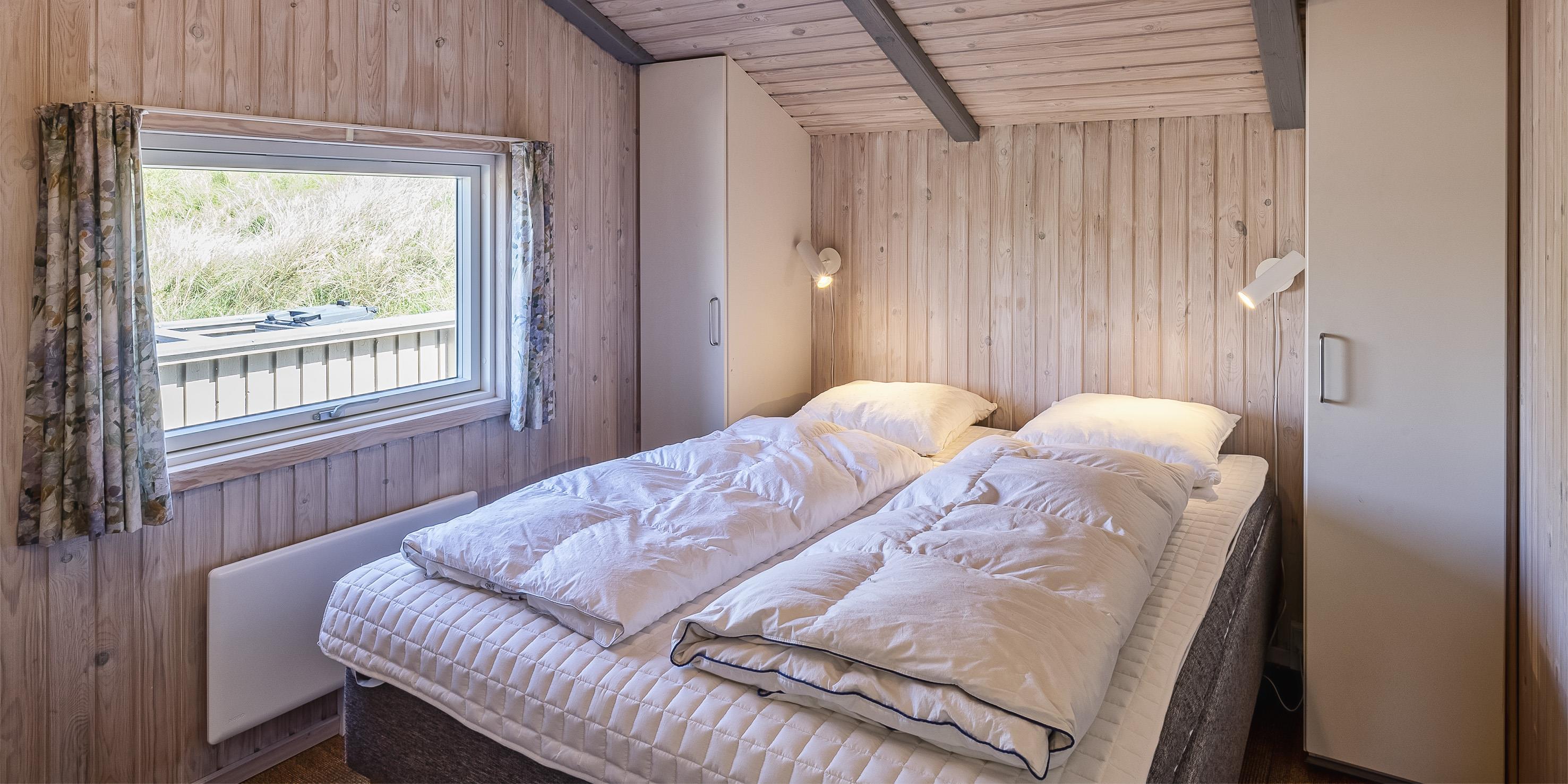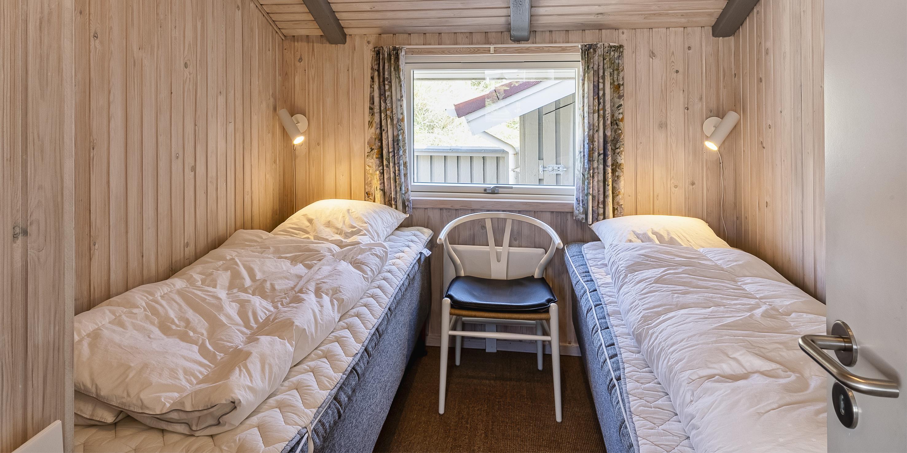Sommerhuset har tre komfortable soveværelser med dobbeltsenge (DS+DS+DS) og et soveværelse med to enkeltsenge (2ES).