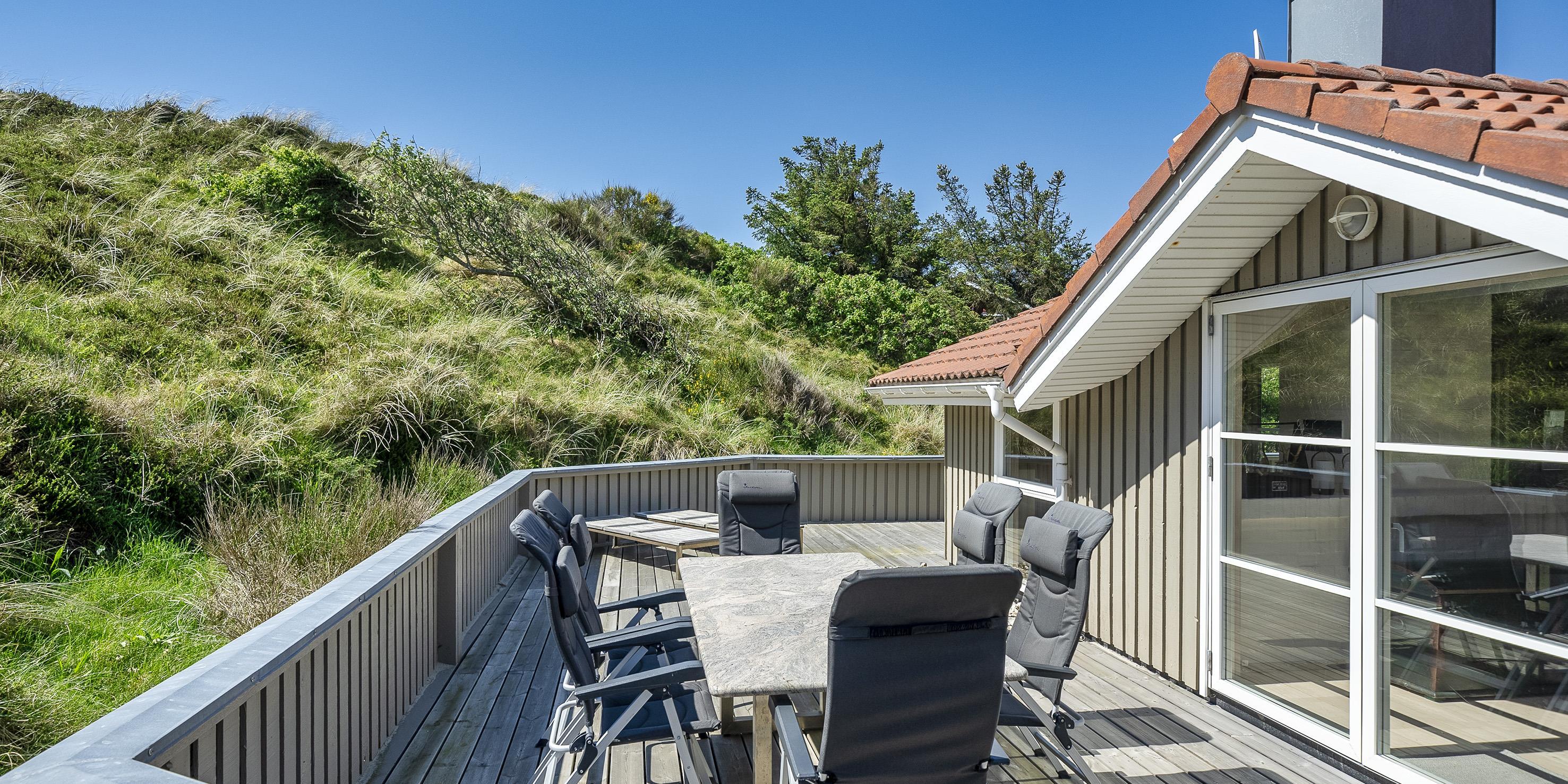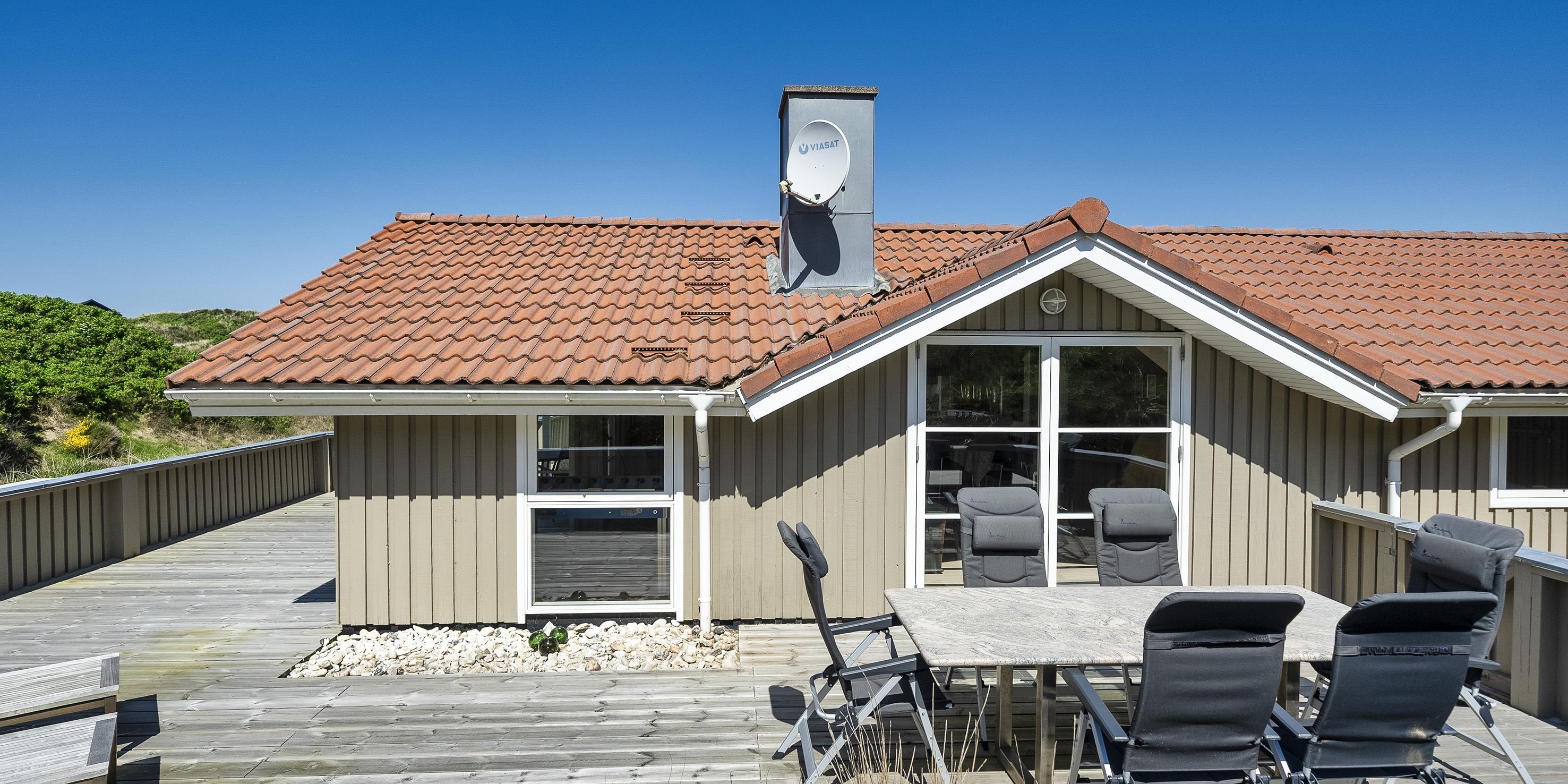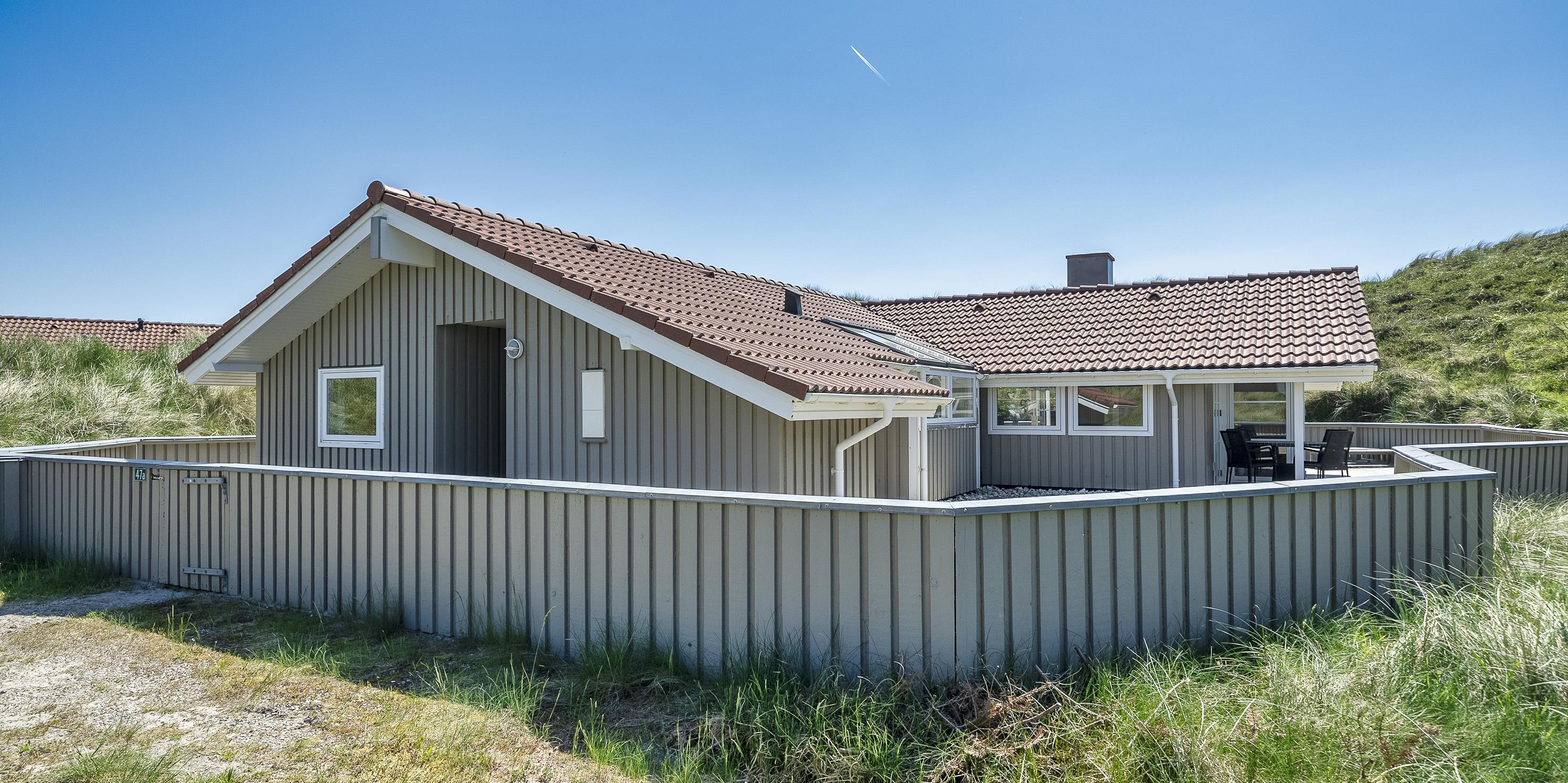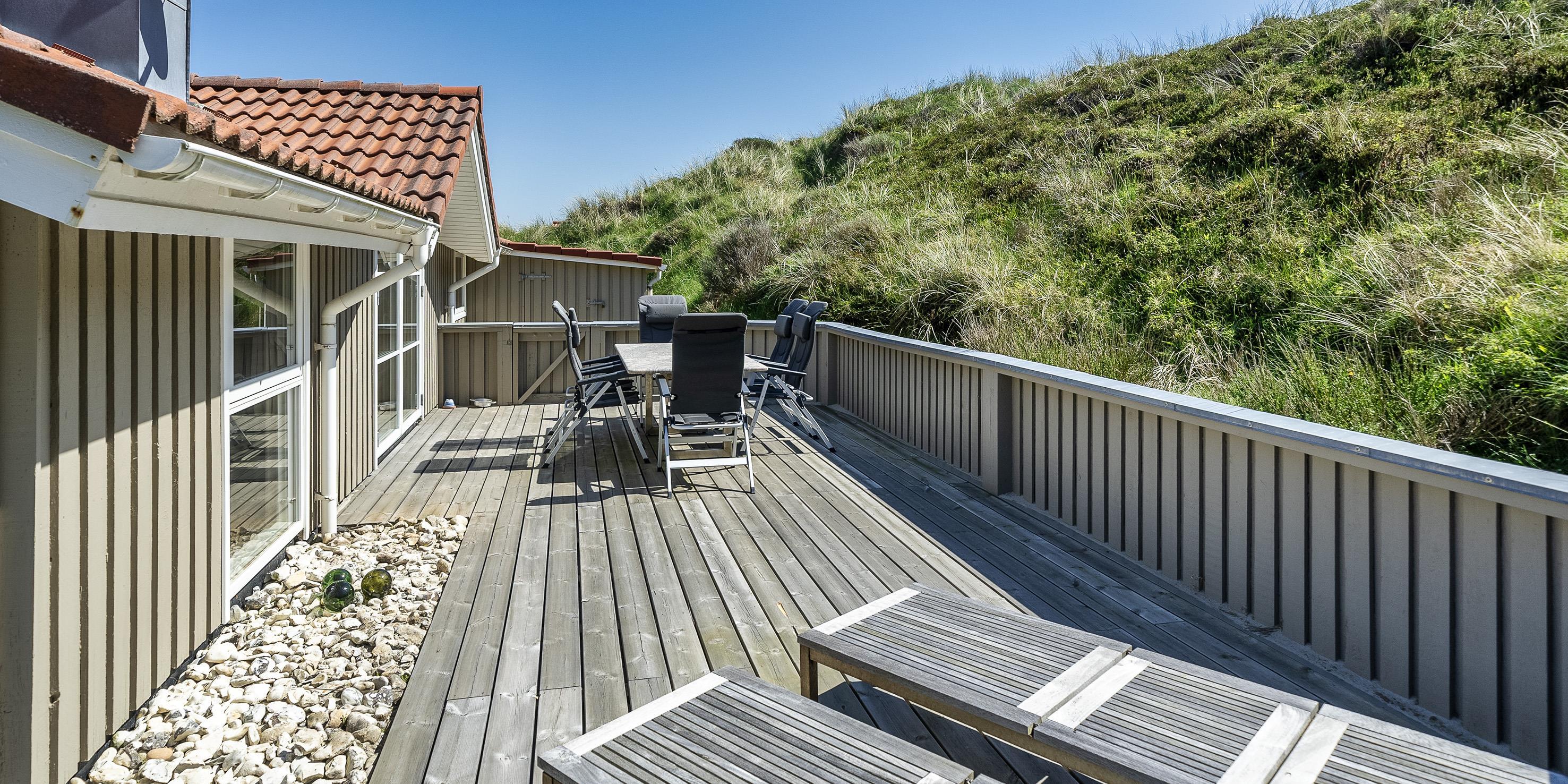Hyggeligt sommerhus til 8 personer, beliggende på en dejlig, ugeneret naturgrund med klitter og marhalm, kun ca. 150 meter fra den skønne hvide sandstrand ved Vejers Strand og ca. 400 meter fra byens indkøbsmuligheder og hyggelige restauranter.