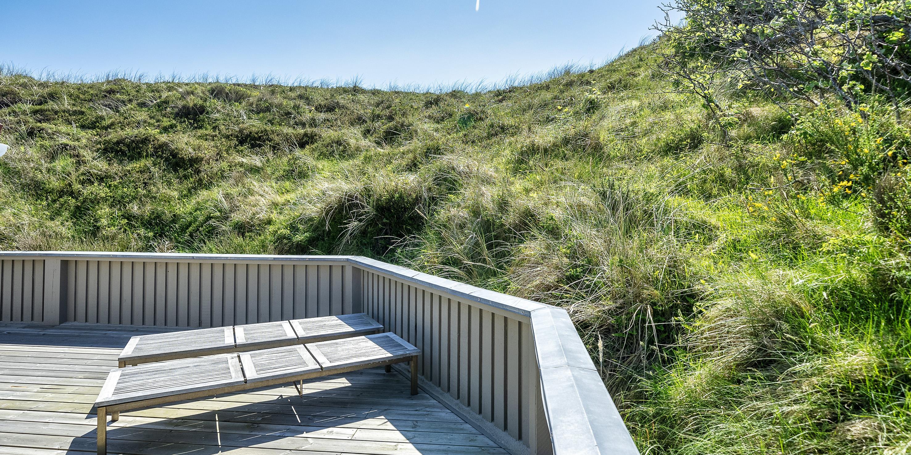 Beliggende på en ugeneret naturgrund med klitter og marhalm