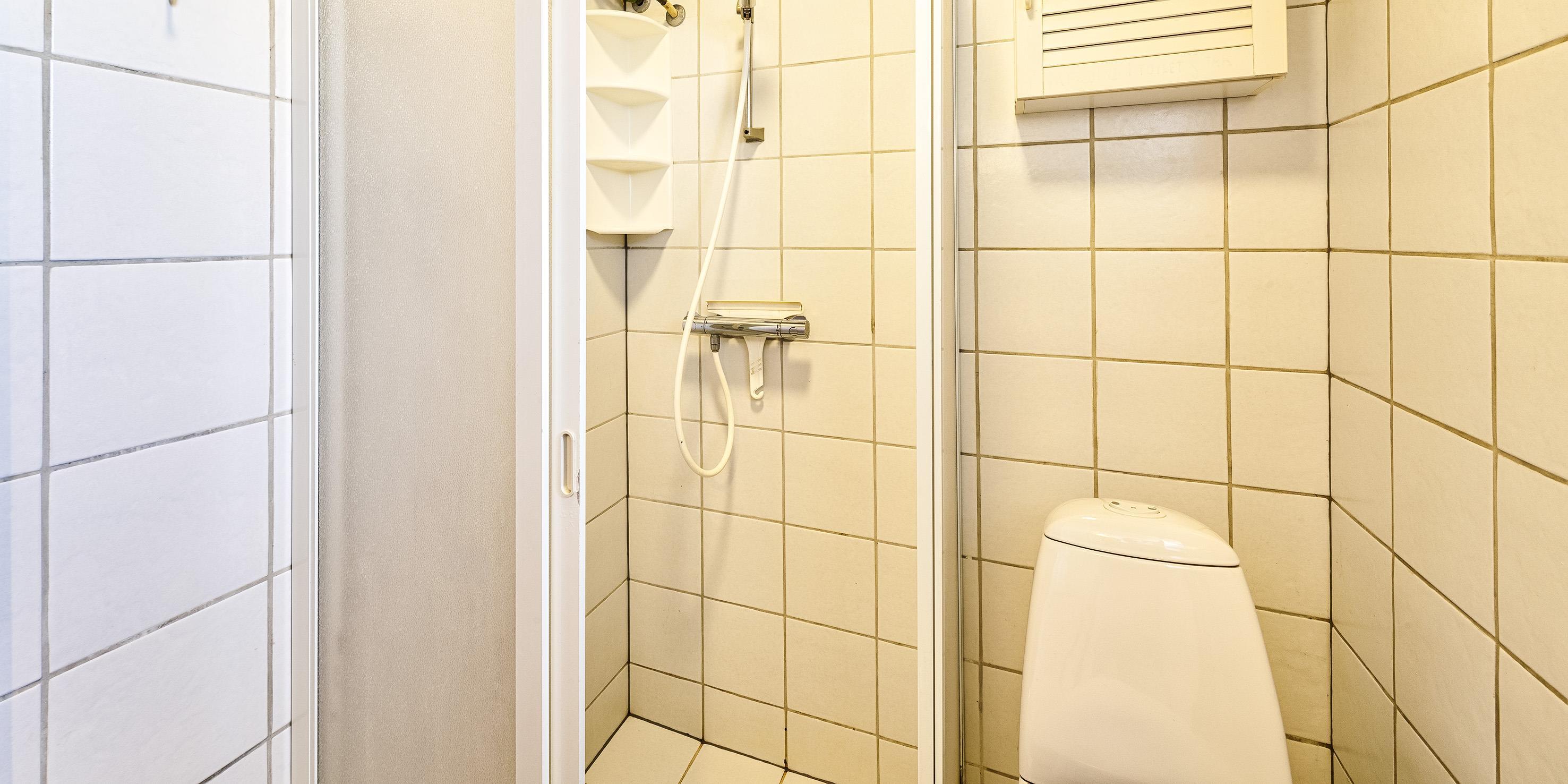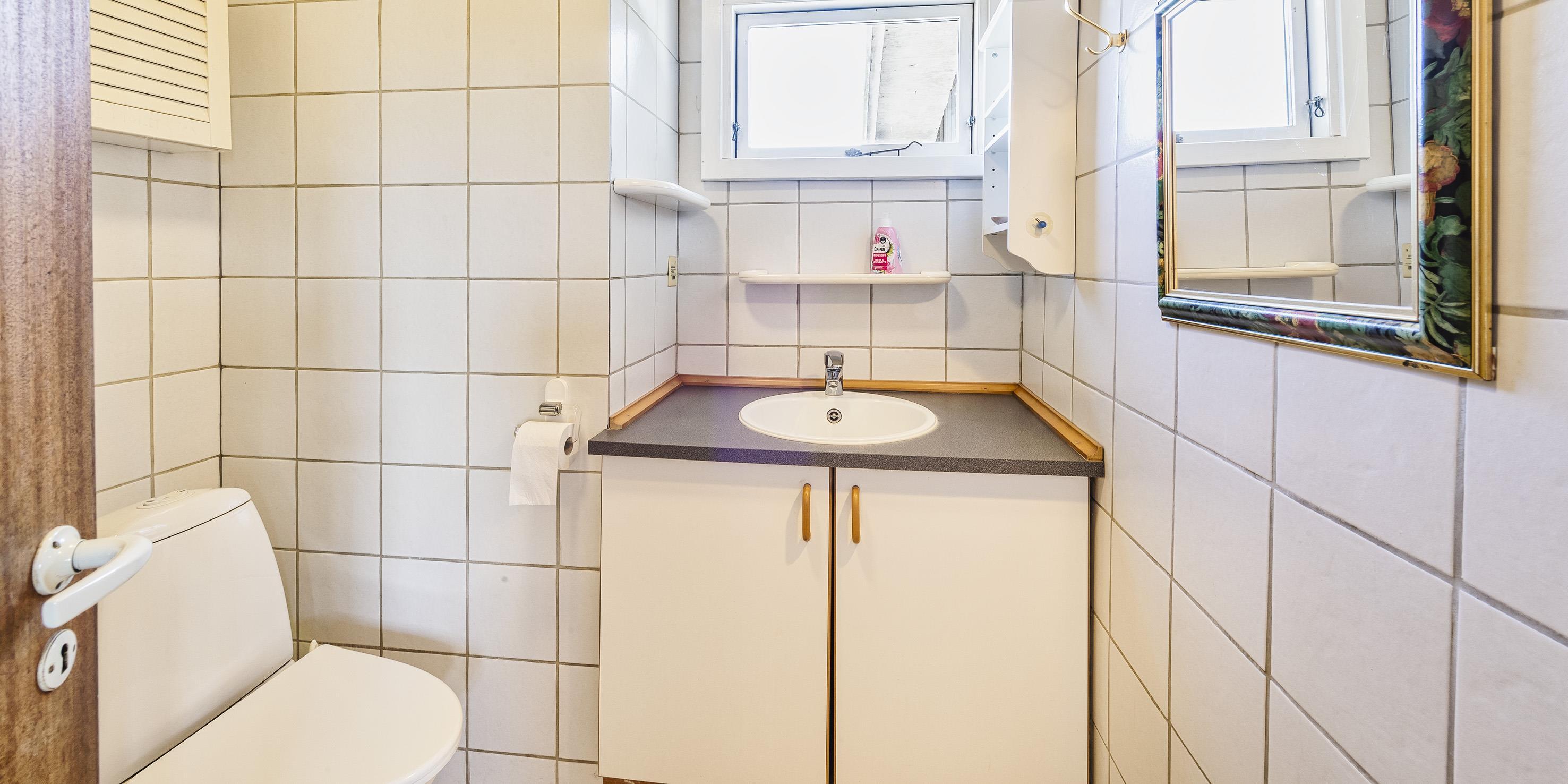 Bad med toilet, bruser og vask
