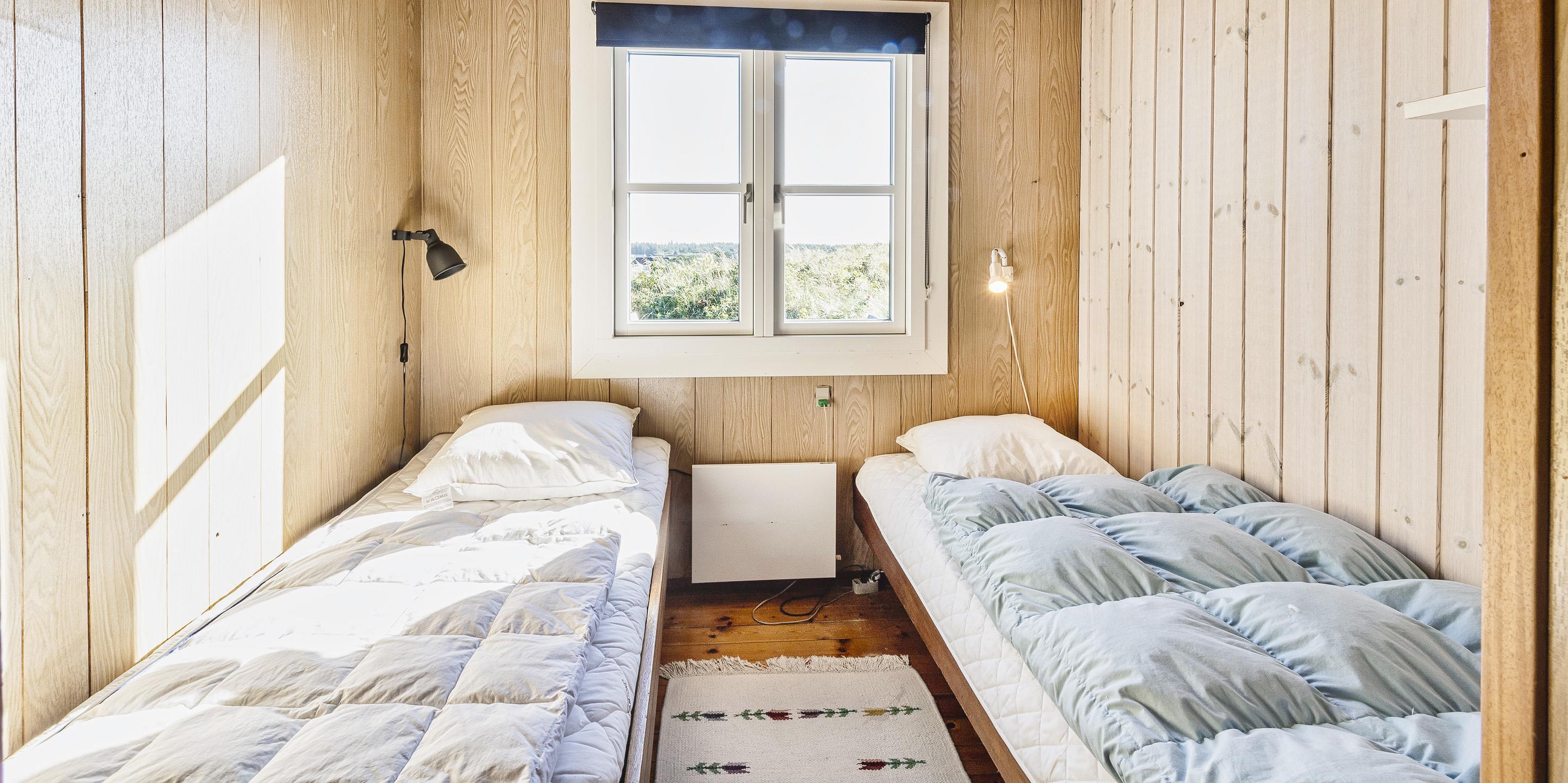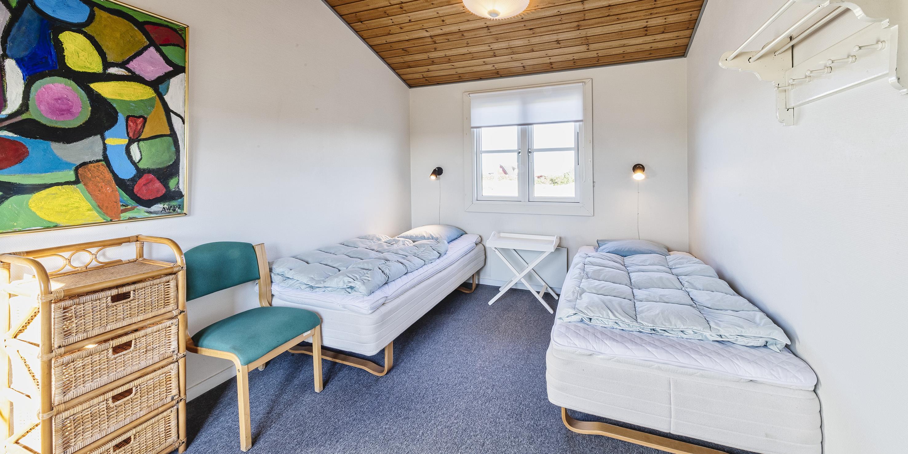 4 soveværelser. 1 med 1 enkeltseng. 3 med 2 enkeltsenge (á 90x200 cm)