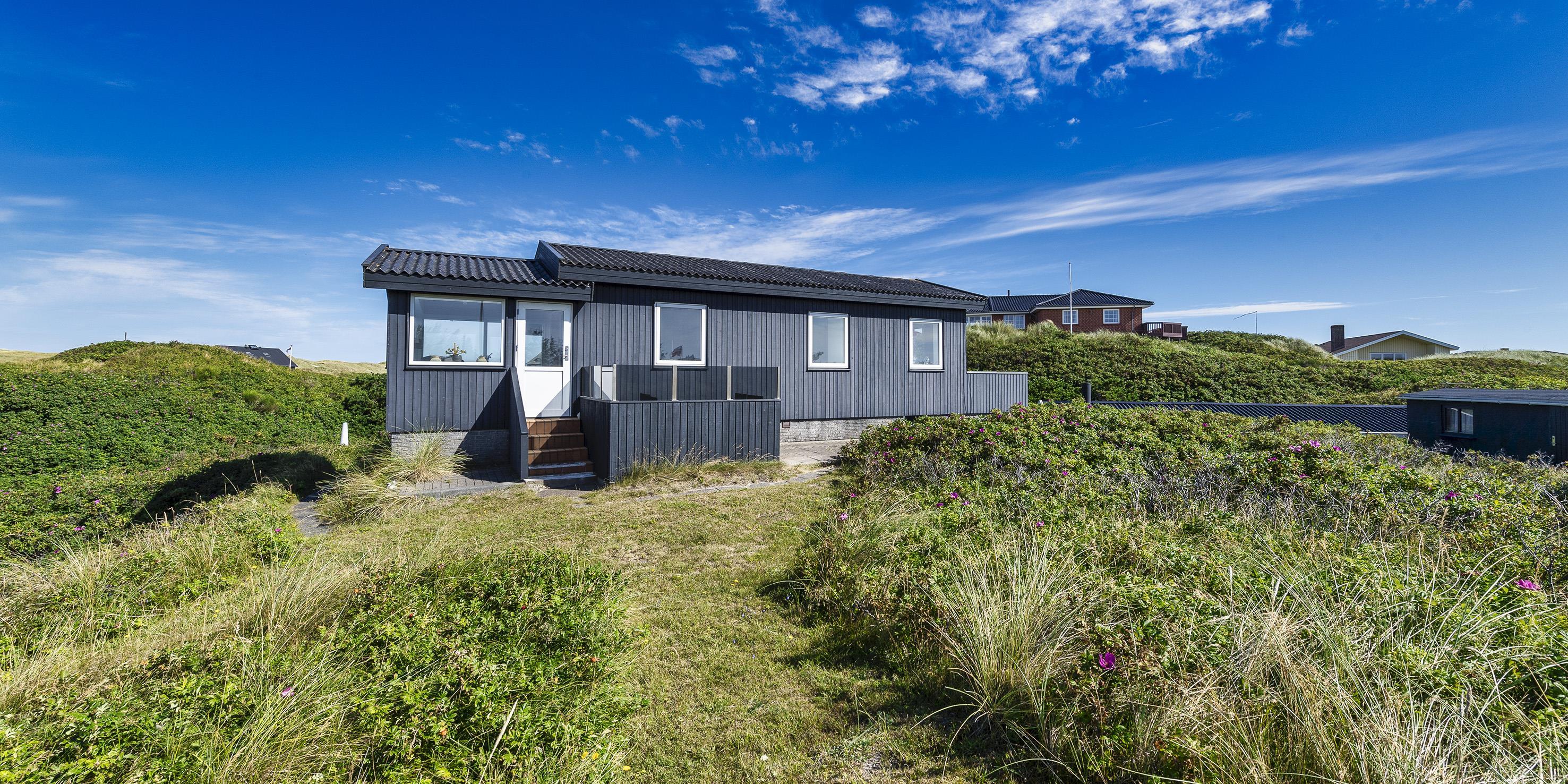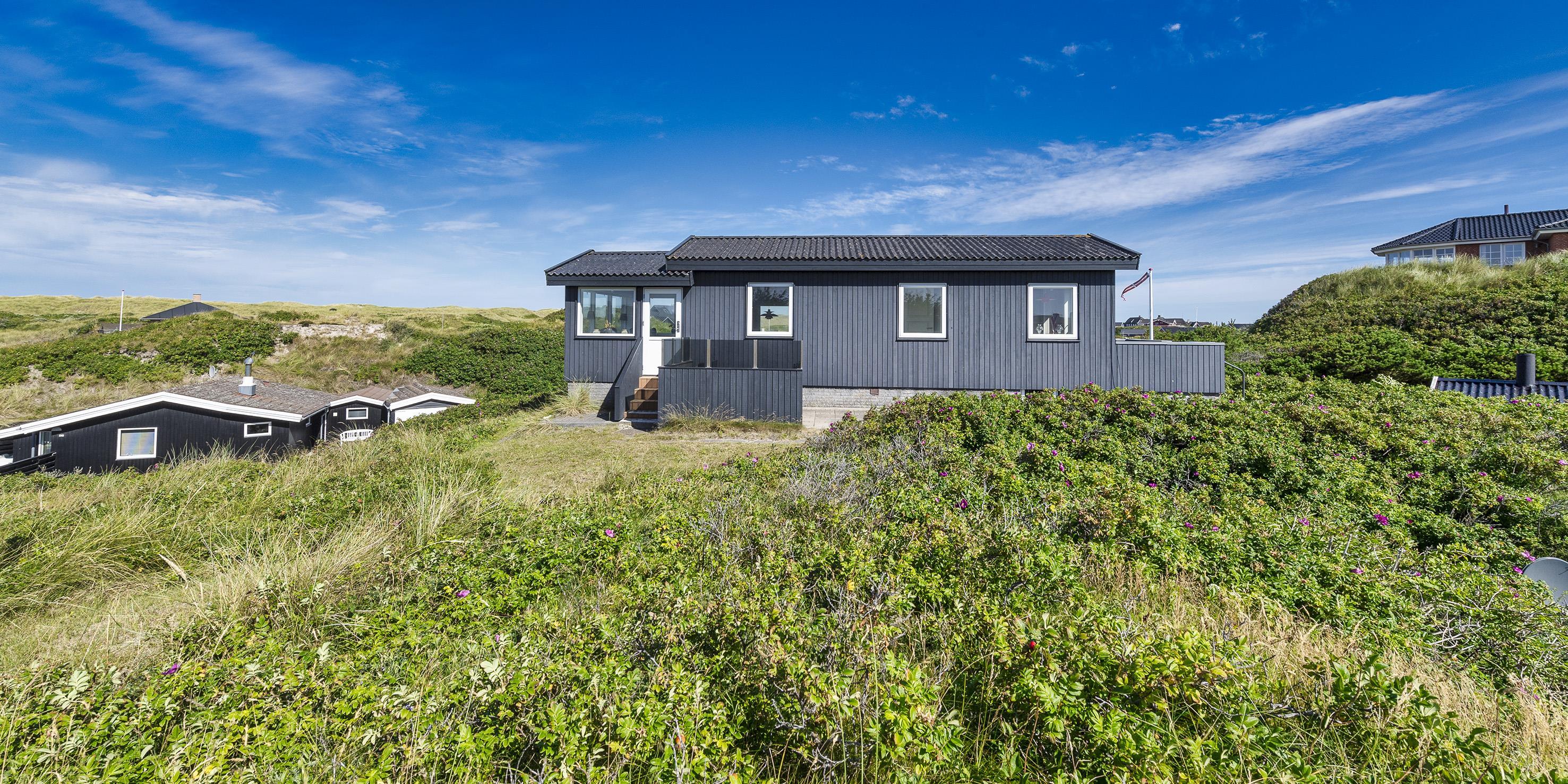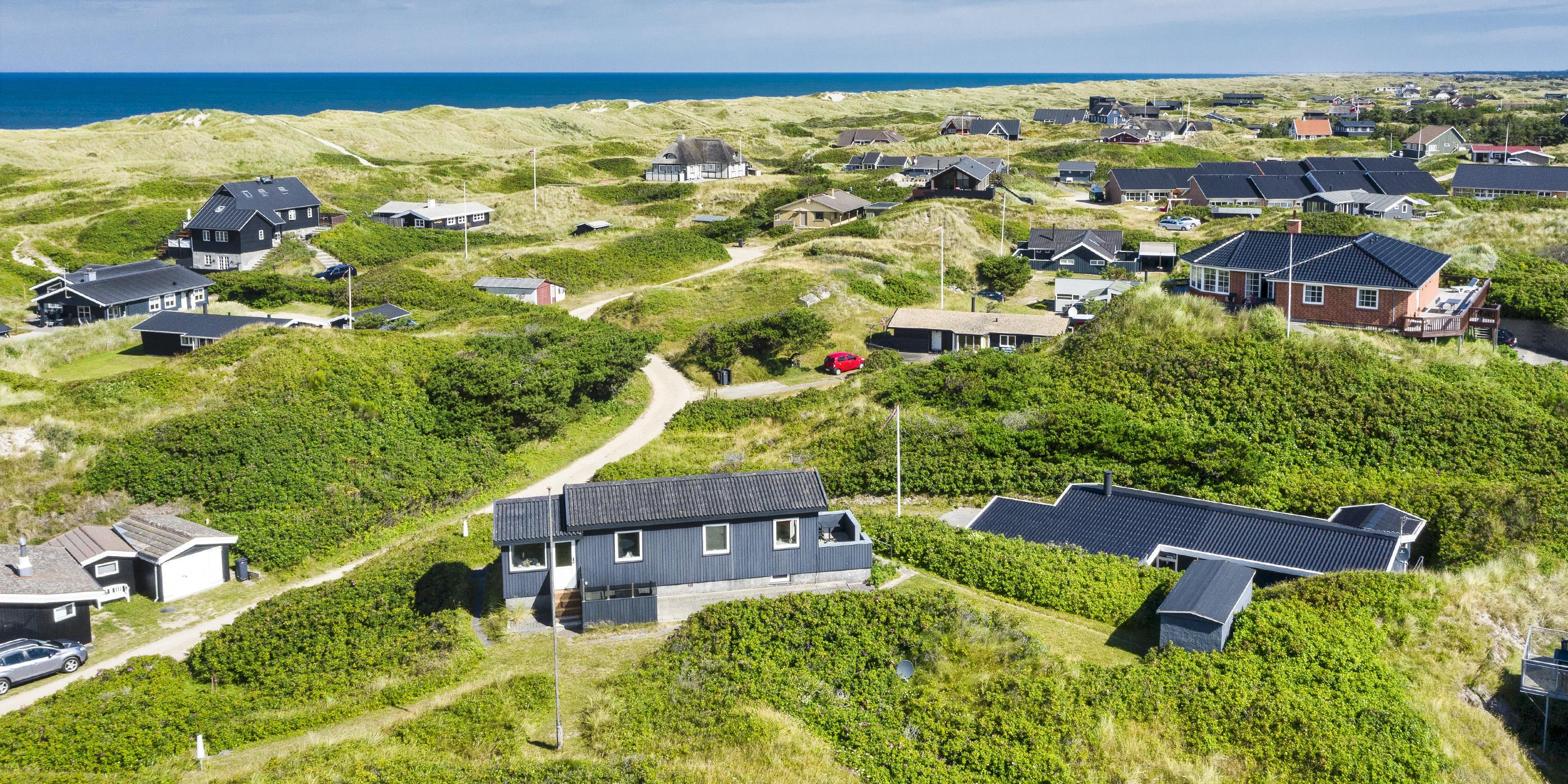 Fuldstændig ugeneret sommerhus til 2 Vejers fan, beliggende på en højtbeliggende klitgrund ca. 150 meter fra stranden med havudsigt. Køkken med opvaskemaskine, ovn, induktions kogeplade og køle-/ fryseskab. 1 soveværelse: 2S. Badeværelse med bruser/wc (uden varmekilde). Hyggelig stue i åben forbindelse med havestue hvorfra der er havudsigt. Stuen indeholder fjernsyn med parabol og varmepumpe (ingen danske programmer). Trådløs internetadgang. Flere læ kroge som terrasse omkring huset. Stor garage, samt depot hus, med mulighed for at stille cykler ind. Husdyr er ikke tilladt - med undtagelse af én lille hund. Rygning er ikke tilladt. Byggeår 1937, renoveret 2016.