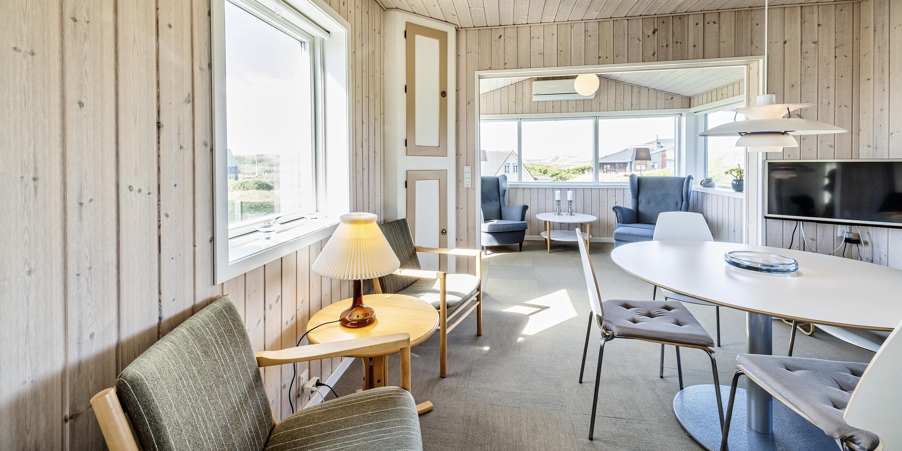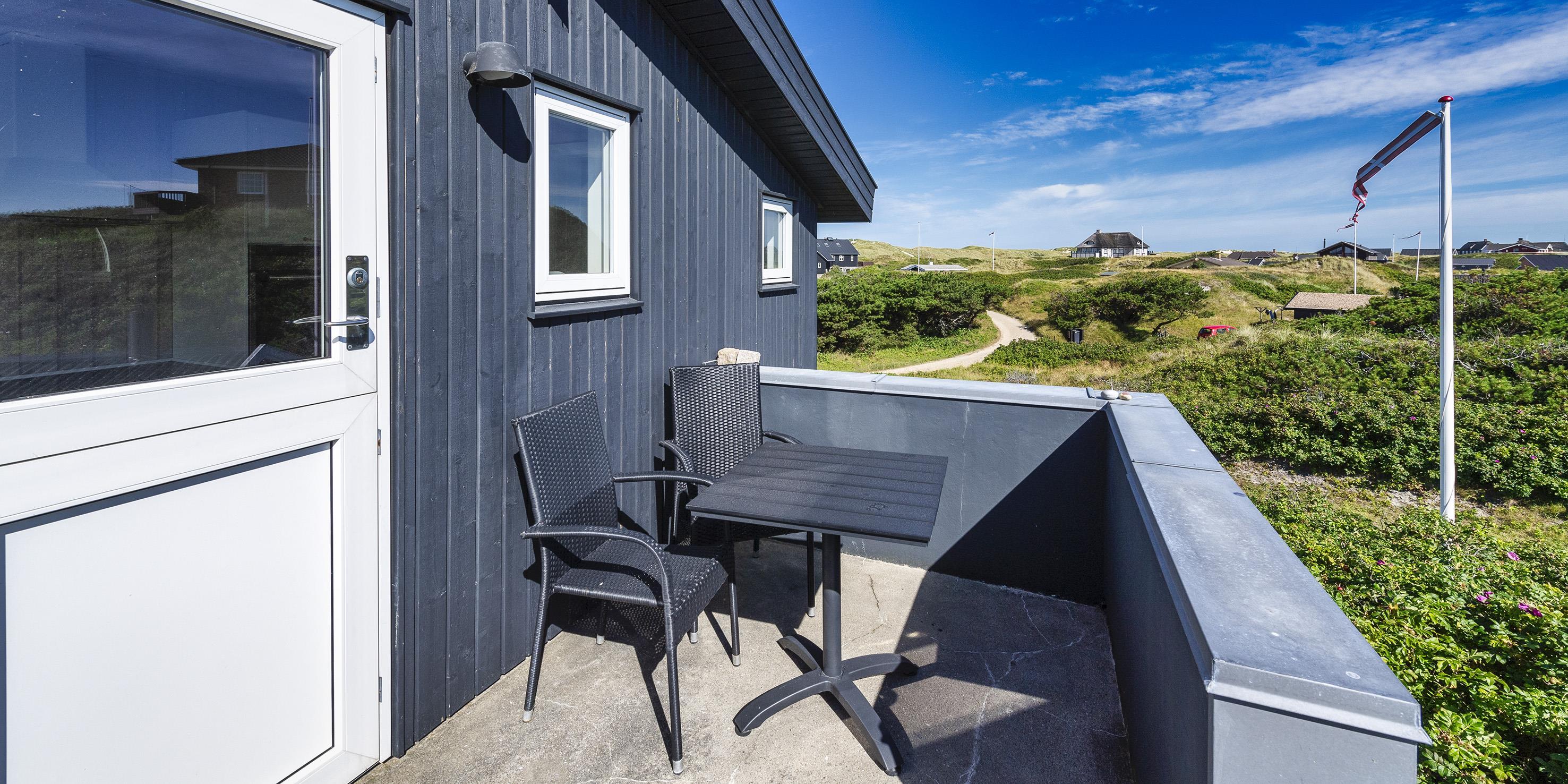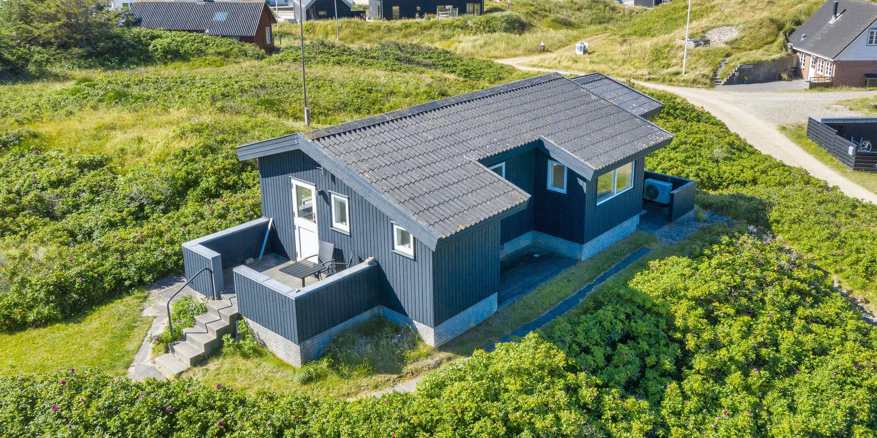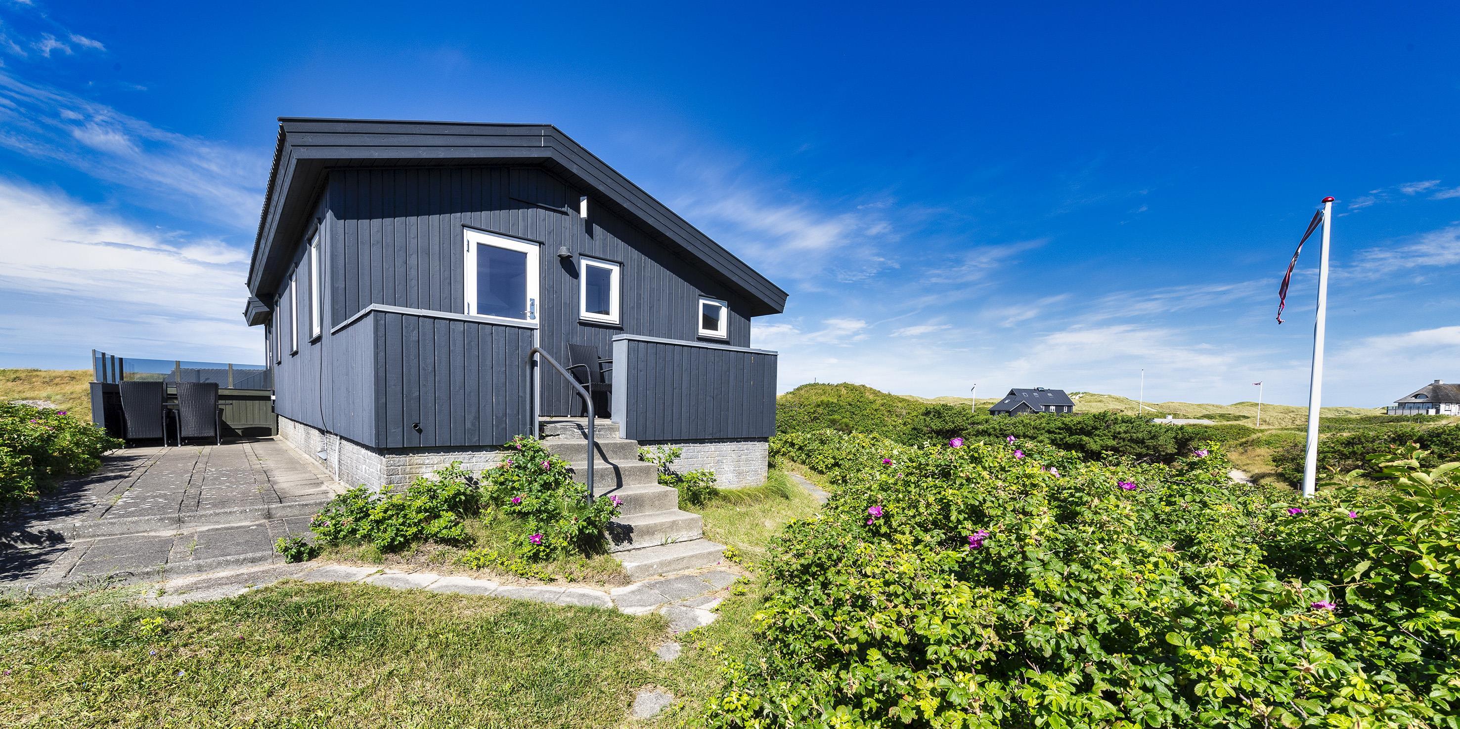 Fuldstændig ugeneret sommerhus til 2 Vejers fan, beliggende på en højtbeliggende klitgrund ca. 150 meter fra stranden med havudsigt. Køkken med opvaskemaskine, ovn, induktions kogeplade og køle-/ fryseskab. 1 soveværelse: 2S. Badeværelse med bruser/wc (uden varmekilde). Hyggelig stue i åben forbindelse med havestue hvorfra der er havudsigt. Stuen indeholder fjernsyn med parabol og varmepumpe (ingen danske programmer). Trådløs internetadgang. Flere læ kroge som terrasse omkring huset. Stor garage, samt depot hus, med mulighed for at stille cykler ind. Husdyr er ikke tilladt - med undtagelse af én lille hund. Rygning er ikke tilladt. Byggeår 1937, renoveret 2016.