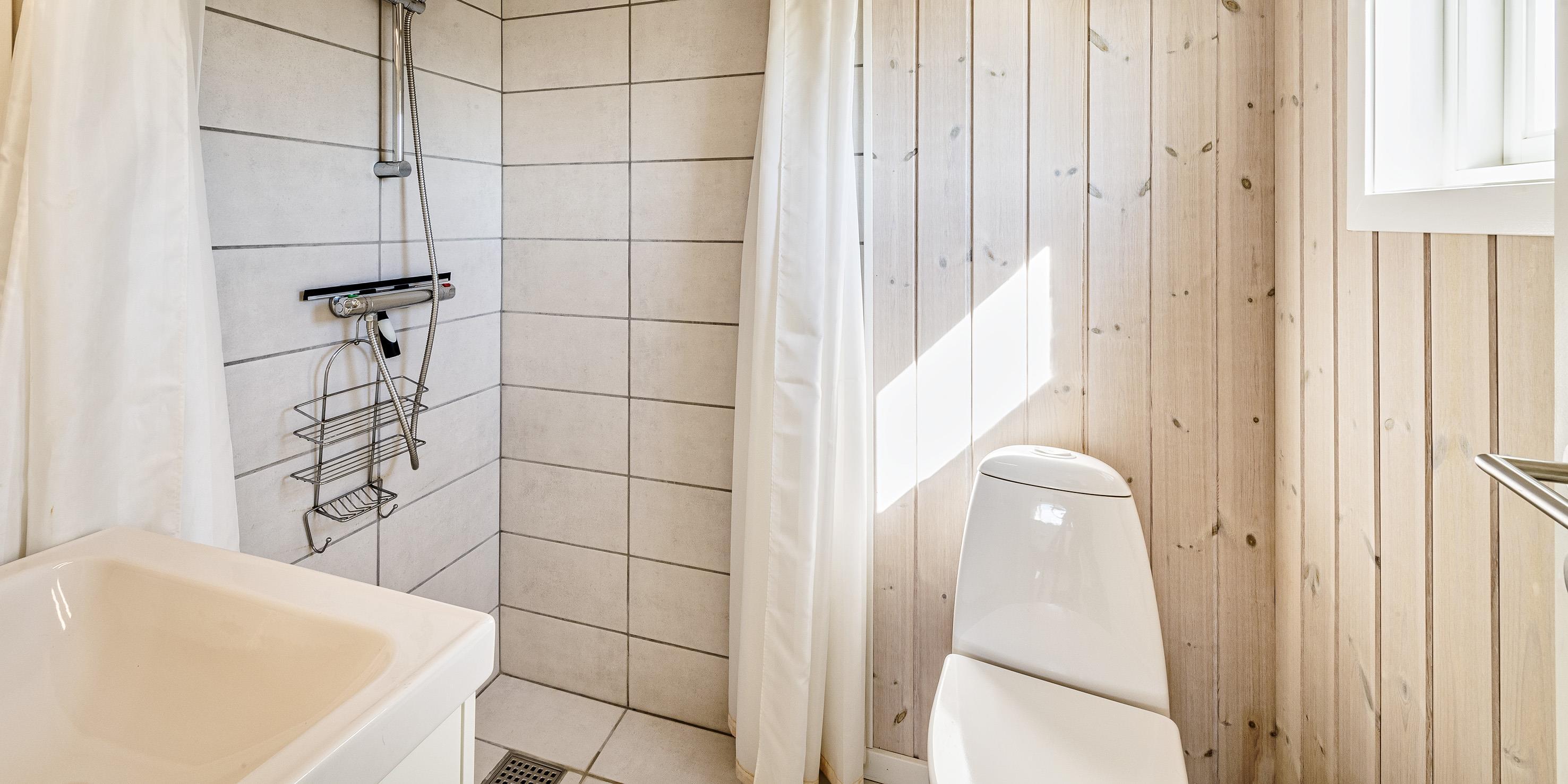 Bad med toilet, bruser og vask