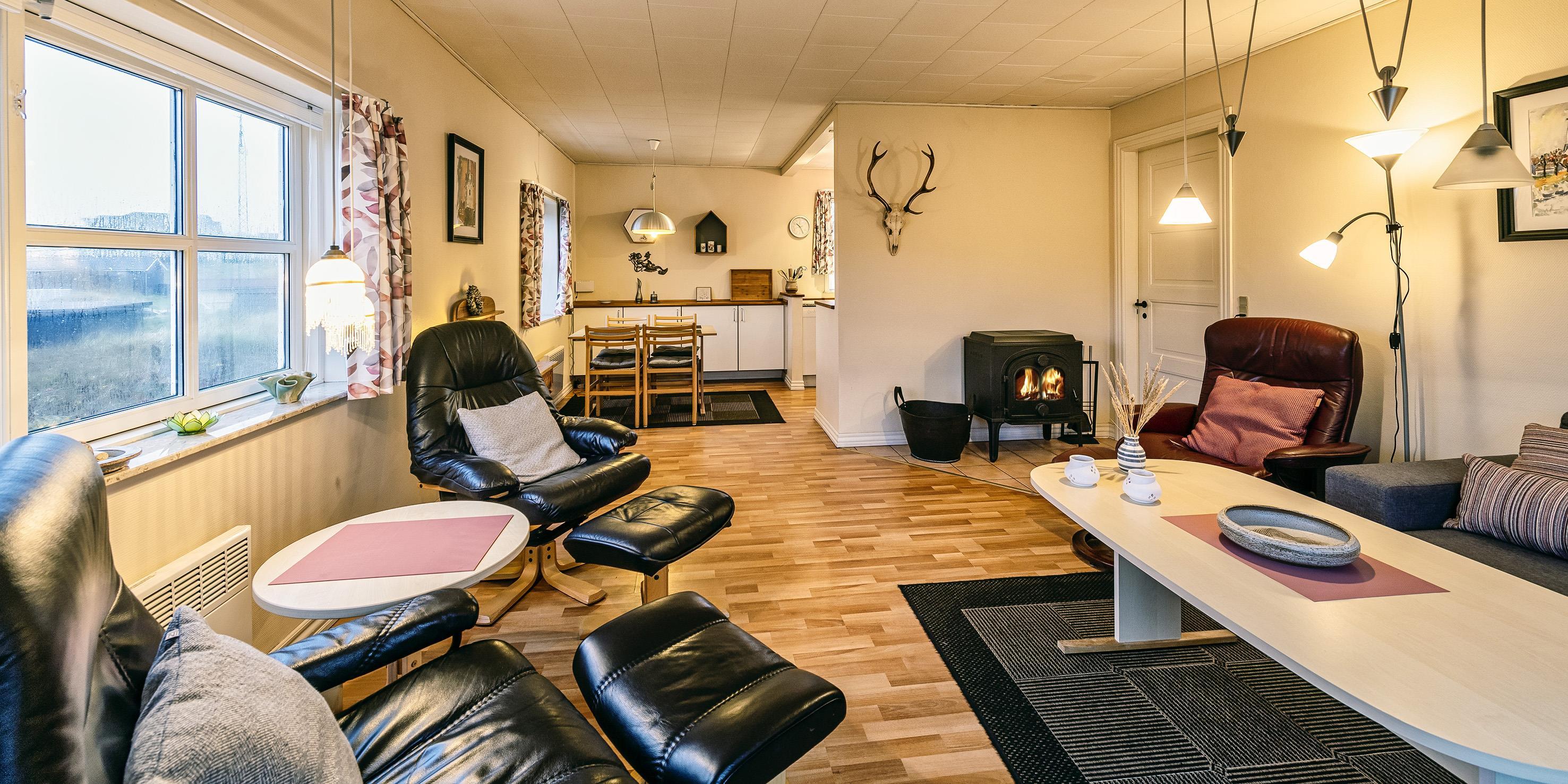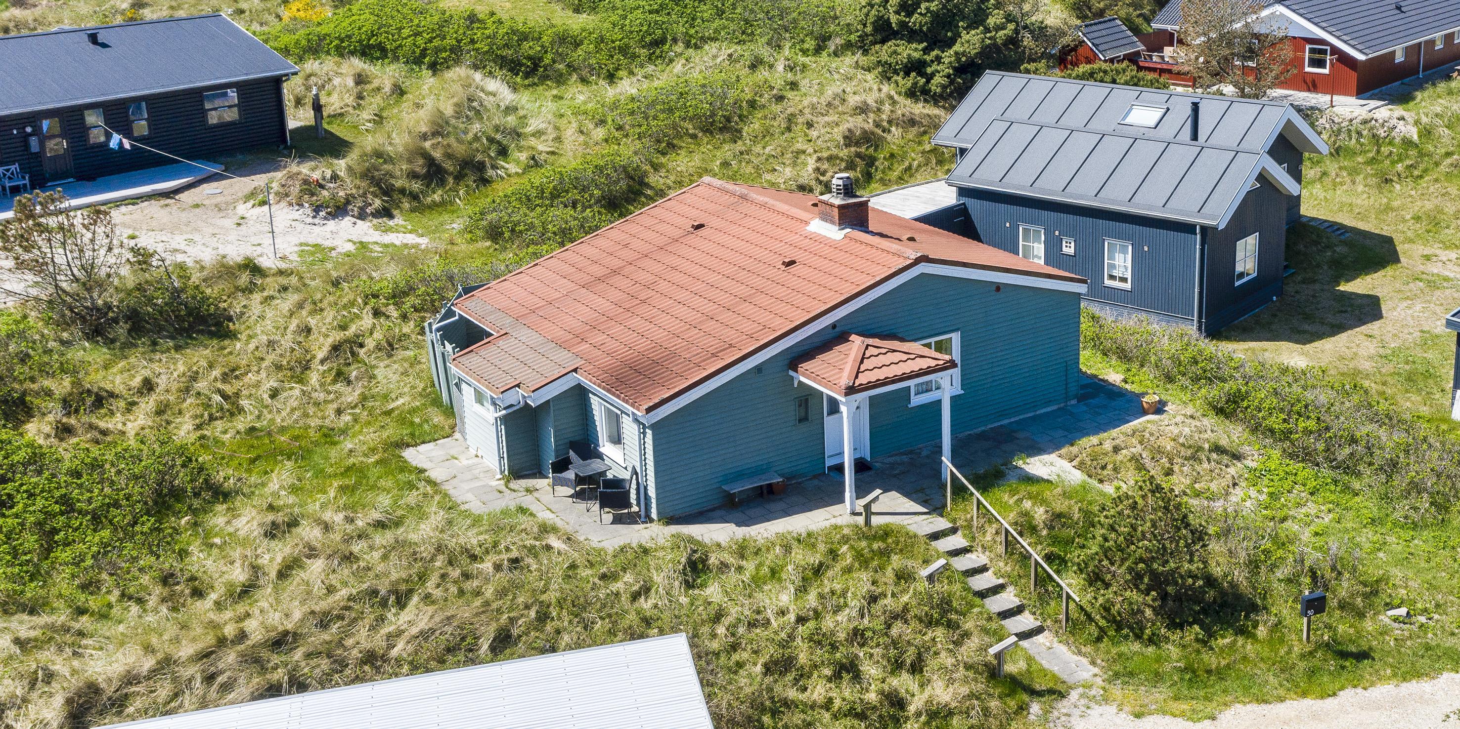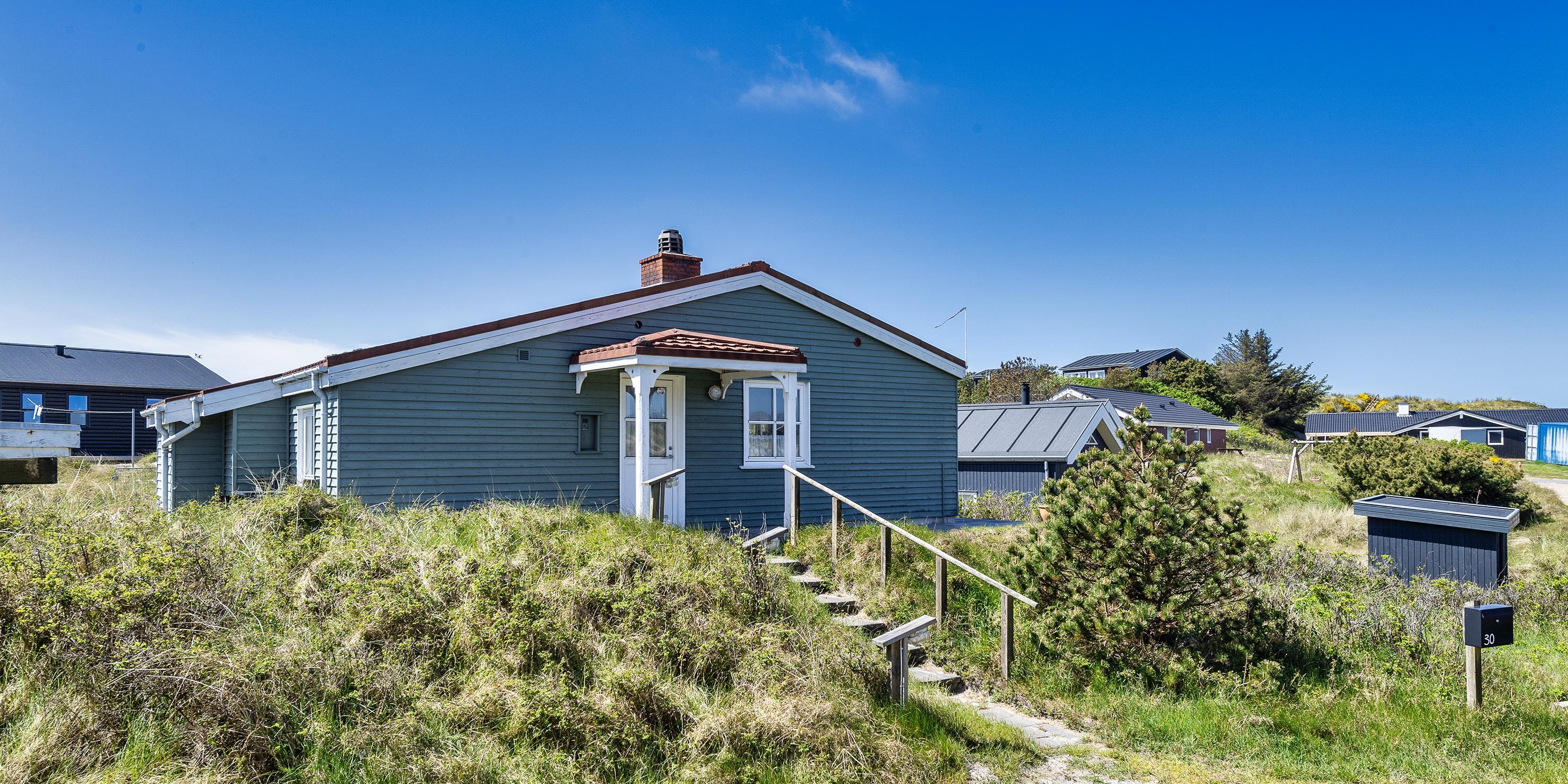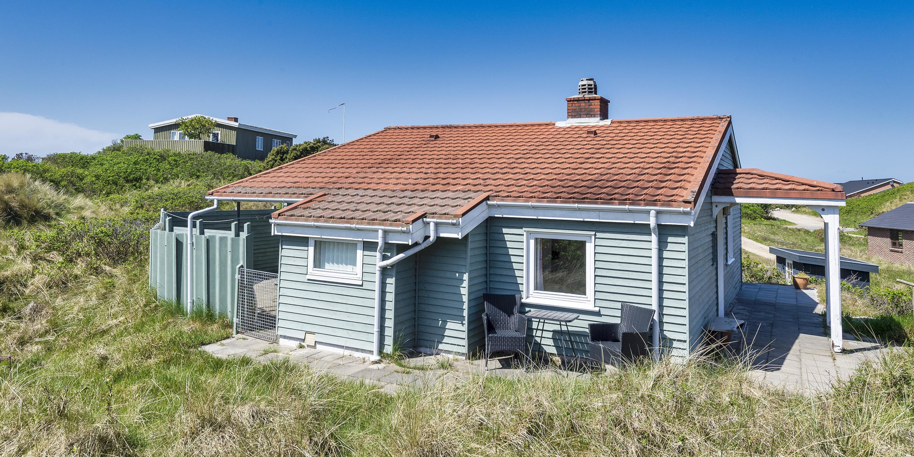 Smagfuldt sommerhus til 4 personer, beliggende på en klitgrund, ca. 200 meter fra stranden. Stue med brændeovn, fjernsyn og parabol (ingen danske programmer). Varmepumpe. Separat køkken med opvaskemaskine, mikroovn og køle-/frysekombination. 2 soveværelser: DS + 2S. Badeværelse med bruser/wc. Internet adgang (trådløs). Vaskemaskine og tørretumbler. Varmepumpe. Delvis lukket terrasse og carport. Rygning er ikke tilladt. Byggeår 1957, renoveret 2002.