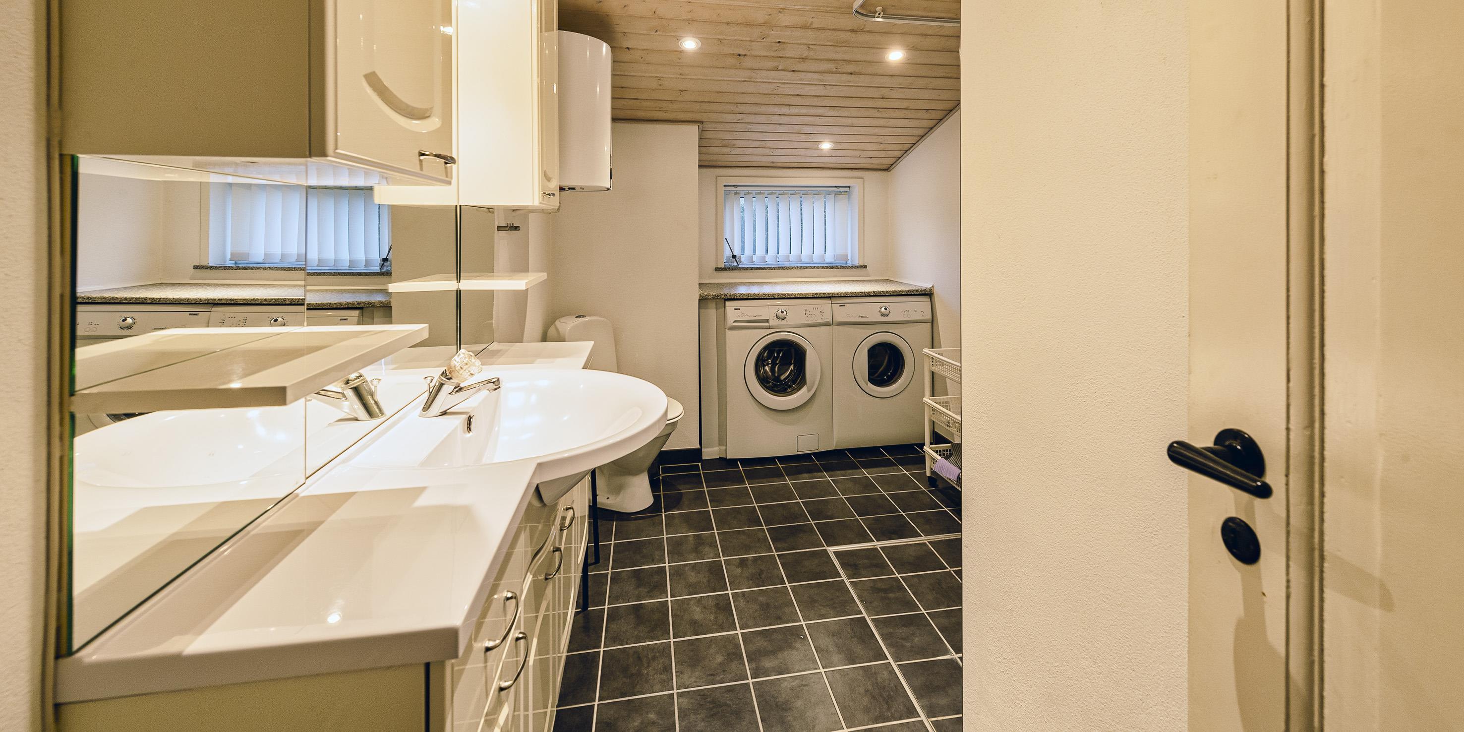 Bad med toilet, bruser og vask