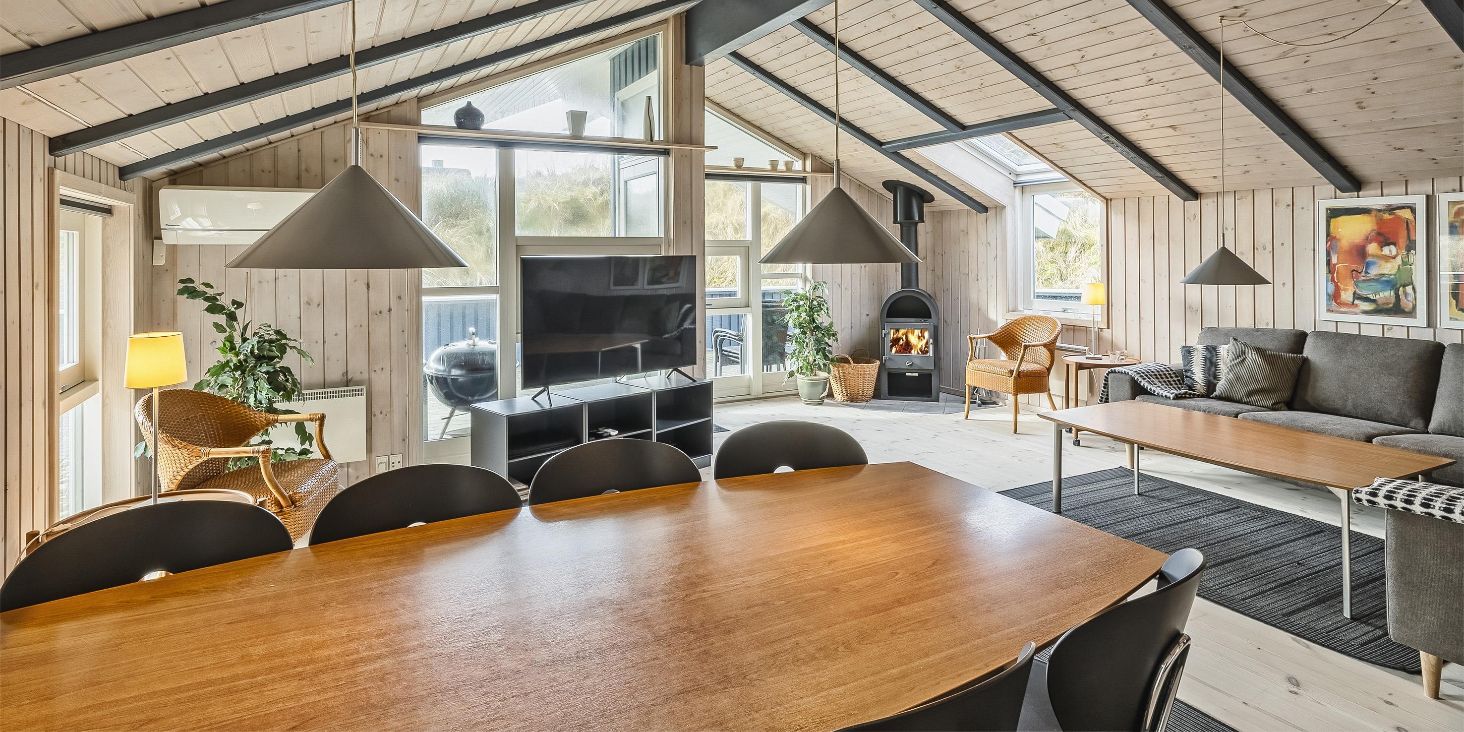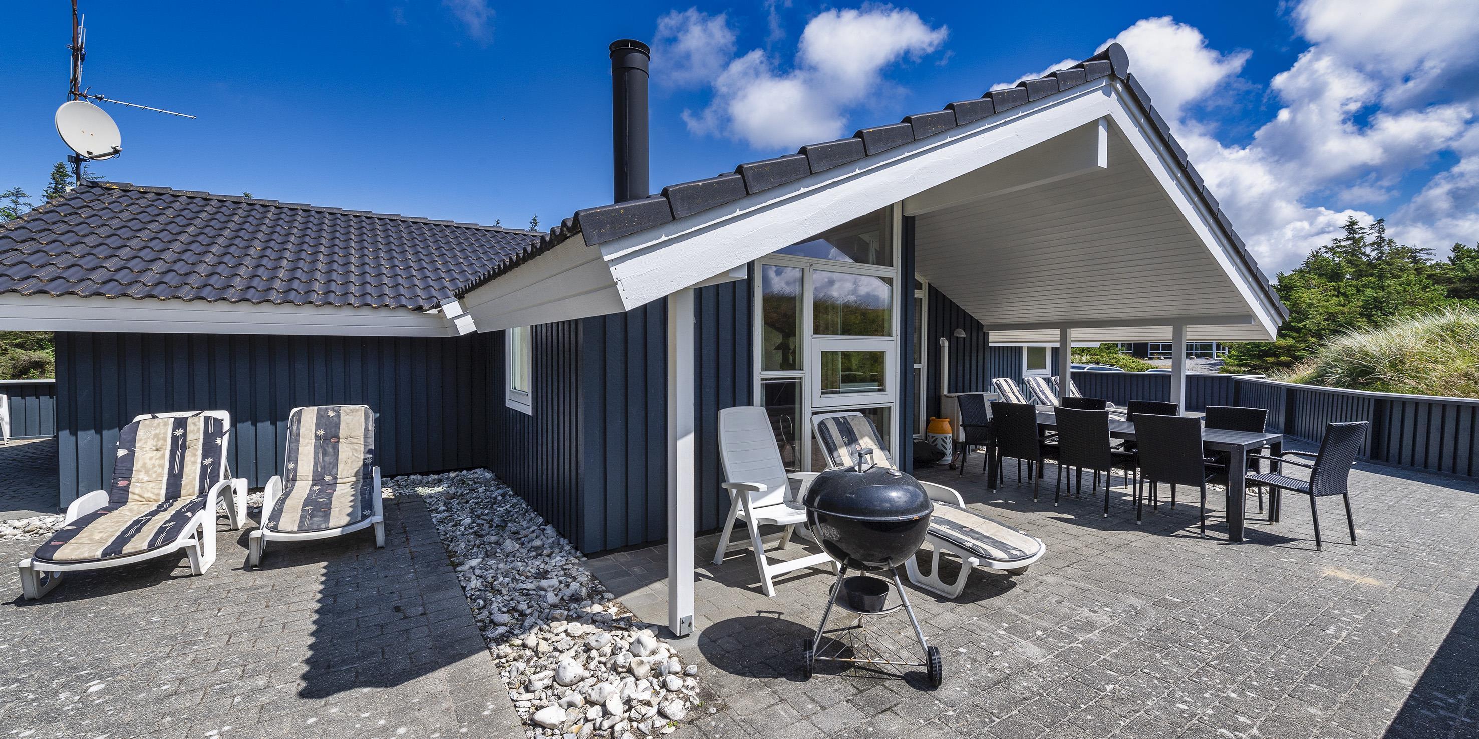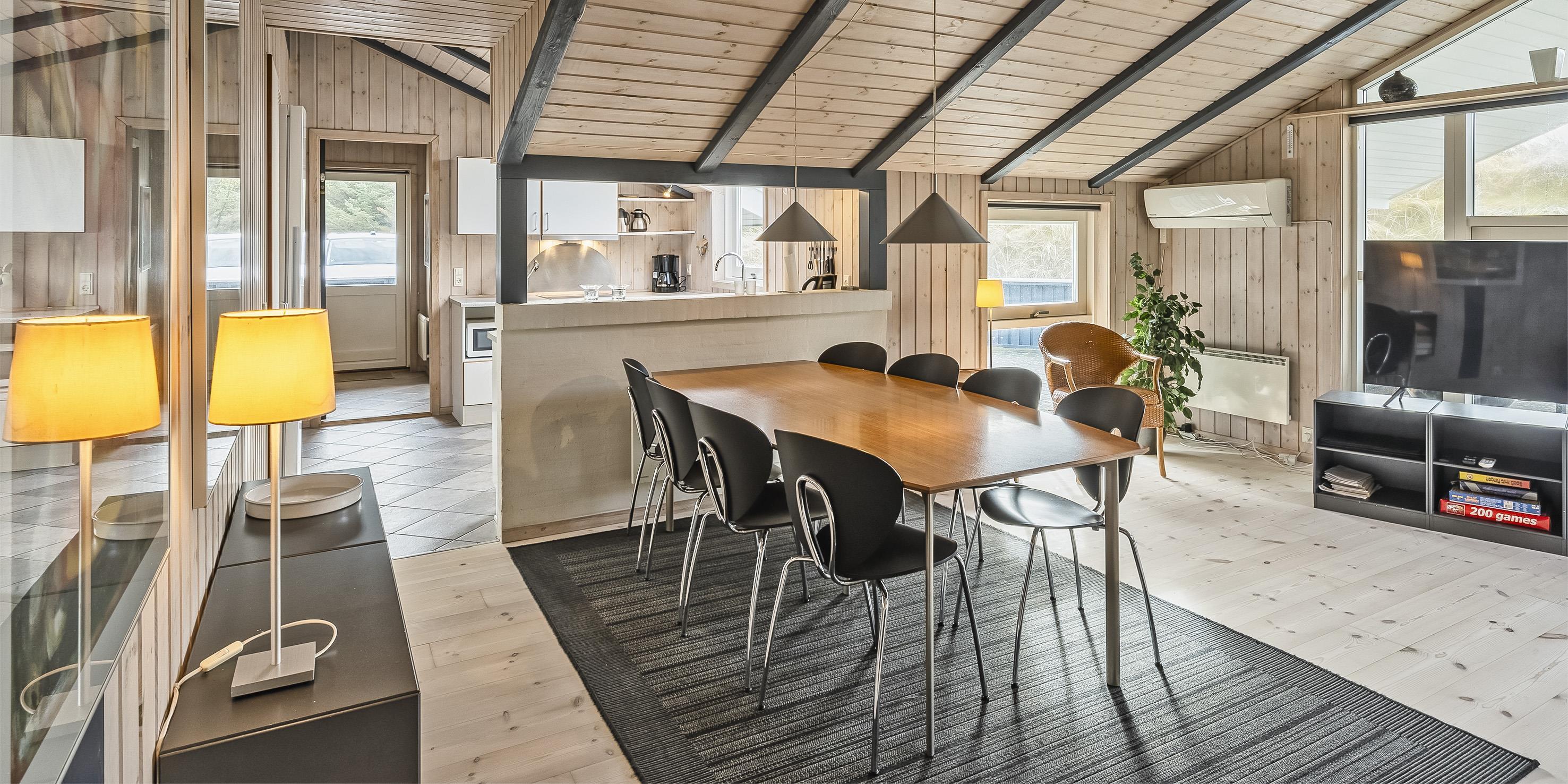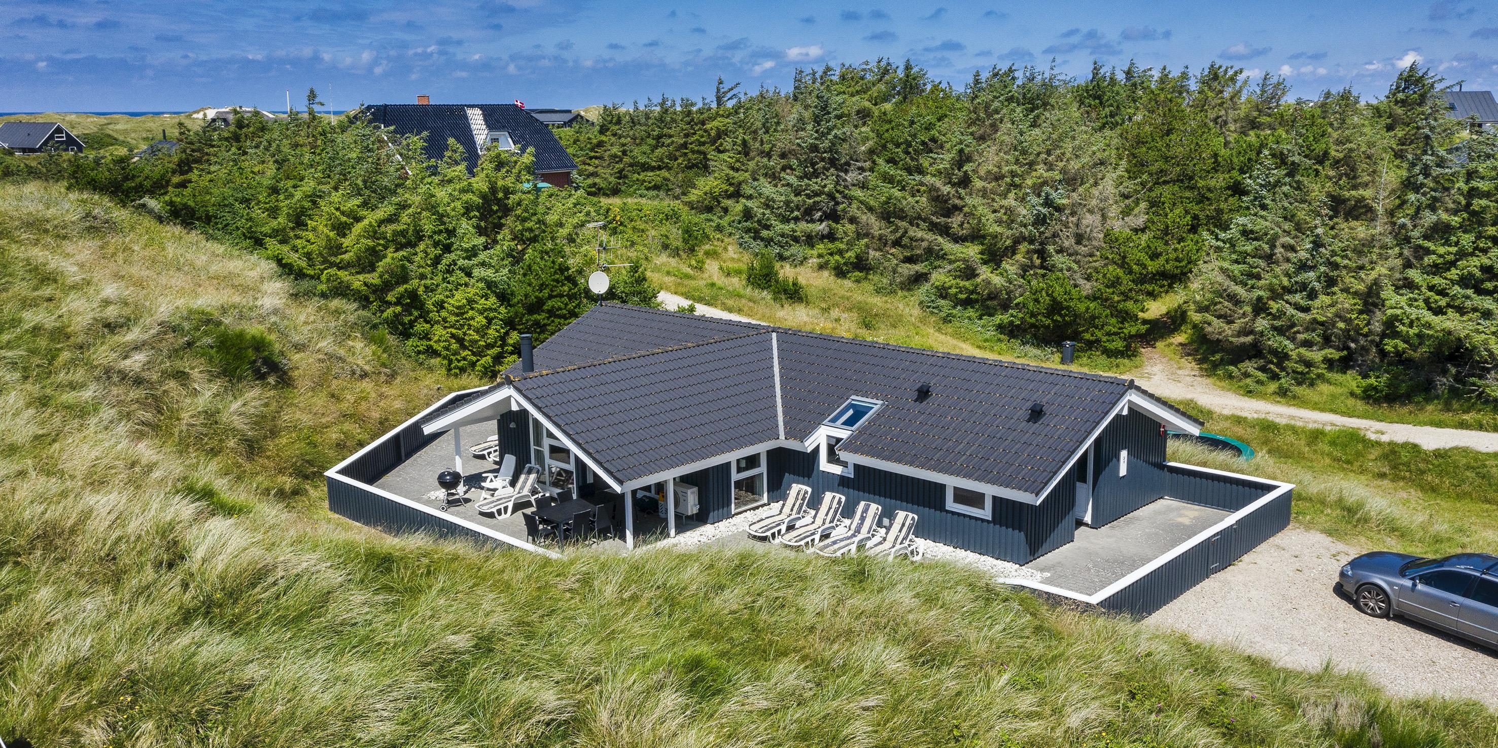 Smagfuldt sommerhus til 8 personer, beliggende på klitgrund, ca. 200 meter fra stranden. Stue med brændeovn og fjernsyn med Stofa sommerhuspakke. Varmepumpe. Køkken med opvaskemaskine, mikroovn og køle-/frysekombination. 4 soveværelser: DS + DS + DS + DS. Badeværelse med bruser/wc, sauna og spa. Gæstetoilet med bruser. Vaskemaskine og tørretumbler. Bemærk venligst: Katte er ikke tilladt! Lukket samt delvis overdækket terrasse. Trådløs Internetadgang. Trampolin til de små. Ekstra udgift for vandforbrug. Inklusiv Oksbøl badeland 2026. Rygning er ikke tilladt. Byggeår 2005.