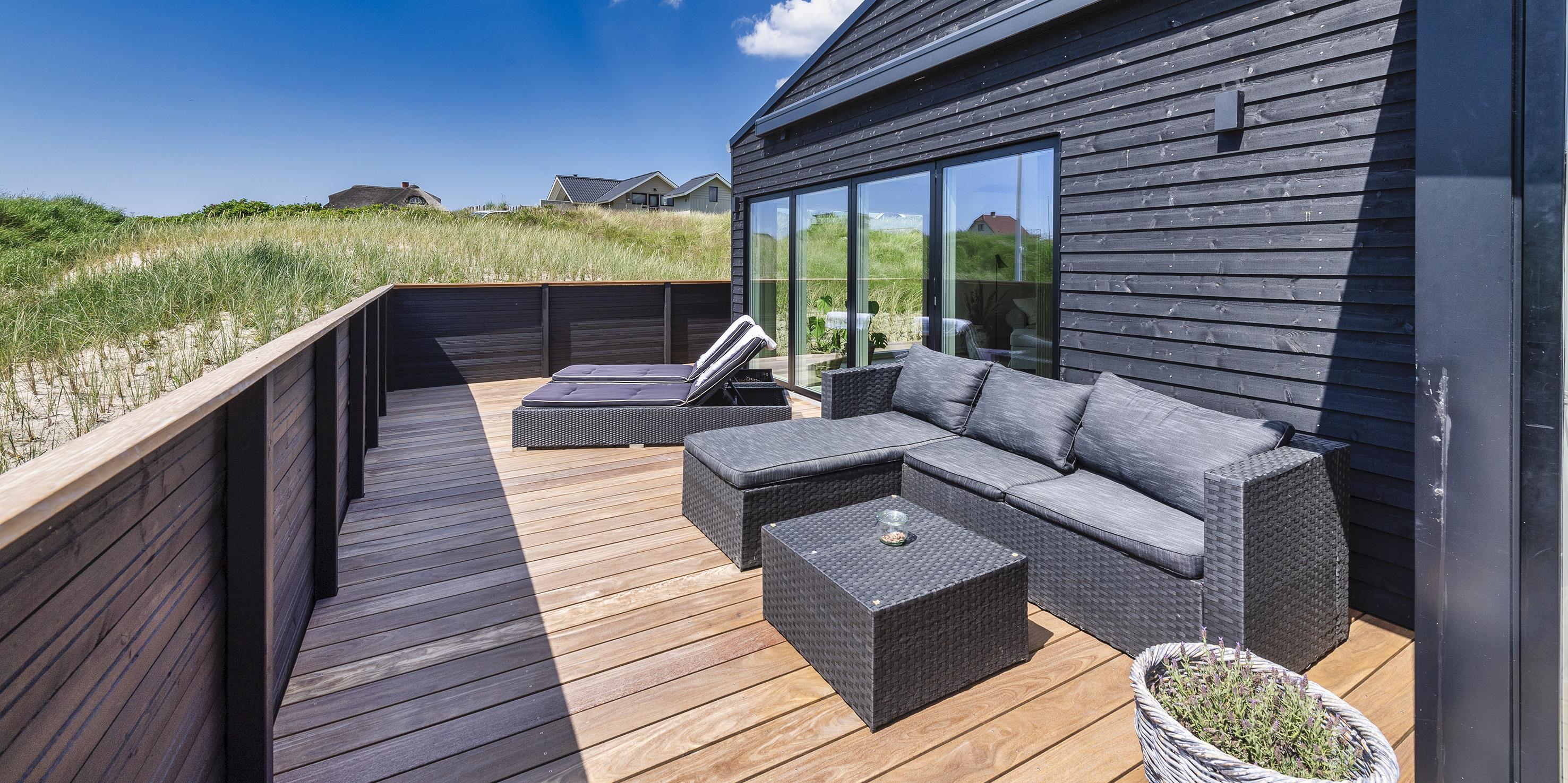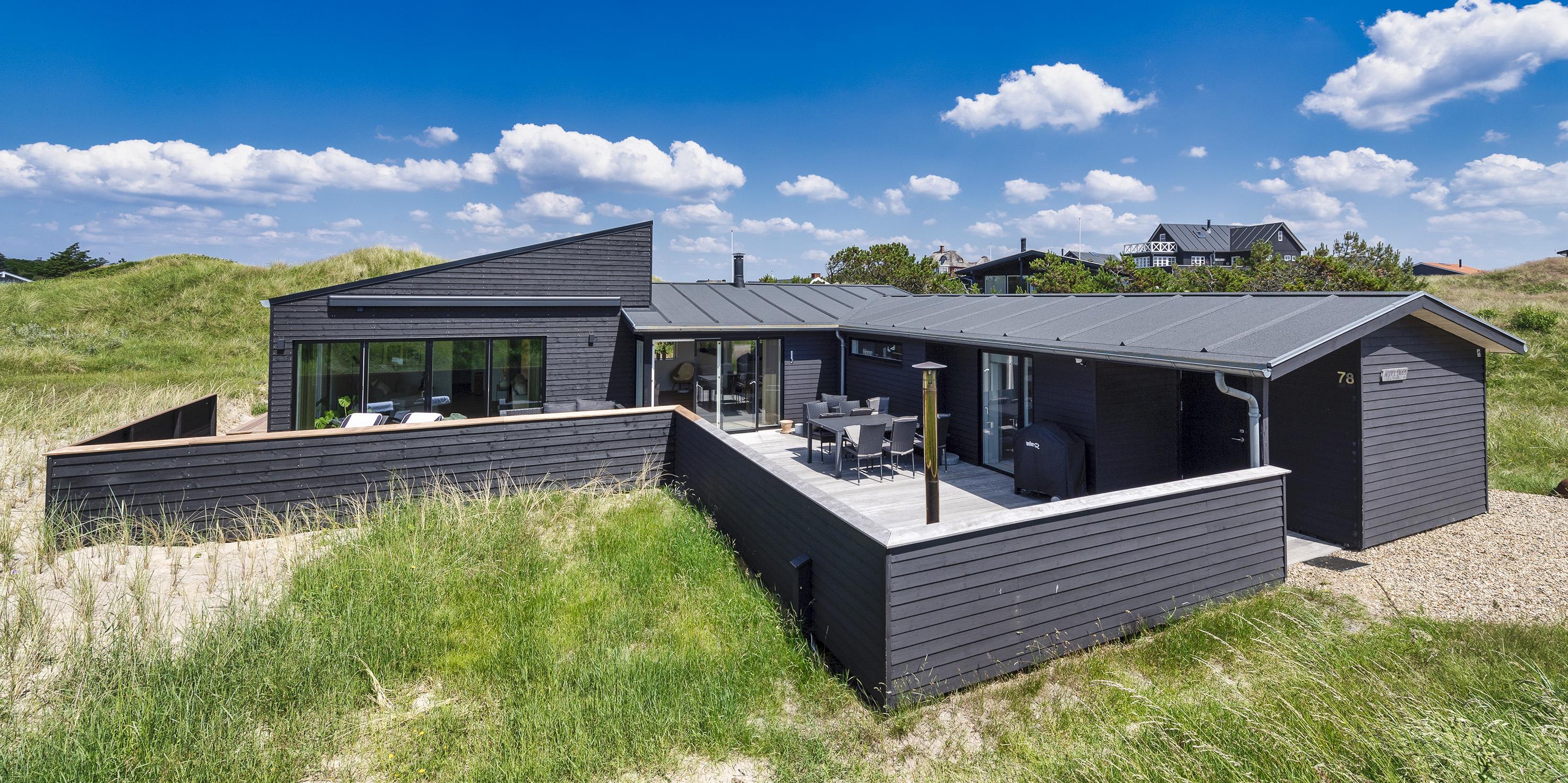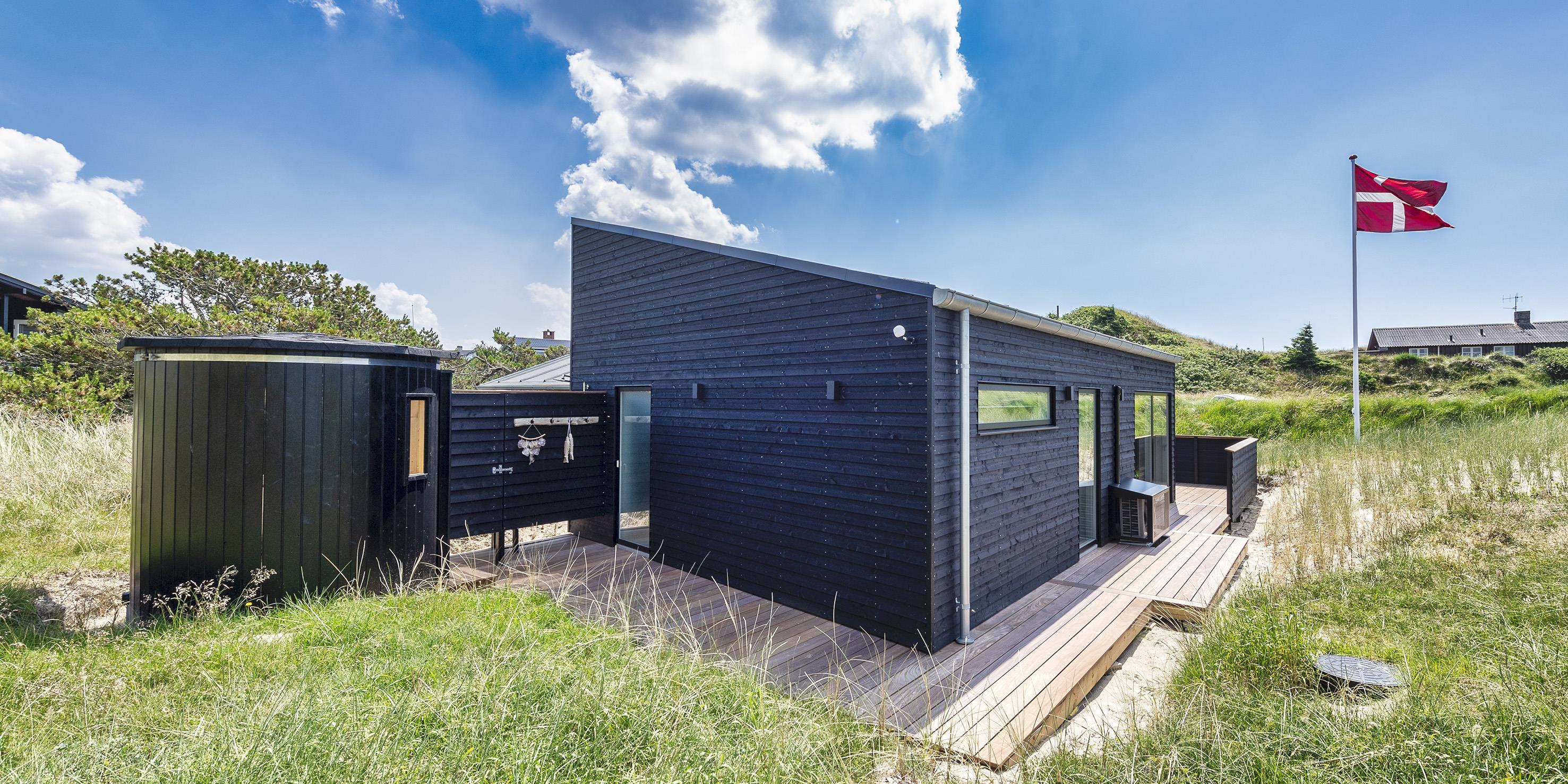 Spændende sommerhus til de kræsne lejere i Vejers. Et moderne sommerhus med en stilrent design, som nærmest smelter sammen med omgivelserne.