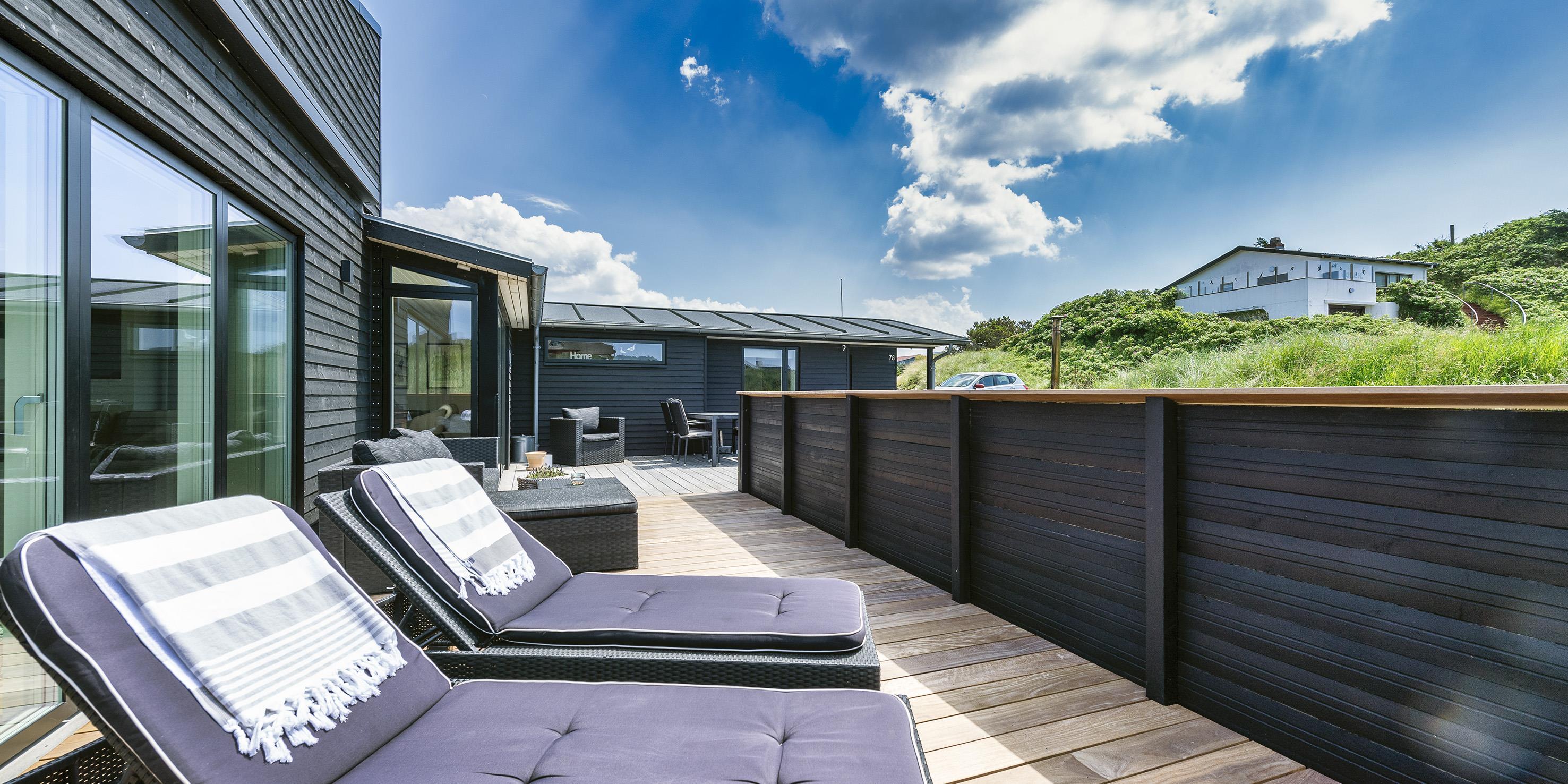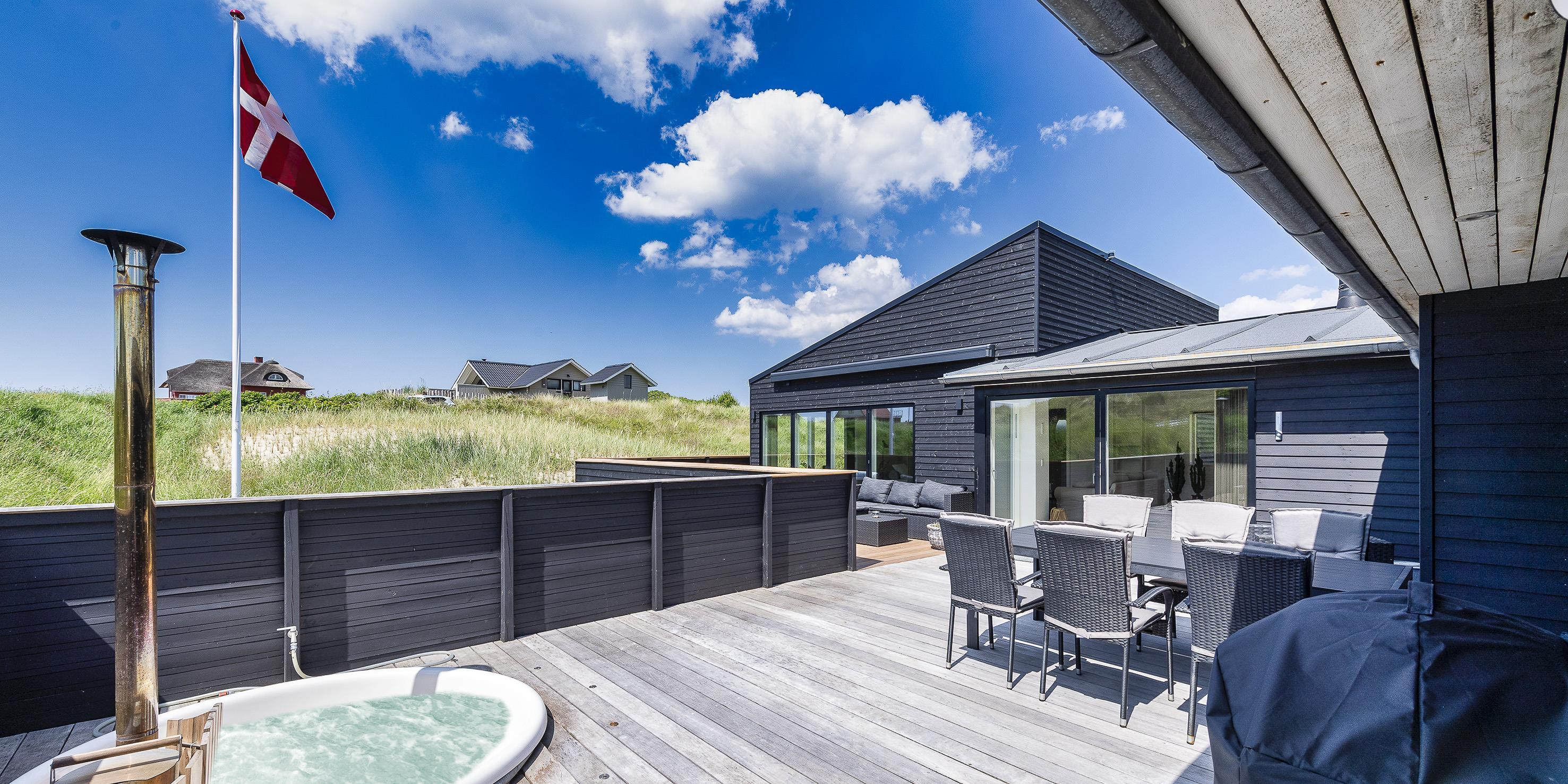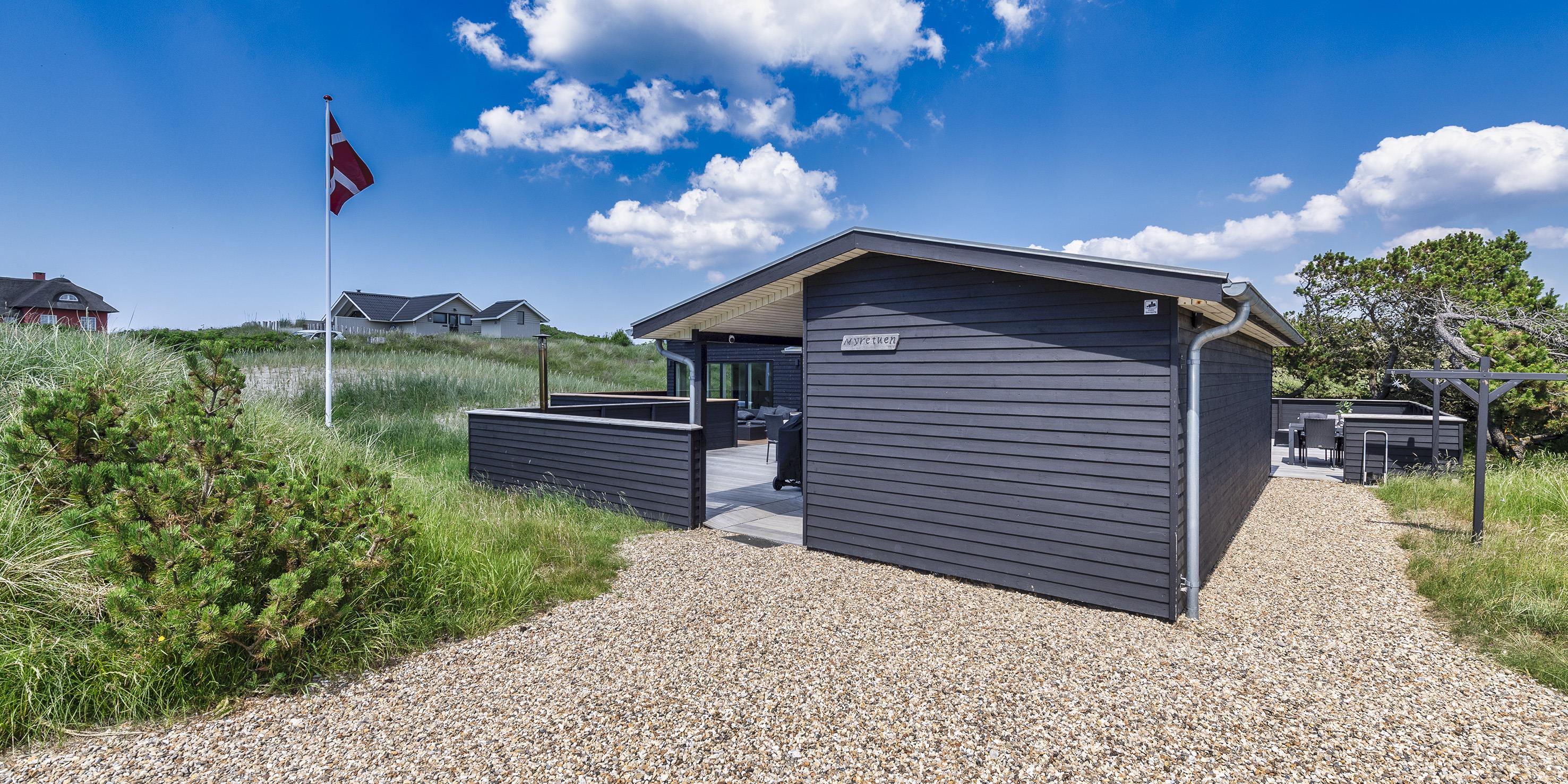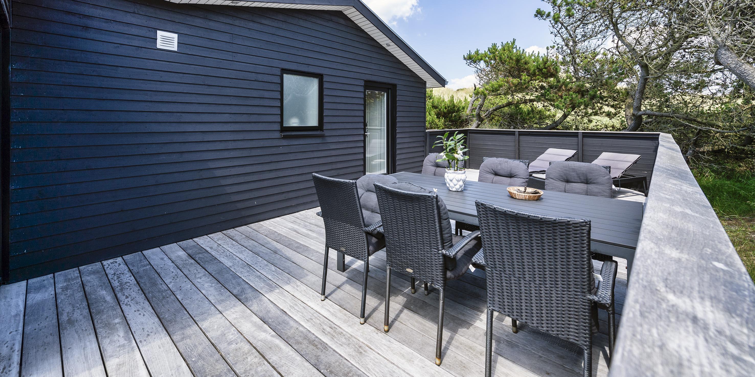 Spændende sommerhus til de kræsne lejere i Vejers. Et moderne sommerhus med en stilrent design, som nærmest smelter sammen med omgivelserne.
