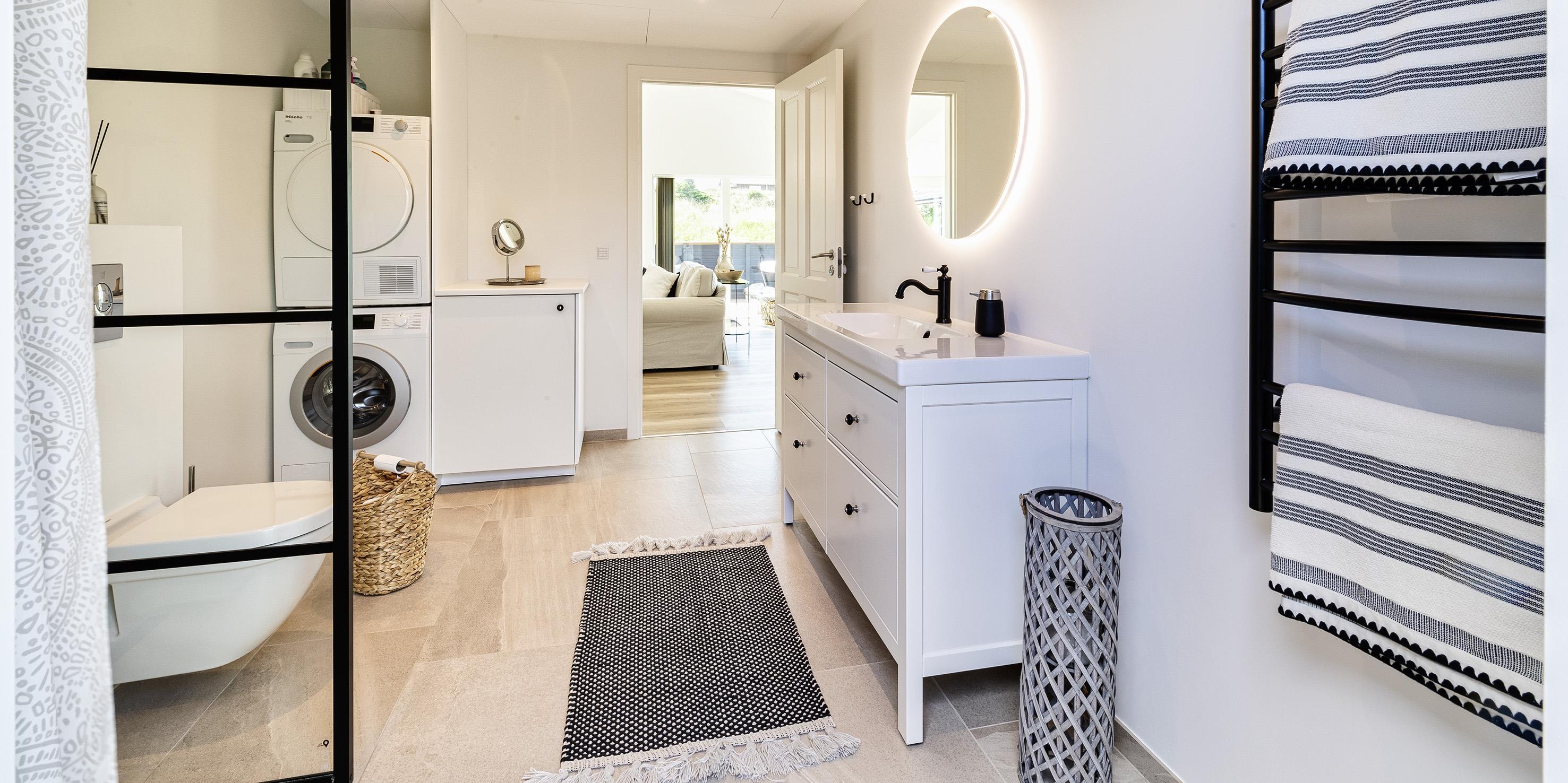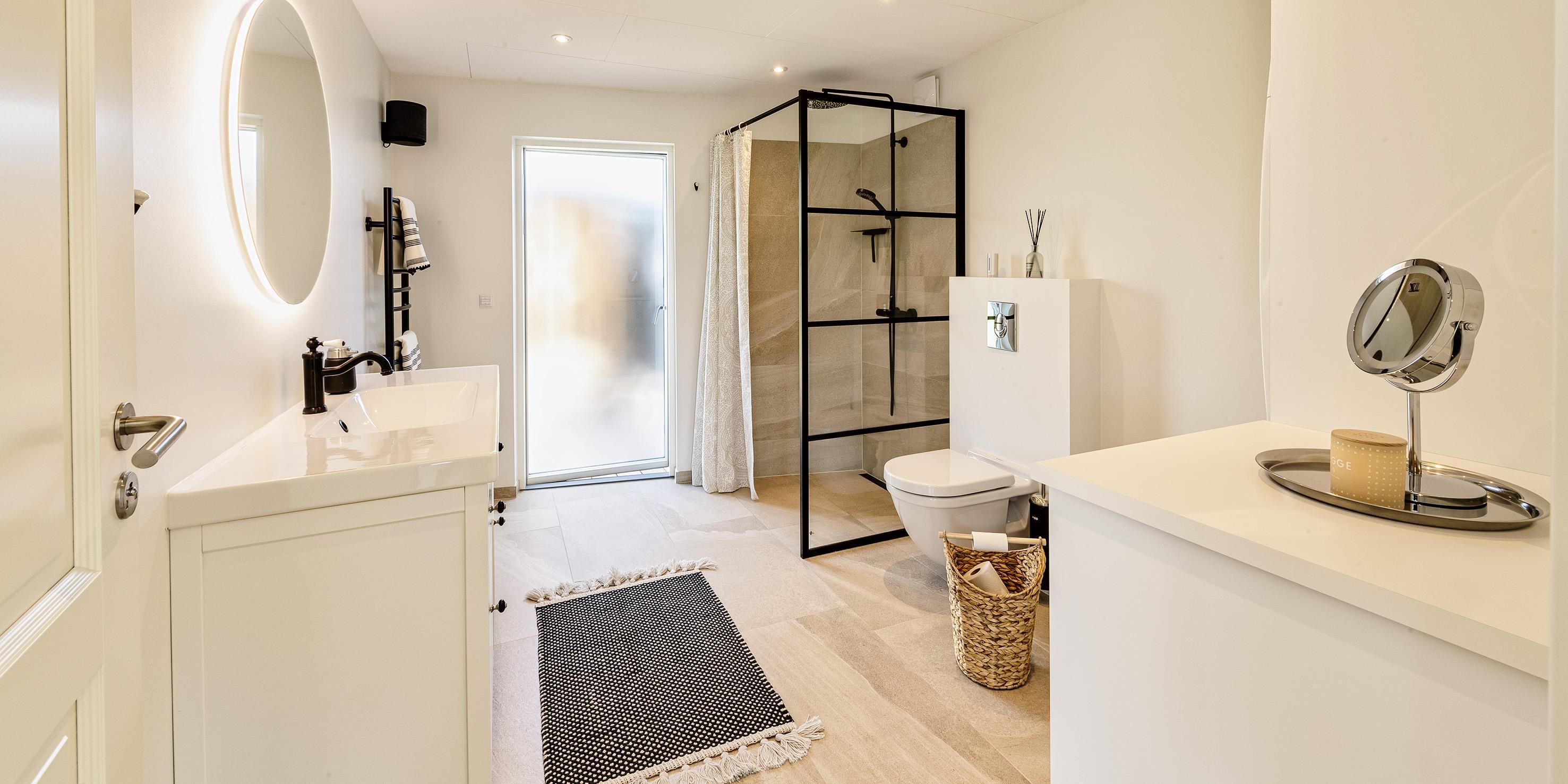 Bad med toilet, bruser og vask