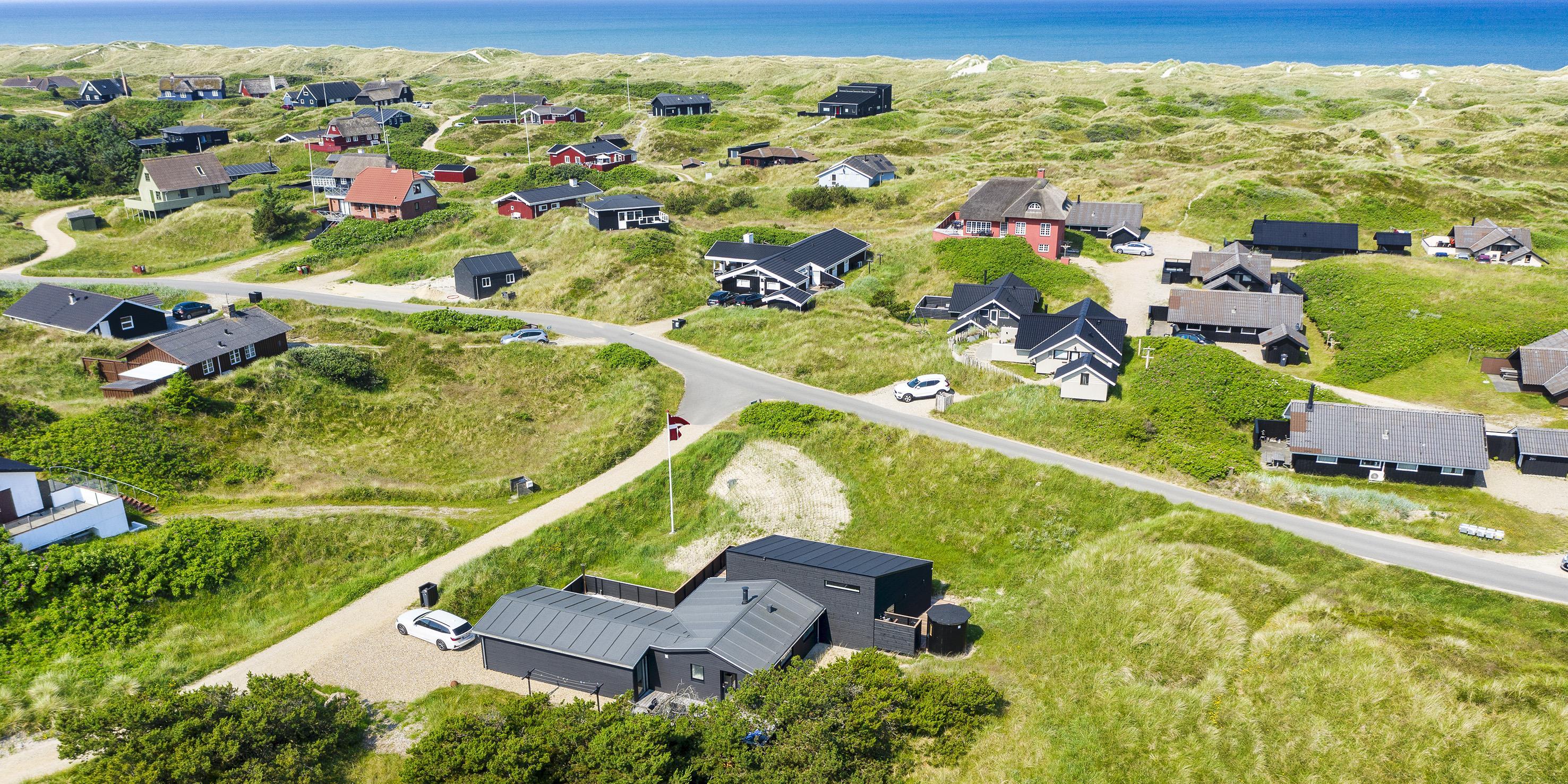 Sommerhuset byder på en skøn atmosfære i en moderne stil, med store panoramavinduer hvorfra der god udsigt over klitgrunden. Gennemgående åbent plan med små og store hyggekroge. De udvendige faciliteter byder på ren natur, der kan nydes fra den store lukkede træterrasse. Sommerhuset ligger på en ugeneret kuperet klitgrund, ca. 250 meter fra stranden.