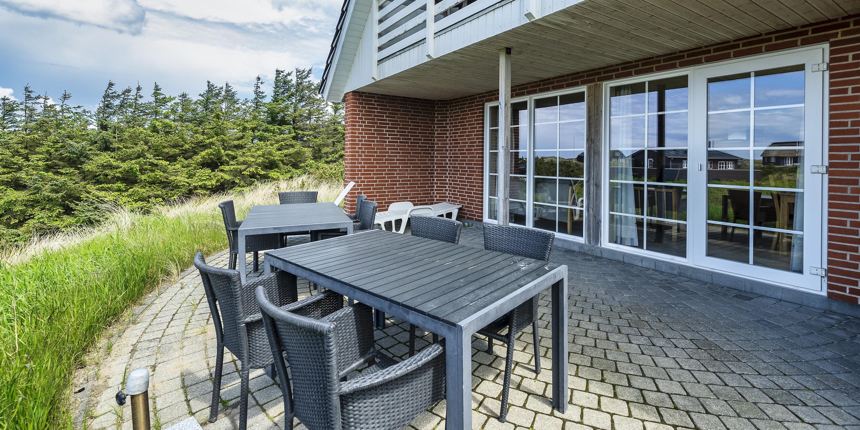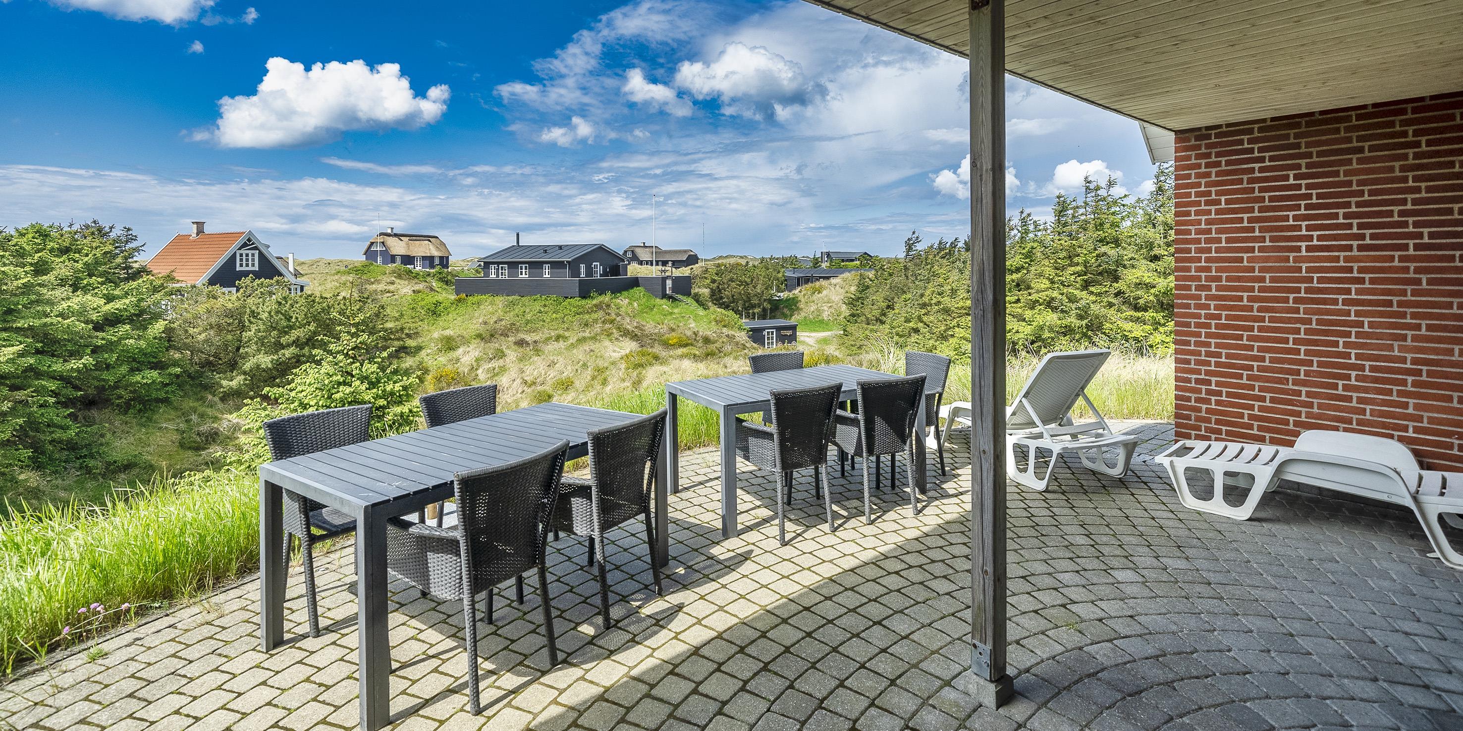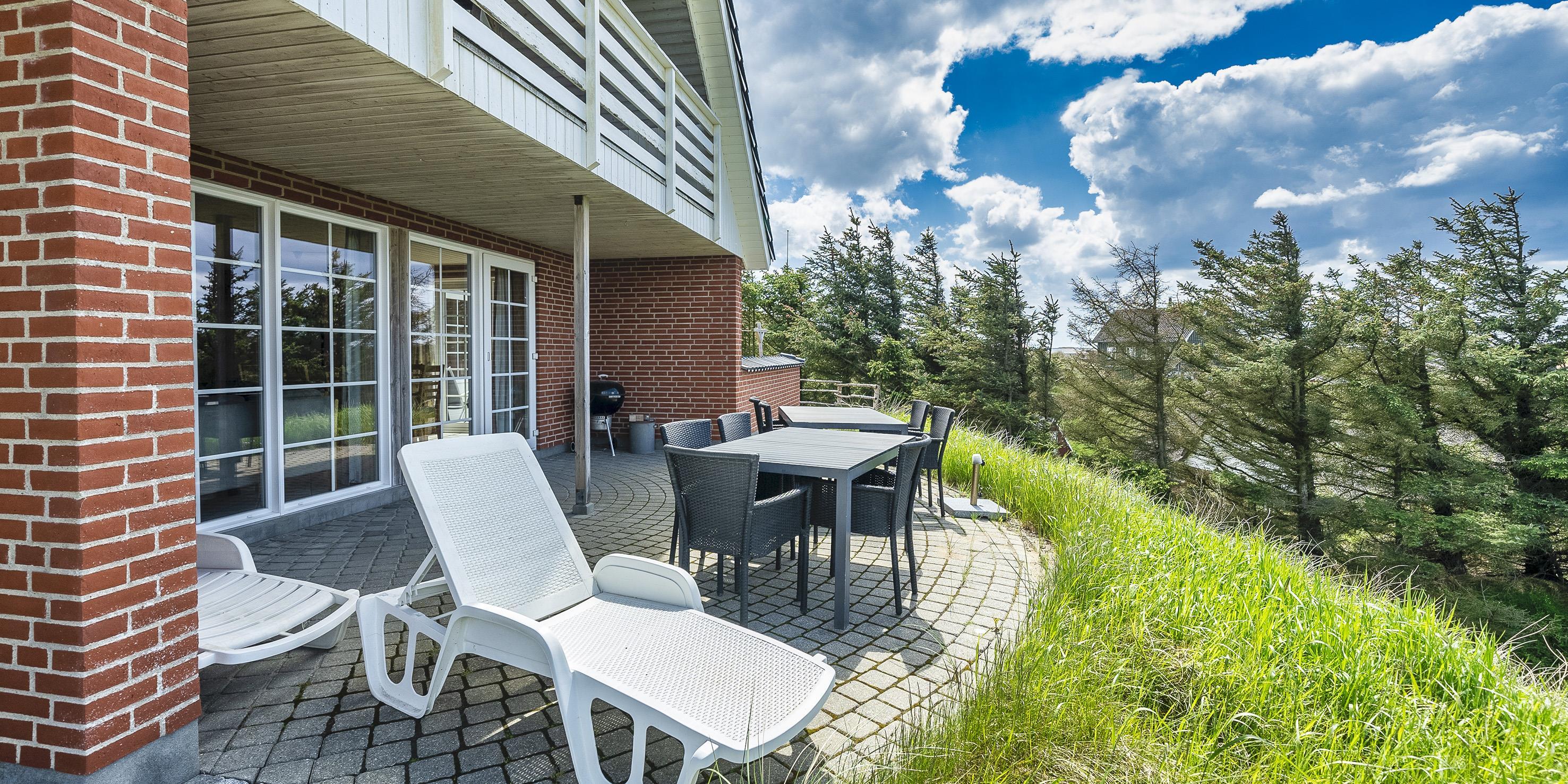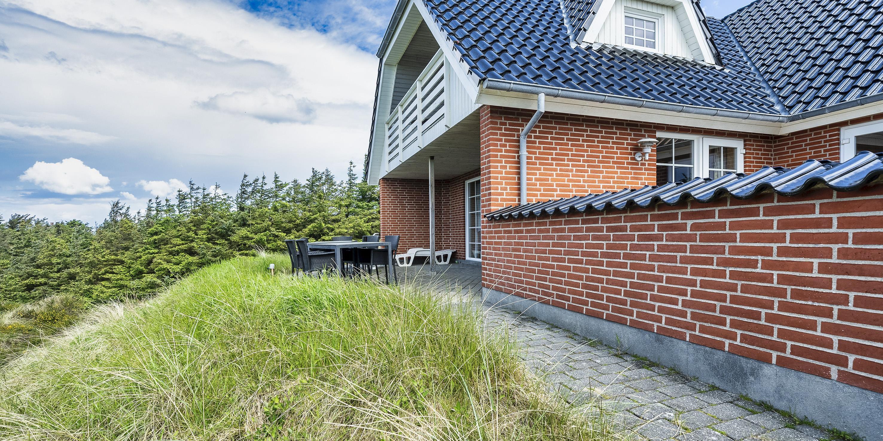 Smagfuldt sommerhus til 9 personer, beliggende på en klit, ca. 150 meter fra stranden. I stueetagen: køkken med opvaskemaskine, mikroovn og kombineret køle-/frysekombination. Stue med brændeovn, fjernsyn og parabol (DR programmer). 2 soveværelser med hver 1 dobbeltseng, 1 soveværelset med et enkelt seng. Badeværelse med bruser/wc, standvandsspa og sauna. Vaskemaskine og tørretumbler. På 1. sal: badeværelse med bruser/wc. 2 soveværelser med hver 1 dobbeltseng. 5 værelser: DS + DS + DS + DS + S. Tekøkken. Stue med ekstra fjernsyn og udgang til balkon. Udsigt over havet. Huset er egnet til kørestolsbrugere i stueetagen. Lukket terrasse. Trådløs Internetadgang. Rygning forbudt i huset. Byggeår 2006. Max 3 små hunde.
