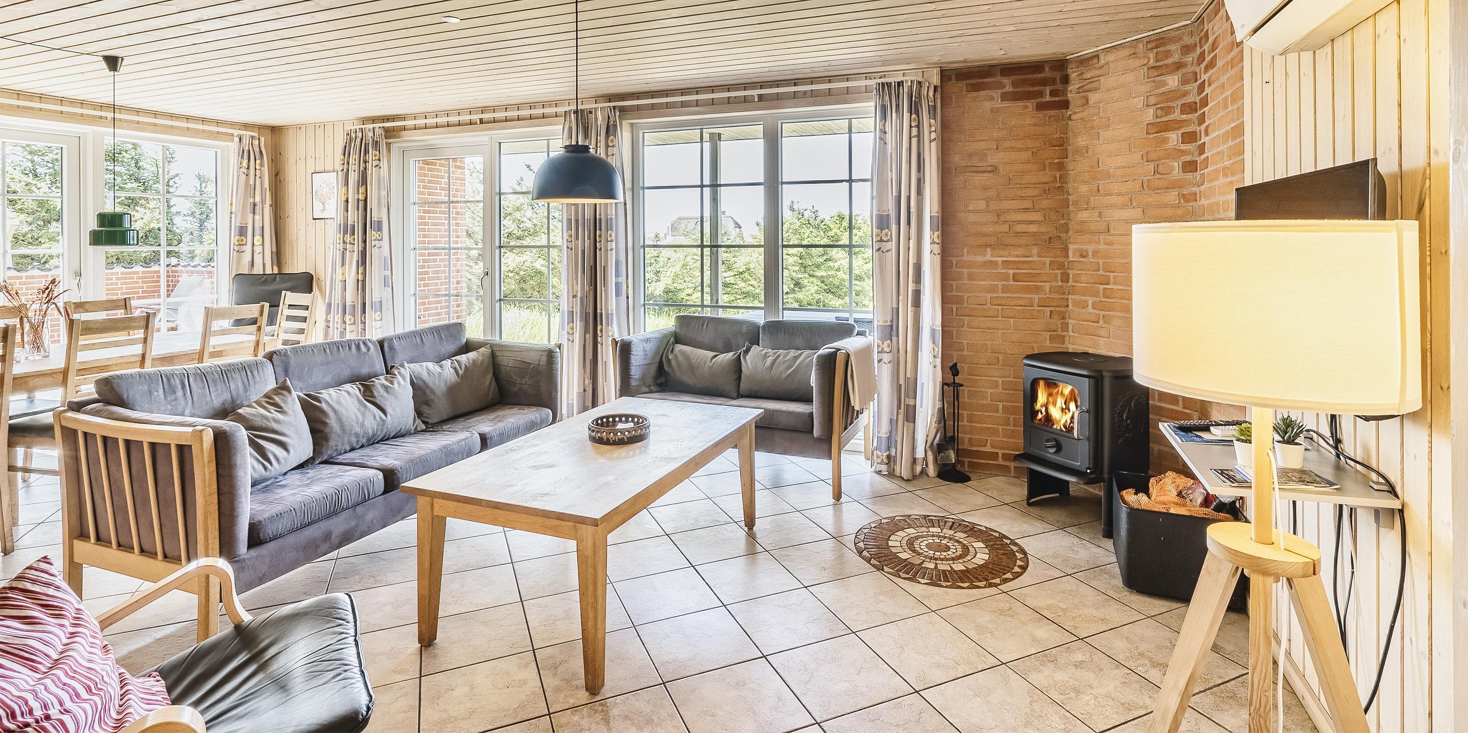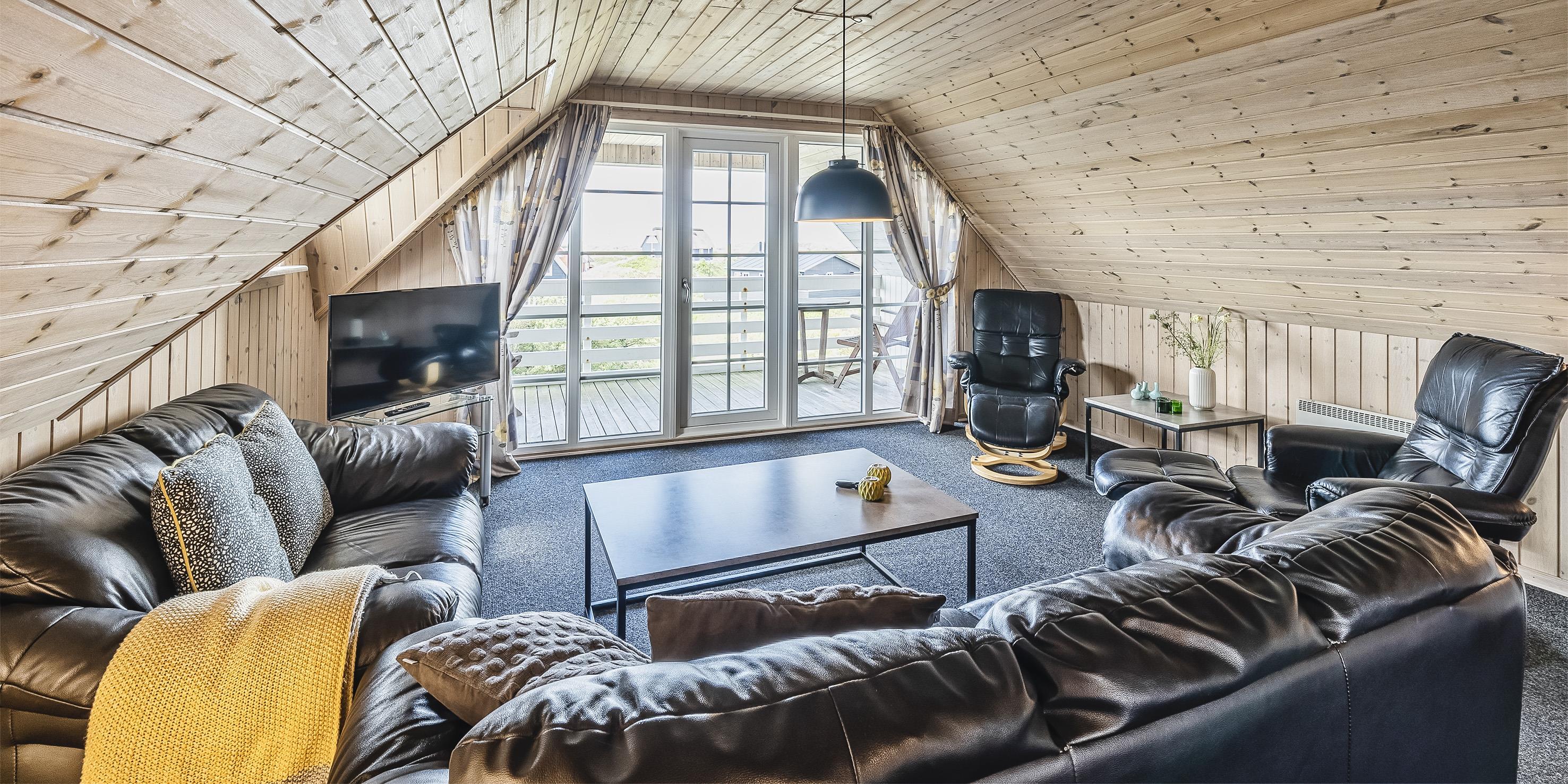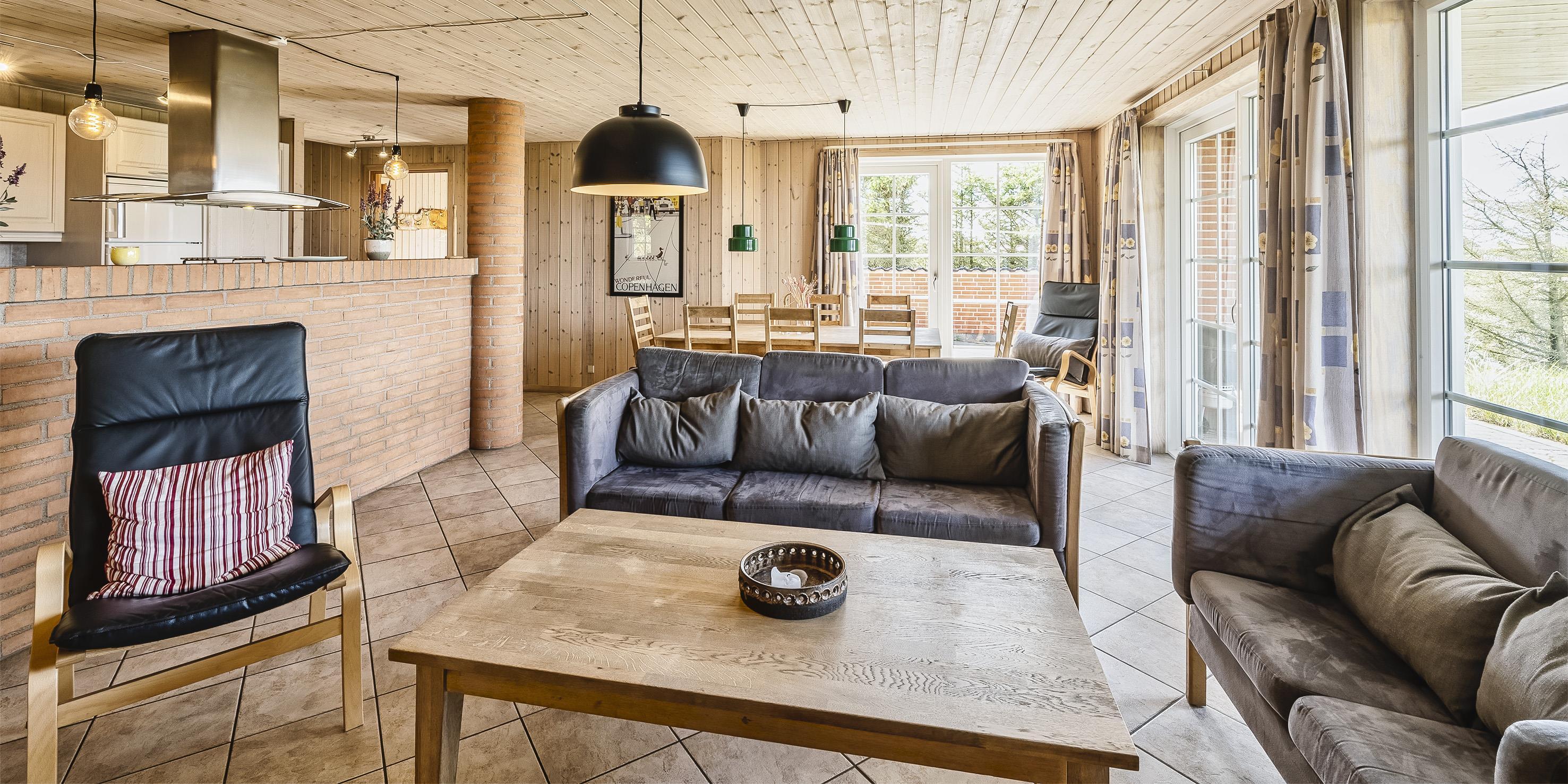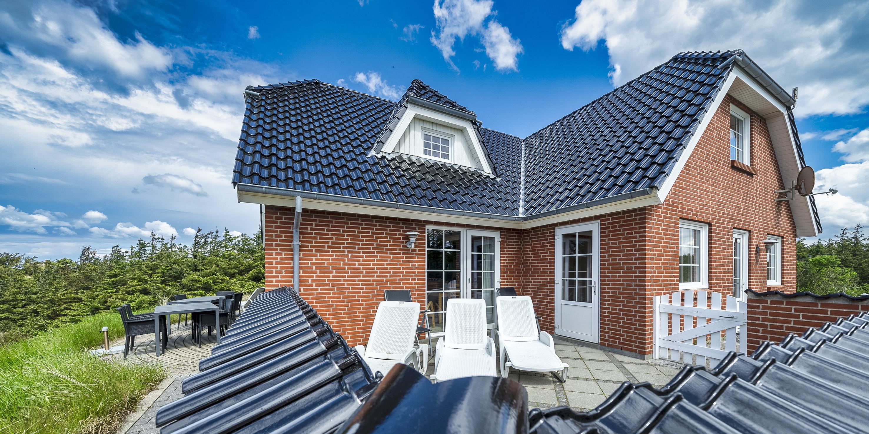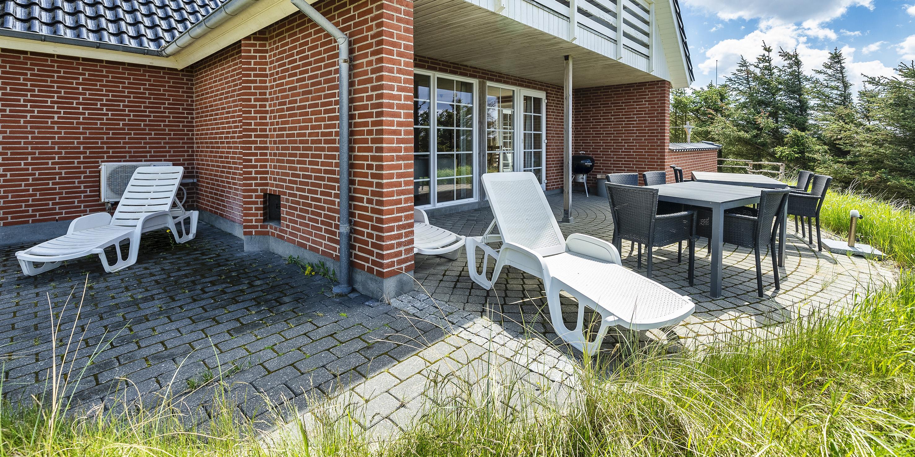 Smagfuldt sommerhus til 9 personer, beliggende på en klit, ca. 150 meter fra stranden. I stueetagen: køkken med opvaskemaskine, mikroovn og kombineret køle-/frysekombination. Stue med brændeovn, fjernsyn og parabol (DR programmer). 2 soveværelser med hver 1 dobbeltseng, 1 soveværelset med et enkelt seng. Badeværelse med bruser/wc, standvandsspa og sauna. Vaskemaskine og tørretumbler. På 1. sal: badeværelse med bruser/wc. 2 soveværelser med hver 1 dobbeltseng. 5 værelser: DS + DS + DS + DS + S. Tekøkken. Stue med ekstra fjernsyn og udgang til balkon. Udsigt over havet. Huset er egnet til kørestolsbrugere i stueetagen. Lukket terrasse. Trådløs Internetadgang. Rygning forbudt i huset. Byggeår 2006. Max 3 små hunde.