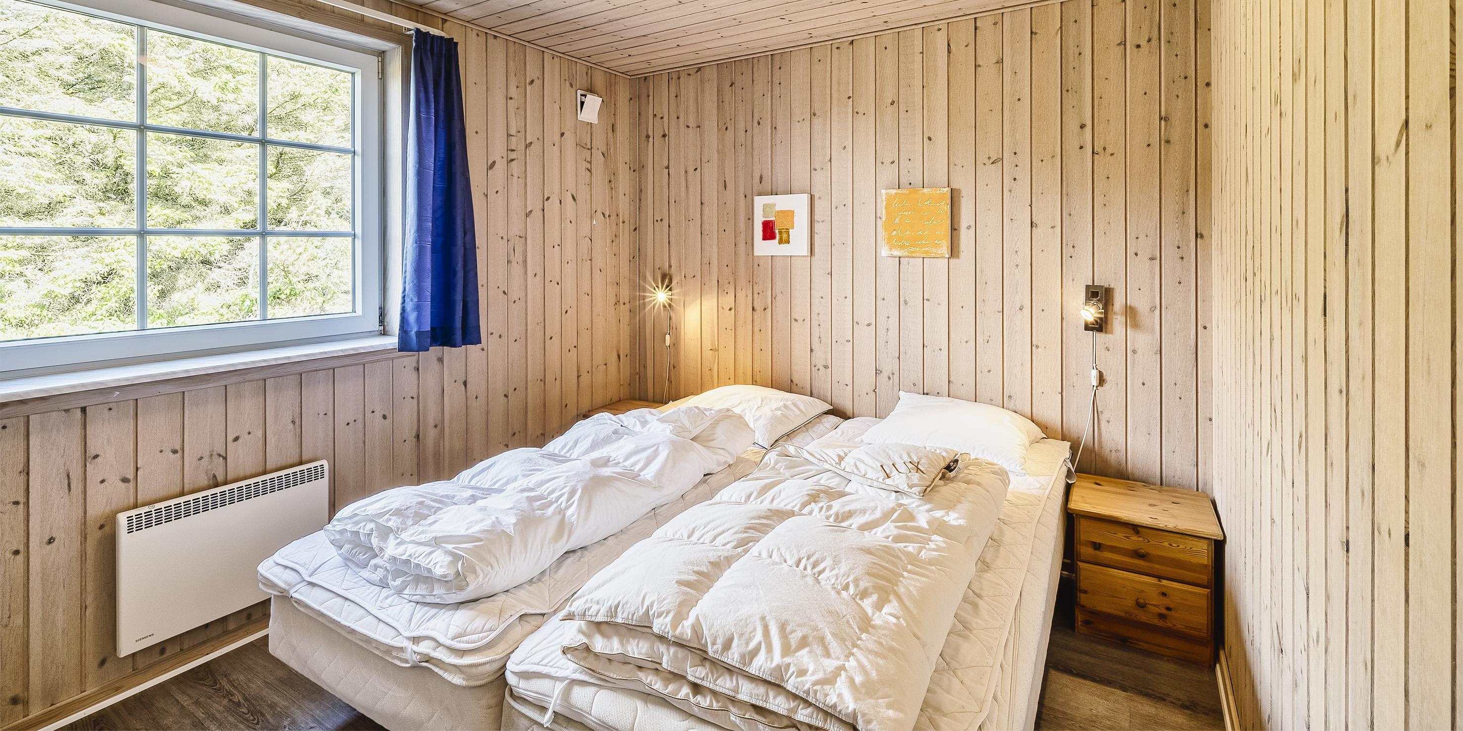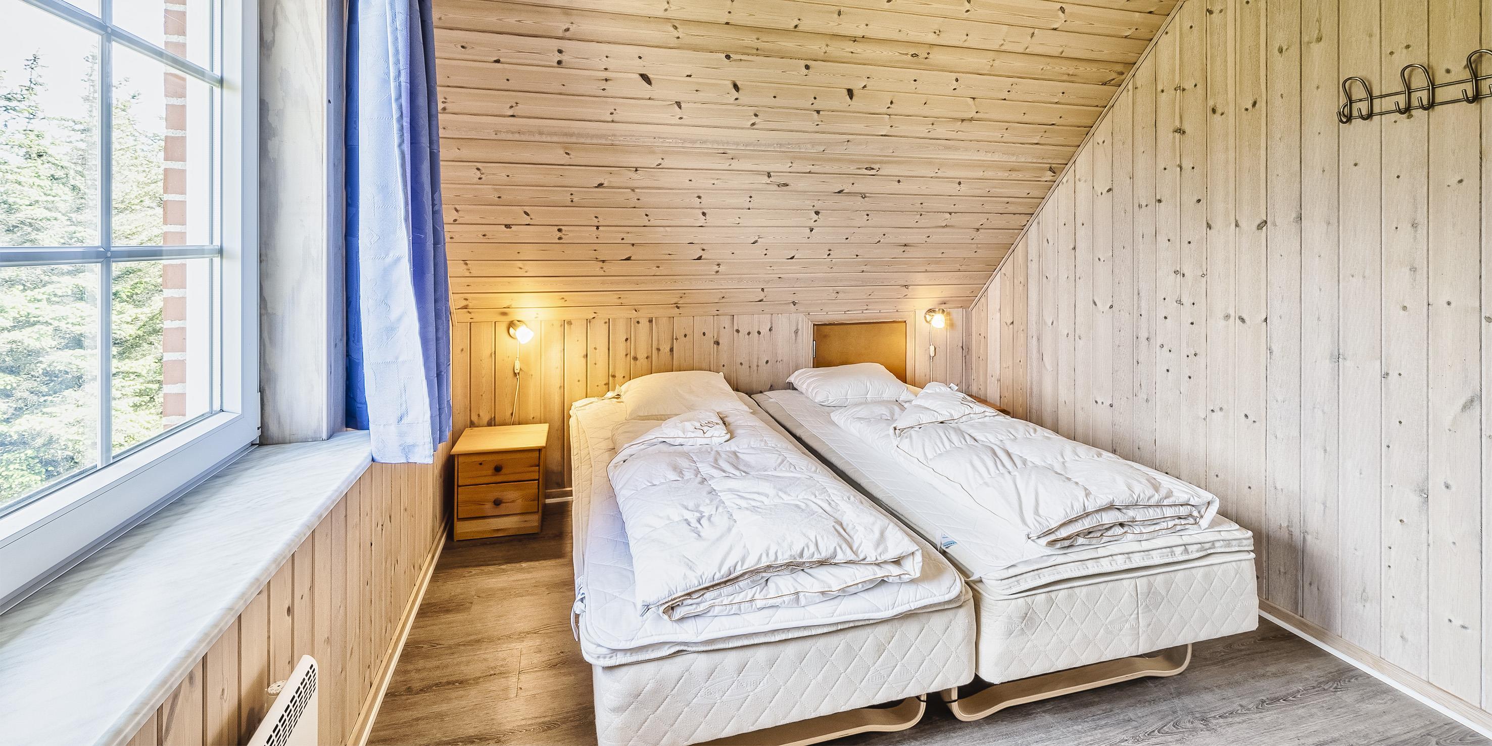 5 soveværelser. 4 med dobbeltseng 180x200 cm. 1 med 1 enkeltseng (á 90x200 cm)