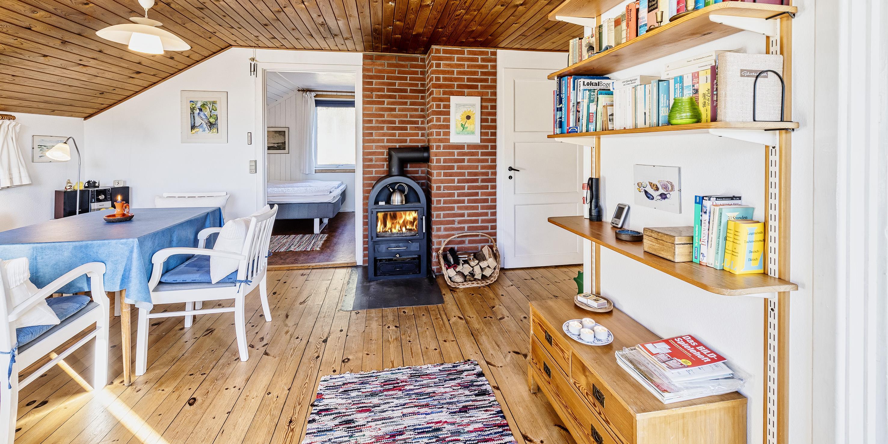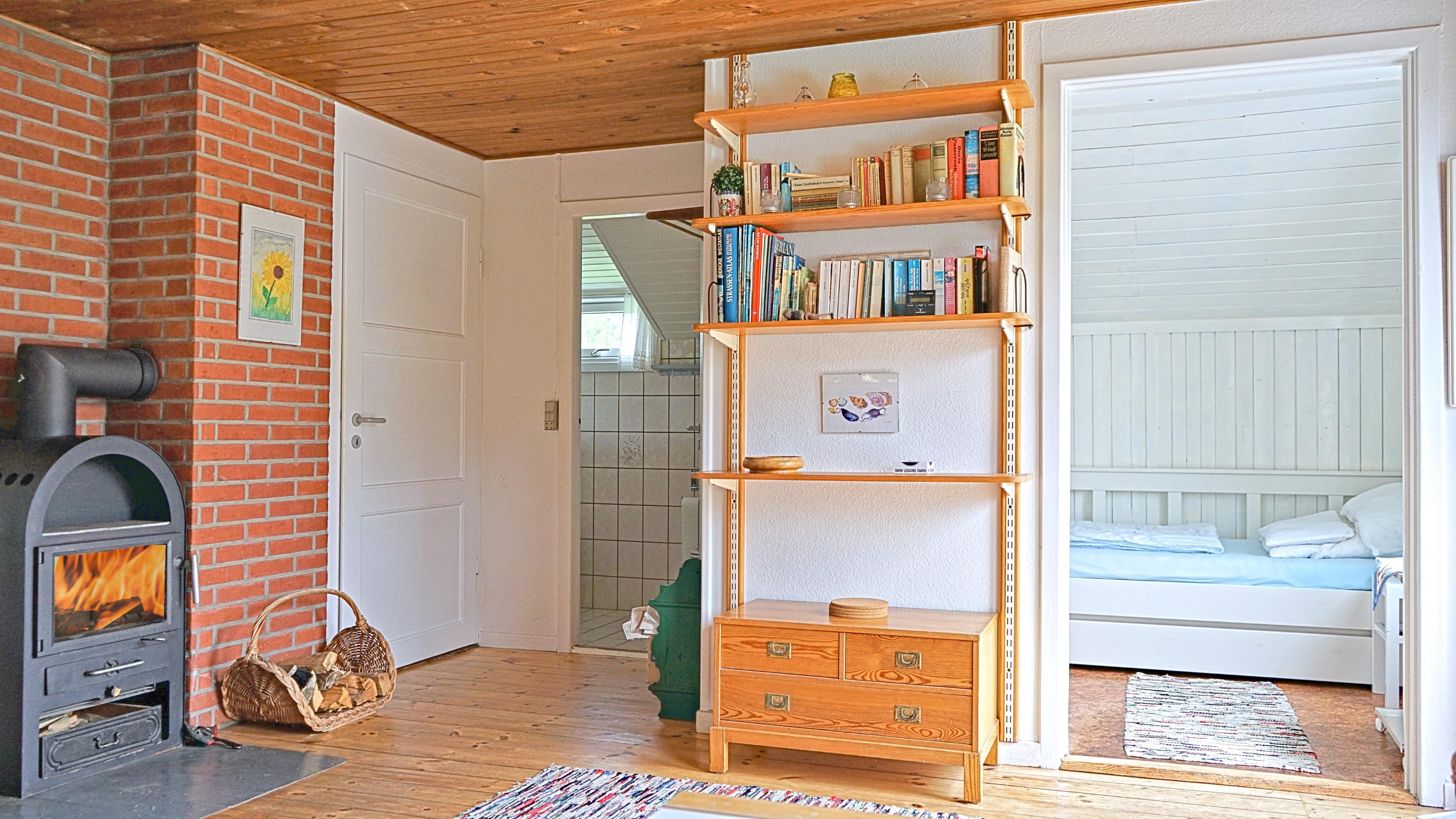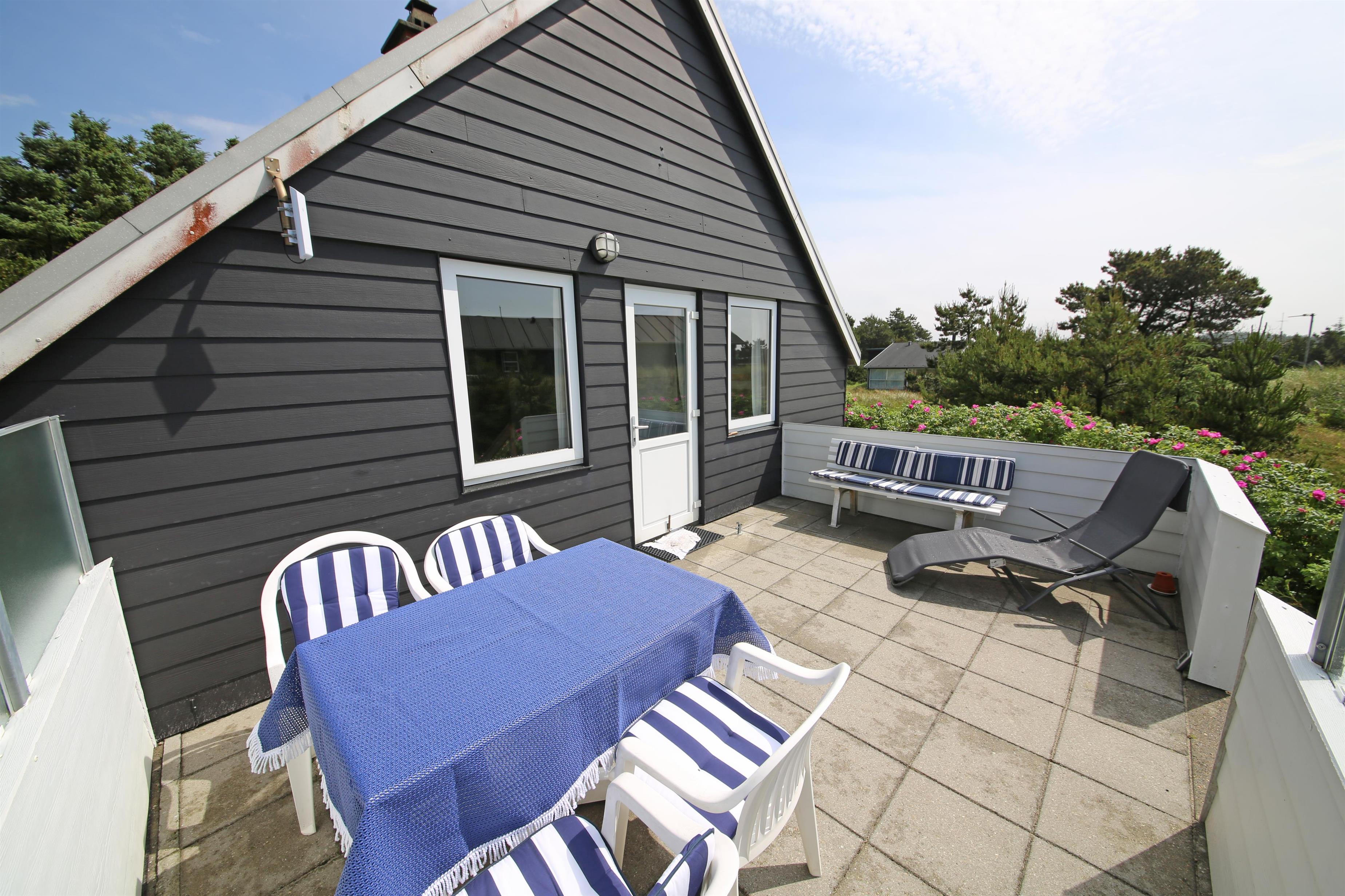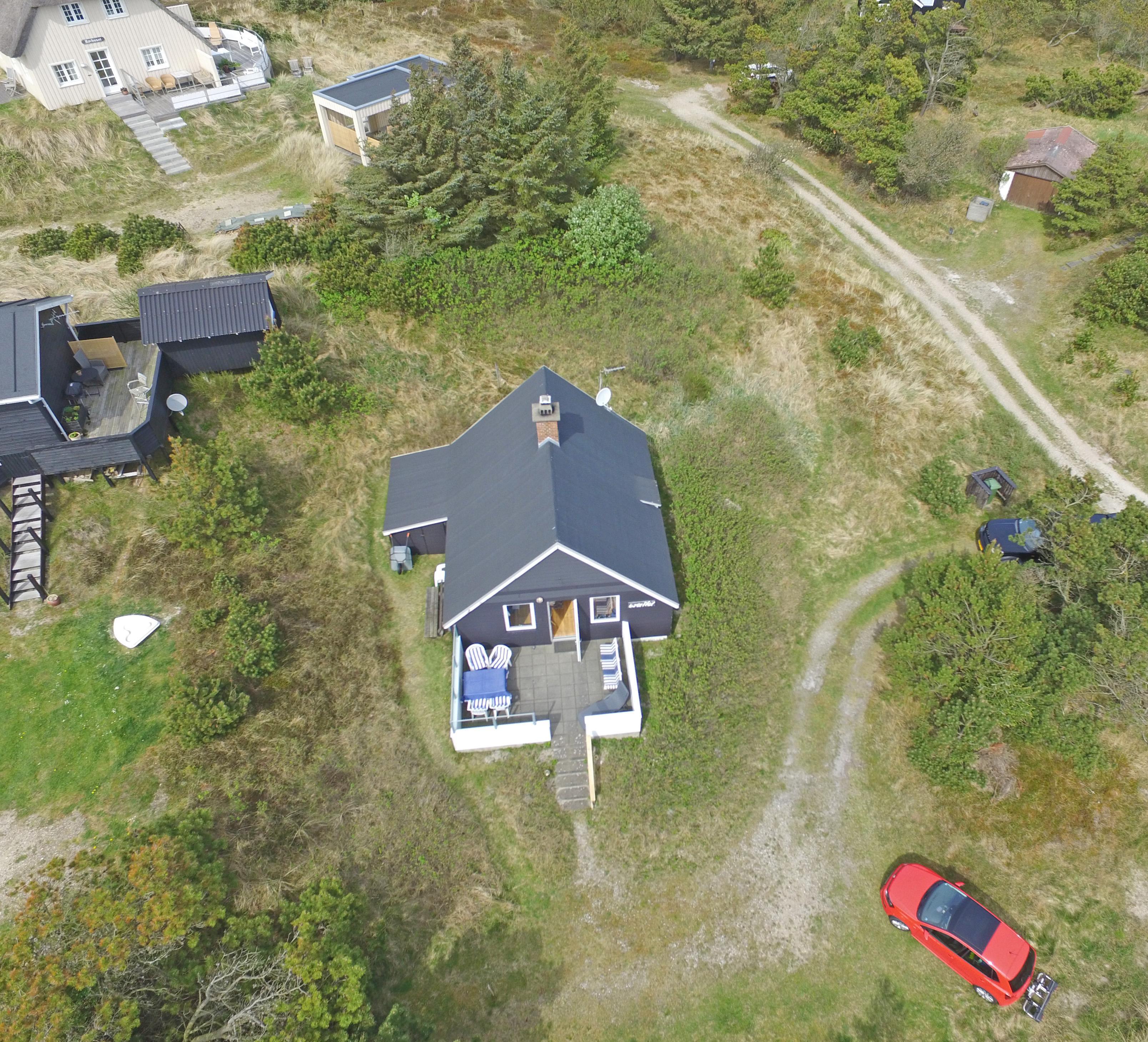 Charmerende Vejers sommerhus til 3 personer, beliggende på lukket klitgrund for enden af en blind vej i rolige omgivelser, ca. 450 meter fra stranden. Huset indeholder: Charmerende opholdsstue med brændeovn, fjernsyn med danske kanaler (DR programmer) og parabol.Radio og CD-afspiller. Trådløs internet. Seperat køkken med komfur med keramiske kogeplader, mikroovn og køleskab med lille skabsfryser. Lille kælder med viktualierum. Fra køkkent kommer man ind på badeværelset, der fremstår med åben bruseniche, håndvask, wc og åbne hylder for henstilling af toiletsager. Huset har 2 soveværelser: DS + 1S. Fra stuen træder man direkte ud på en hyggelig terrasse med gode havemøbler. Fra grunden er der en trappe på 7 trin op til terrassen og huset. Der er kun tilladt én lille hund (30 cm) Rygning er ikke tilladt. Byggeår 1953, delvis renoveret i 2006.