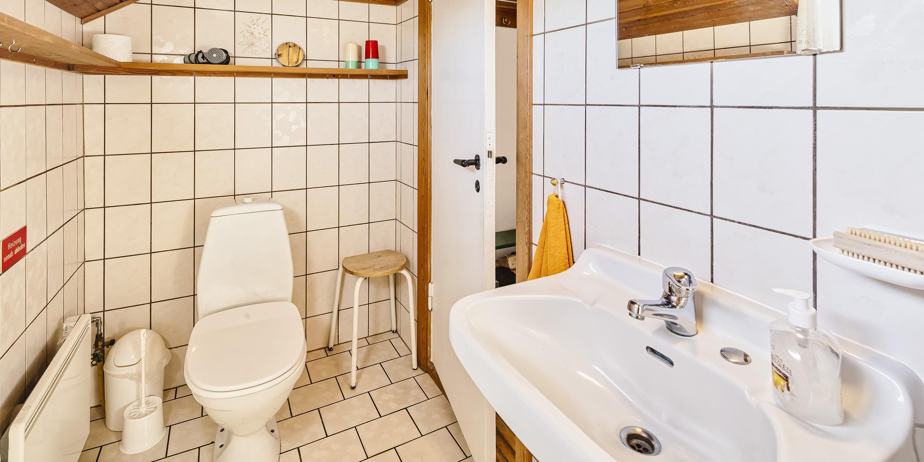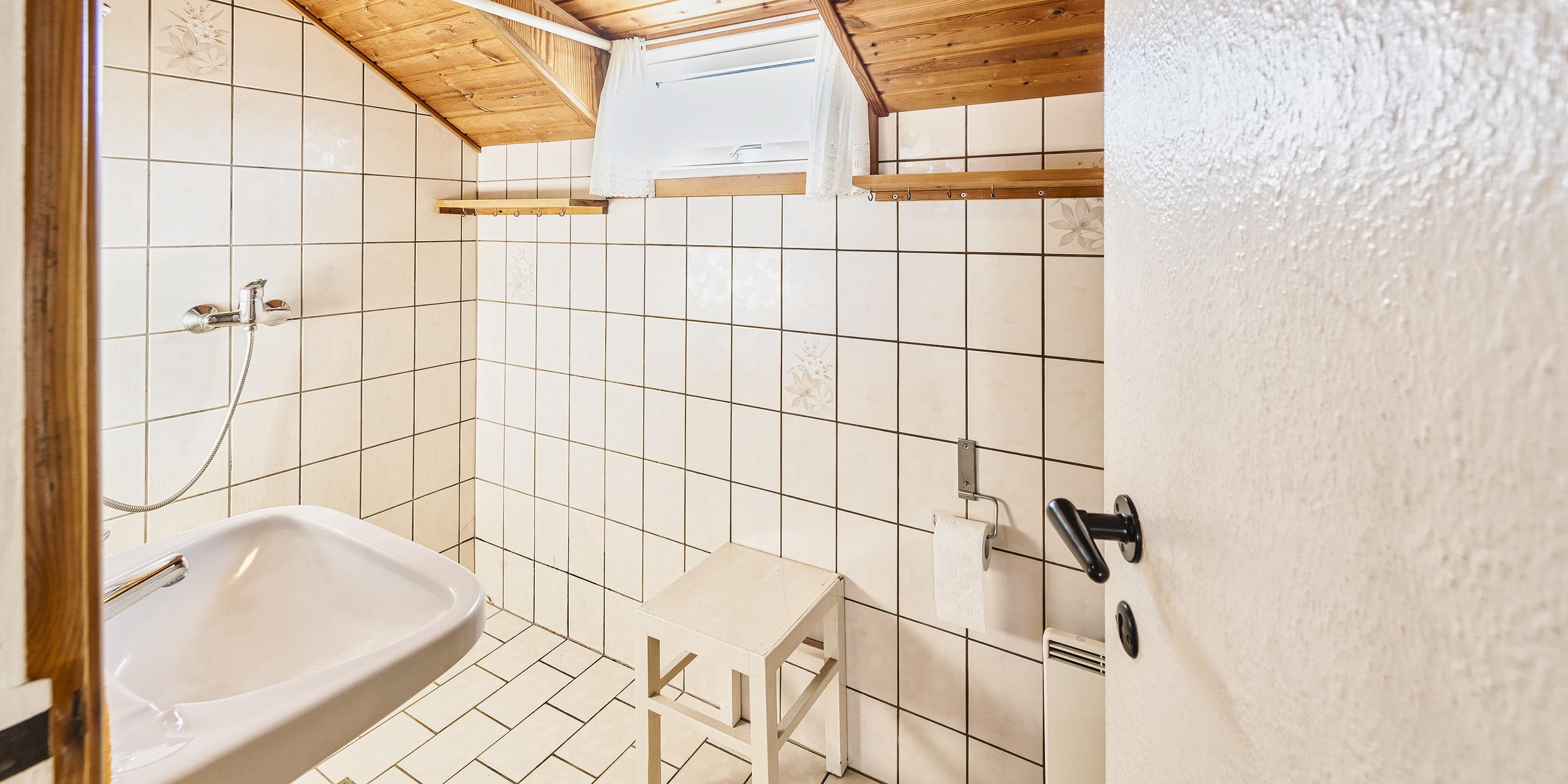 Bad med toilet, bruser og vask