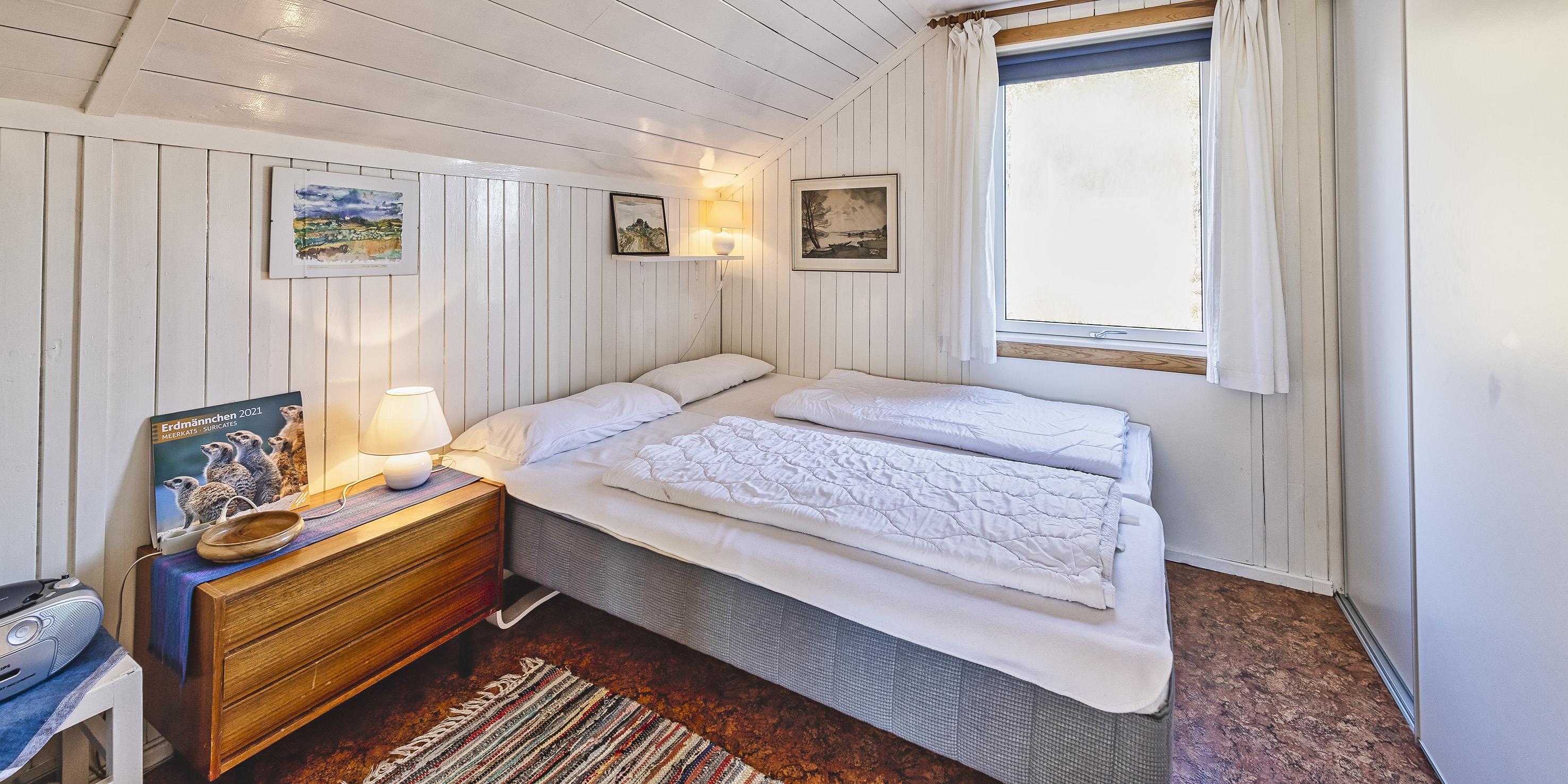 2 soveværelser. 1 med dobbeltseng 180x200 cm. 1 med enkeltseng.